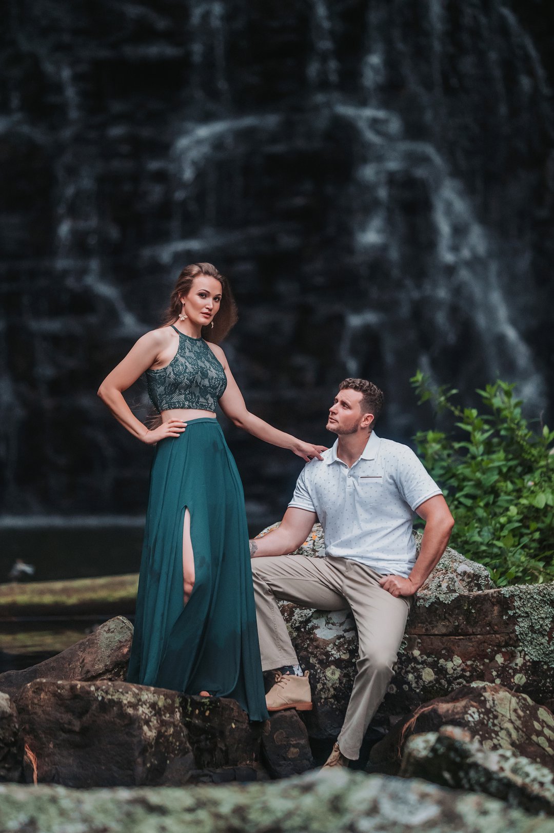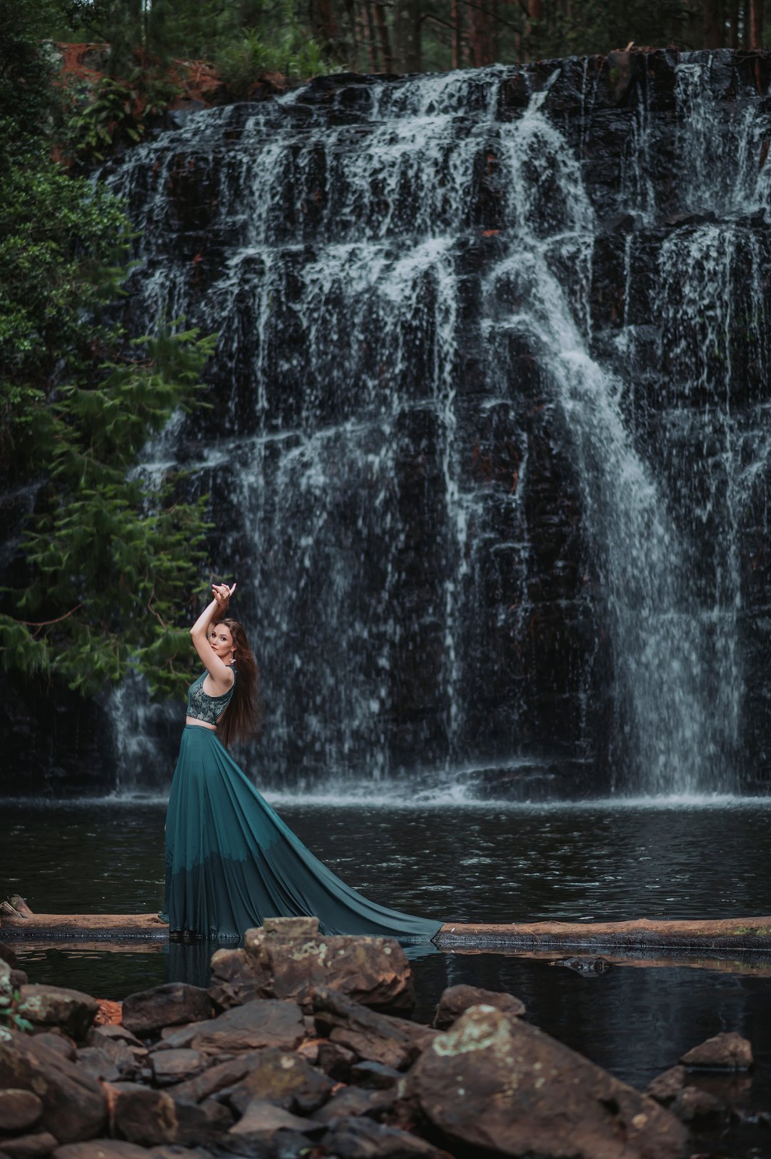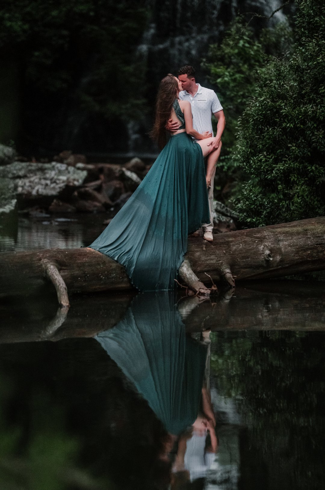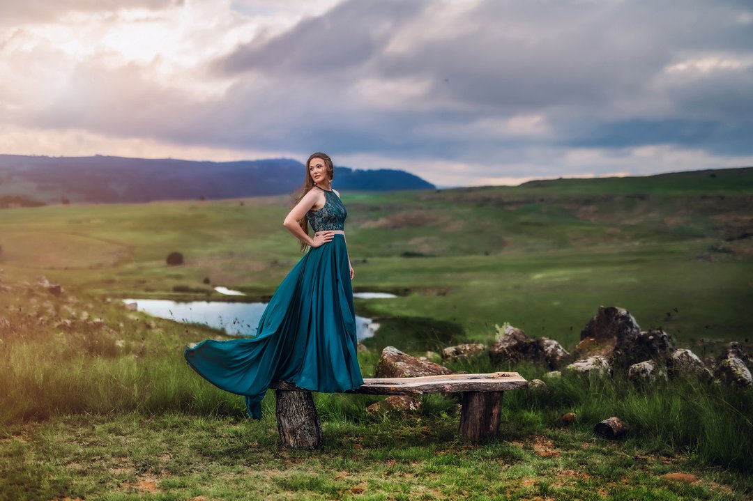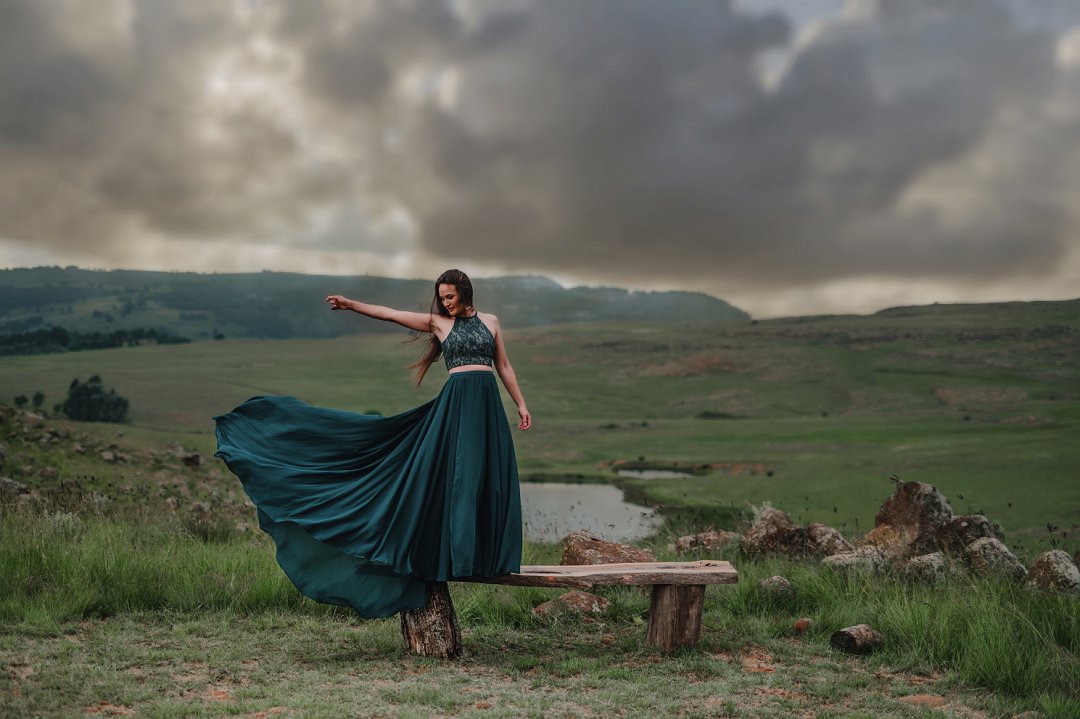 Maria het ʼn asemrowende donkergroen rok gedra wat sag en vloeiend was, perfek pas by die water wat hulle omring het. Ruan het ʼn ligblou hemp en neutrale broek aangehad. Saam het hulle ʼn beeldskone kombinasie geskep wat die natuurskoon nog meer beklemtoon het.