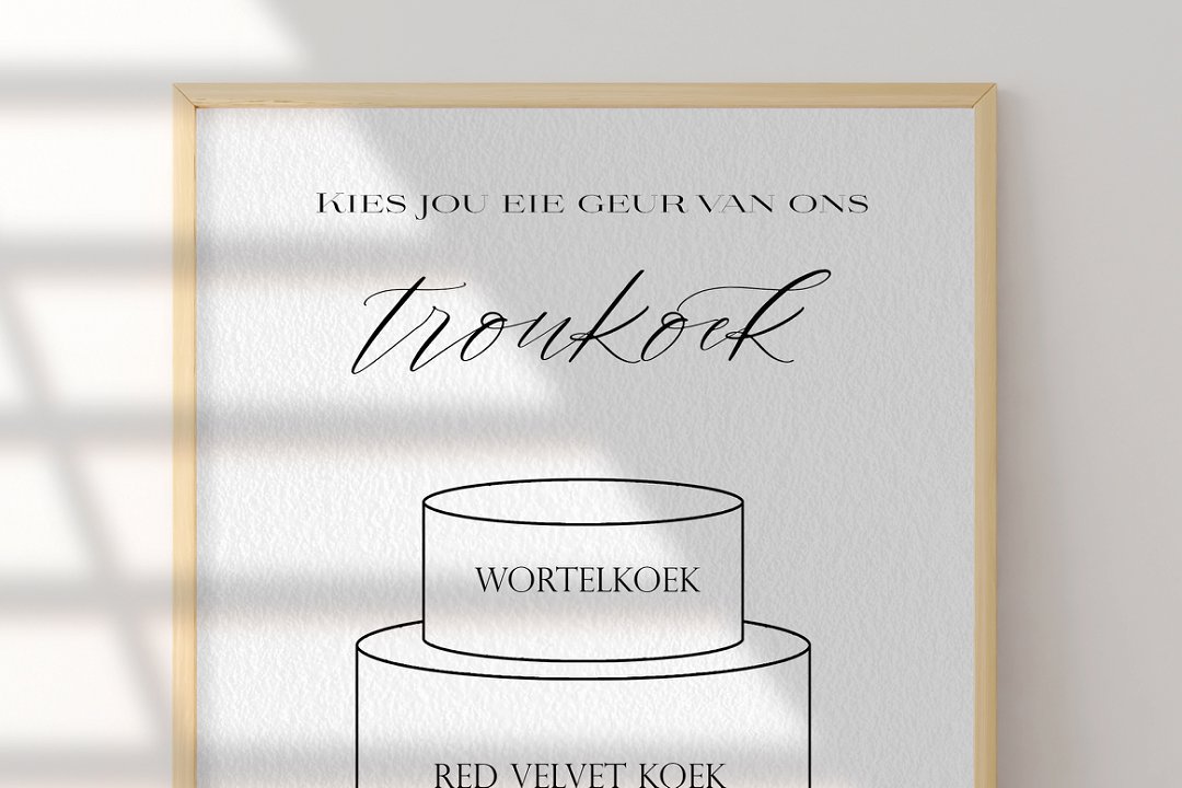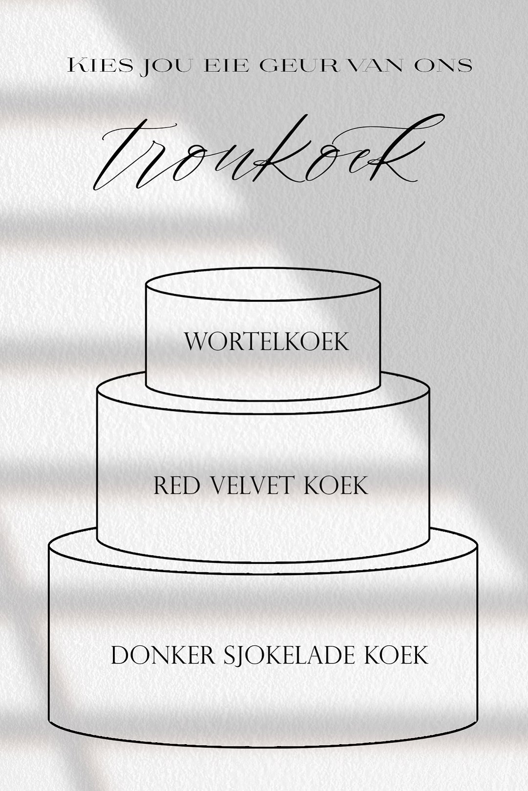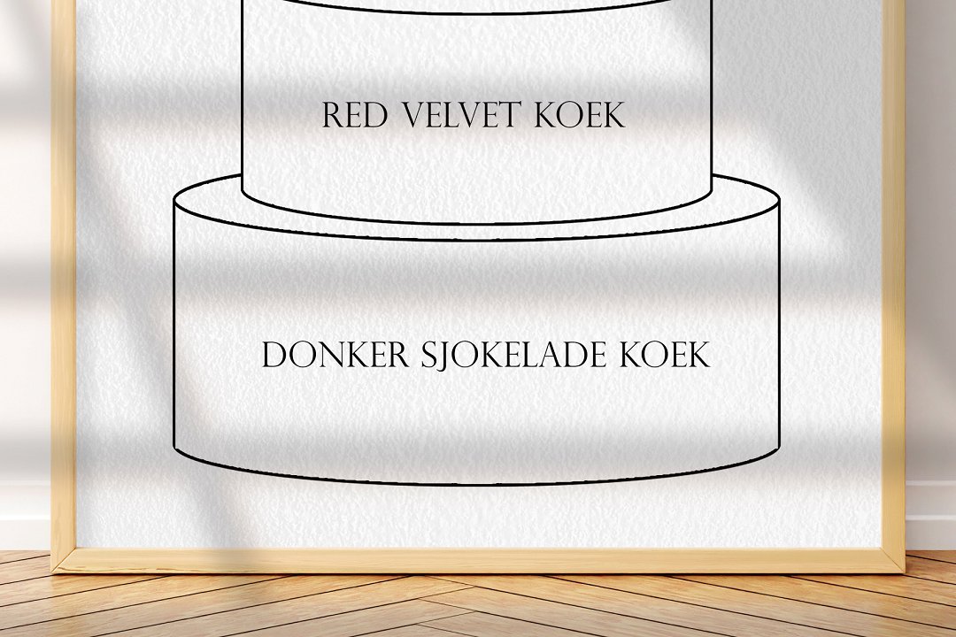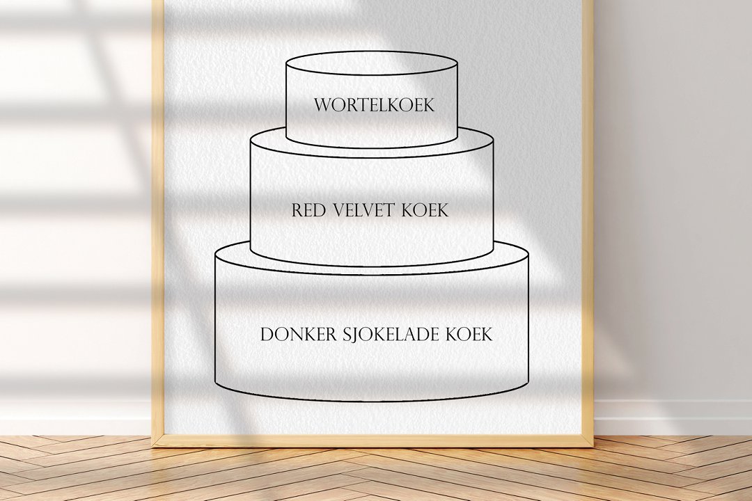 Hierdie plakkaat is nie net ʼn praktiese oplossing nie, maar ook ʼn betowerende manier om ekstra aandag na julle pragtige troukoek te trek.