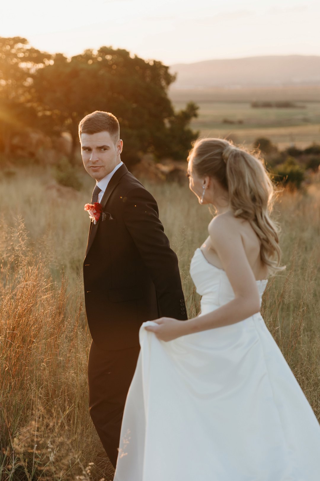 Jana en Ethan het op hul troudag stralend gelyk. Ons is dol oor die idee dat al hul gaste, sowel as die strooijonkers en strooimeisies, almal in swart geklee was. Dit het nie net ʼn elegante atmosfeer geskep nie, maar ook ʼn klassieke en tydlose voorkoms aan hul troudag gegee.