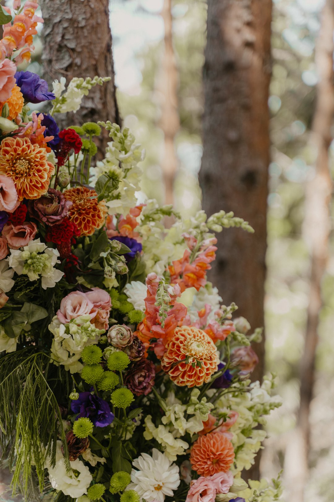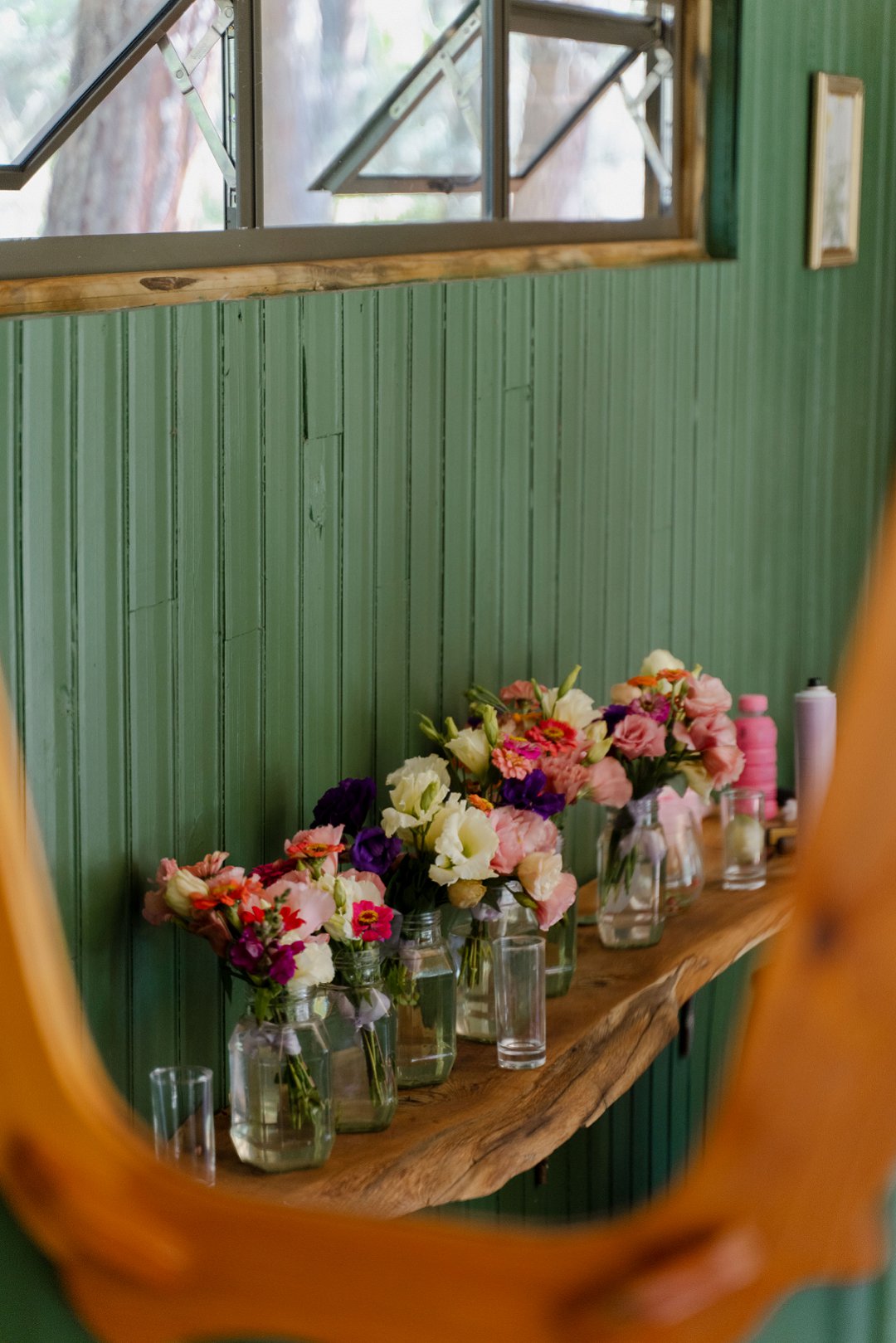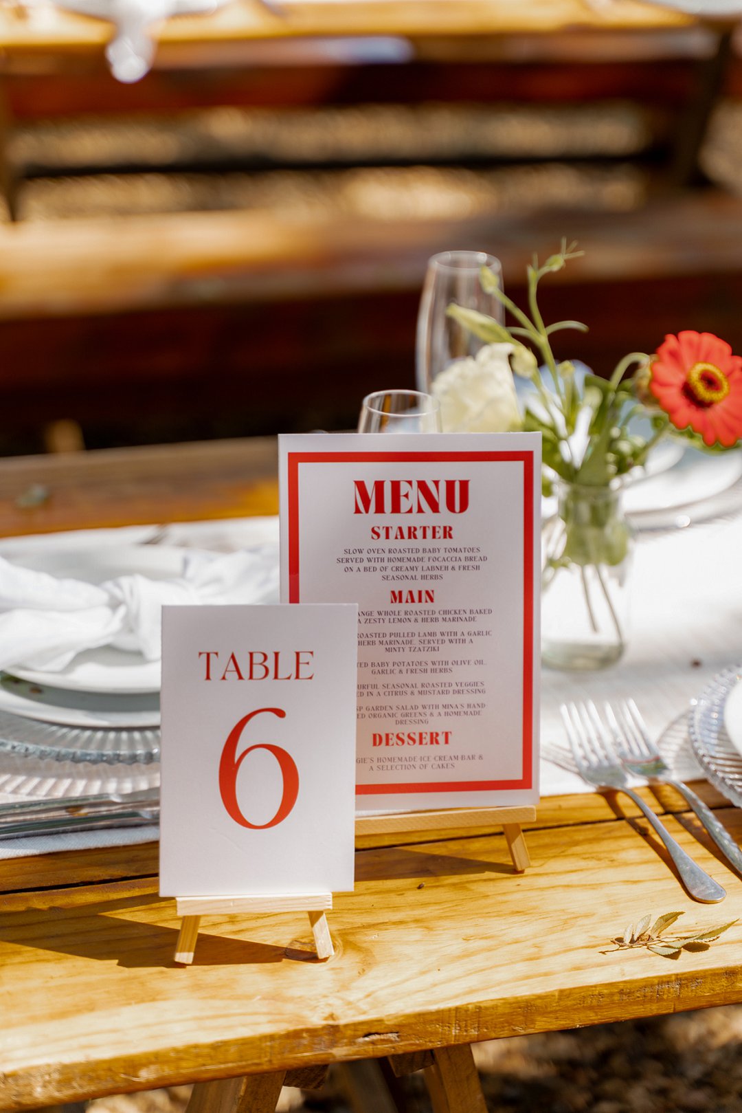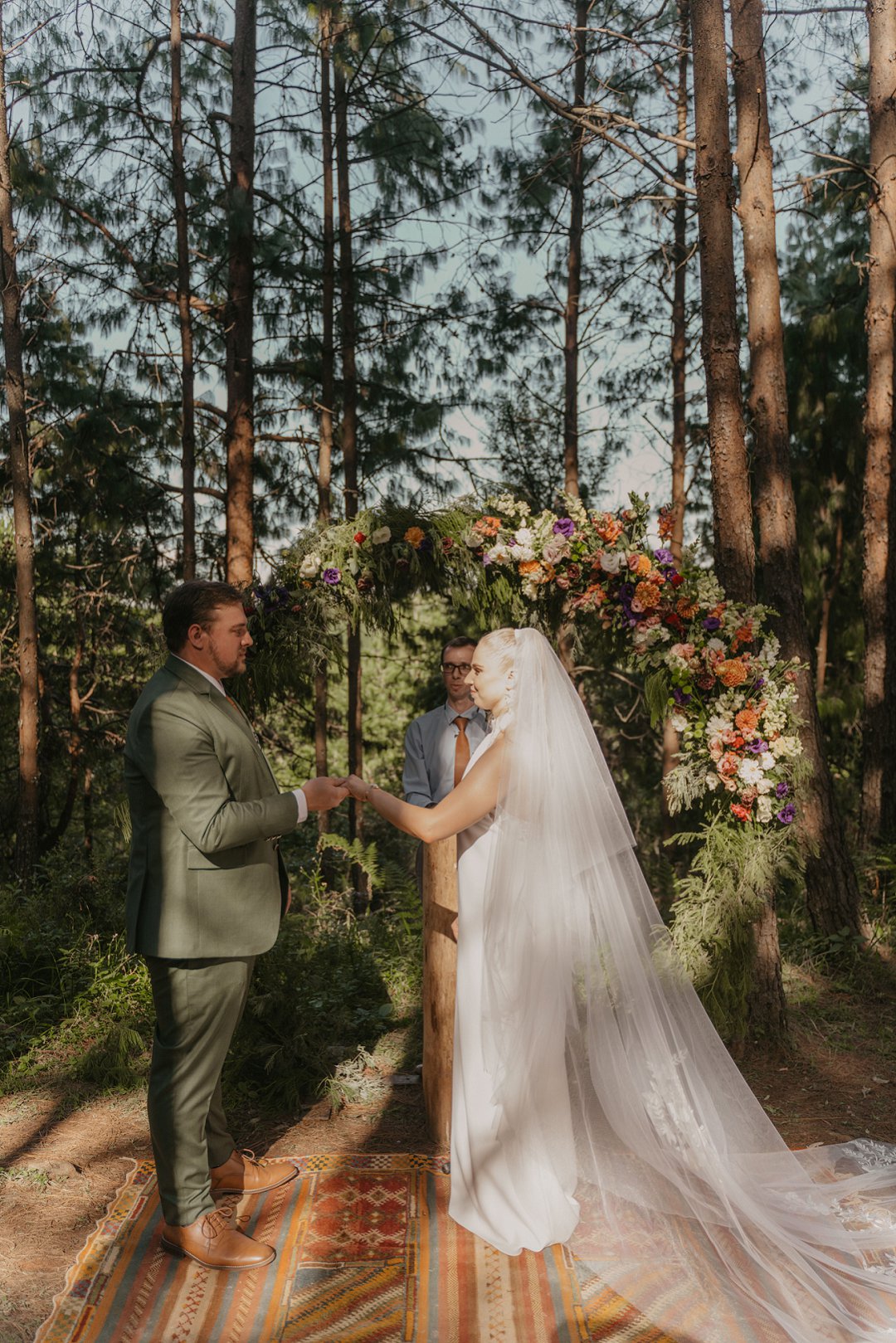 Die wilde blomme wat op die plaas groei het ons so geïnspireer dat ons die kleurskema van ons troue by die natuurlike skoonheid wou laat pas. Ons het meestal minimalistiese dekor gebruik om die woud se eenvoudigheid te beklemtoon, met ʼn bietjie kleur hier en daar om die dag se vreugdevolle atmosfeer te reflekteer. Die doel was om ʼn lekker atmosfeer te skep waar almal die liefde wat ons vir mekaar en vir ons gaste het, kon ervaar. Ons styl was lig, dromerig en vry – net soos die woud ons laat voel. Ons wou dit soortgelyk aan ʼn deftige musiekfees laat voel.