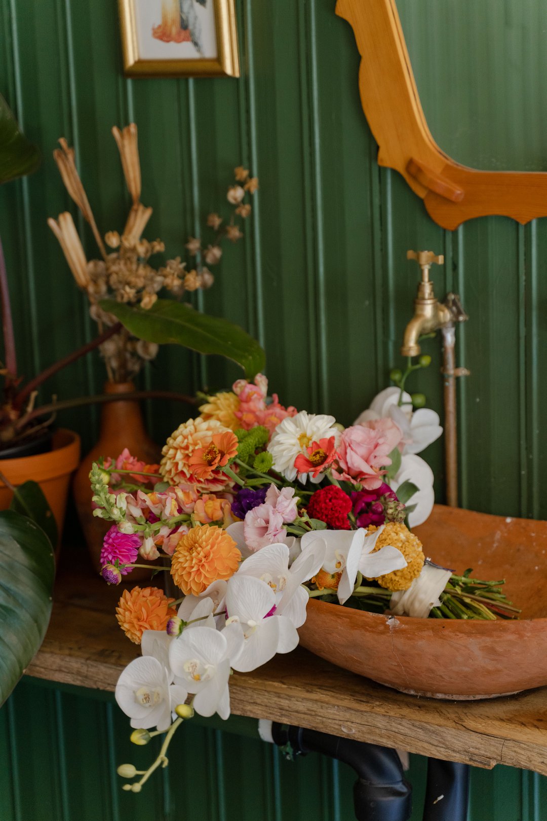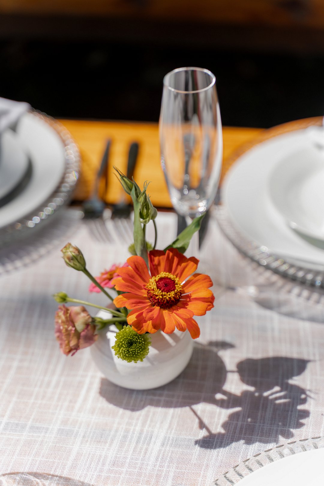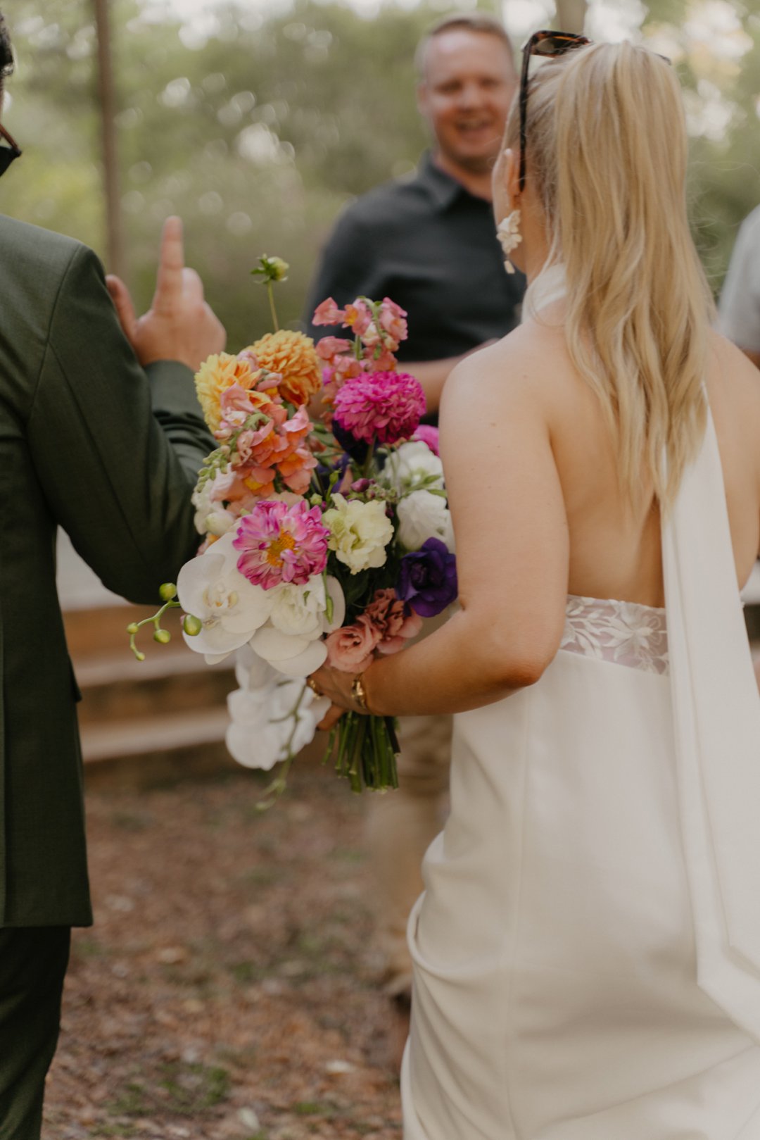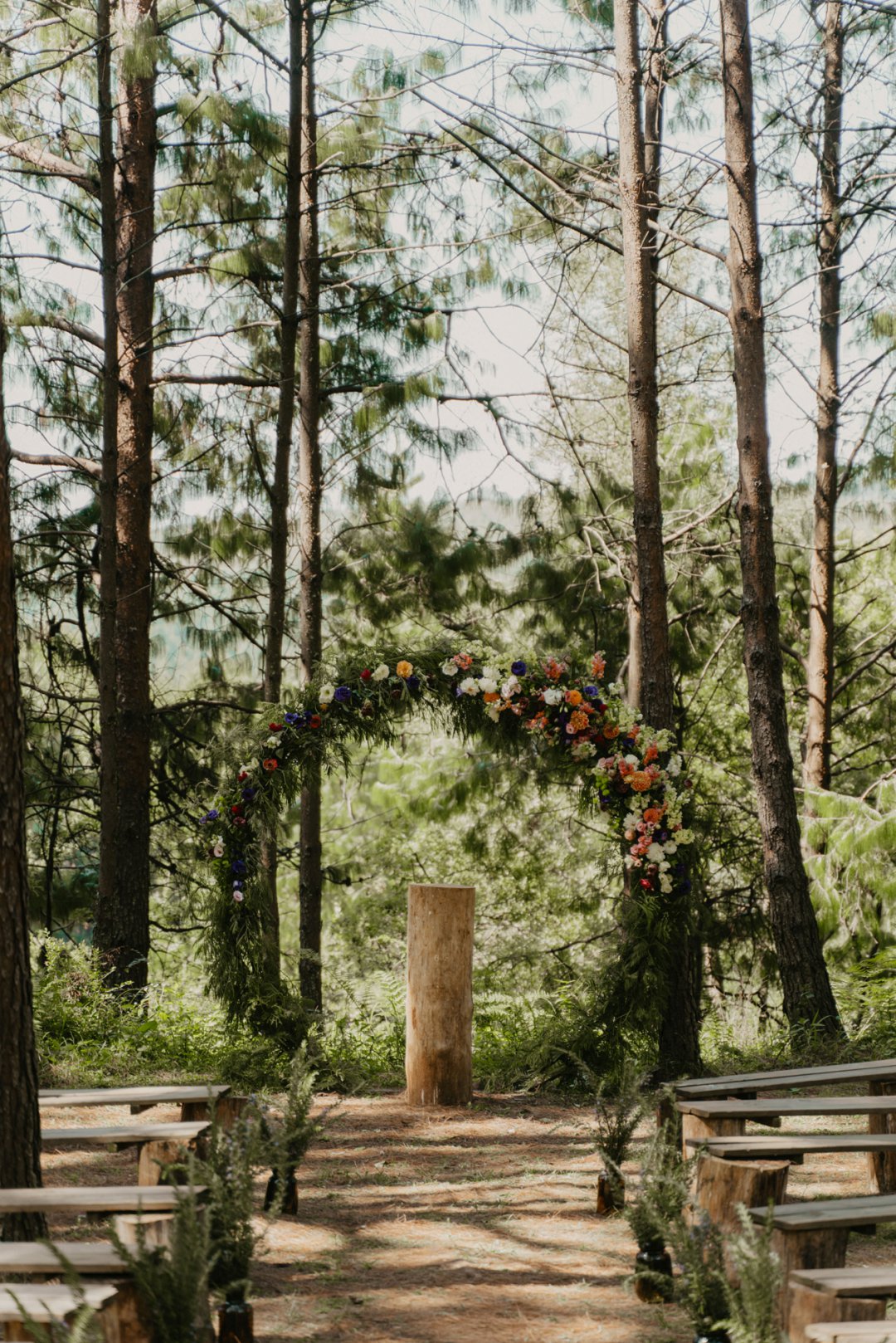Die wilde blomme wat op die plaas groei het ons so geïnspireer dat ons die kleurskema van ons troue by die natuurlike skoonheid wou laat pas. Ons het meestal minimalistiese dekor gebruik om die woud se eenvoudigheid te beklemtoon, met ʼn bietjie kleur hier en daar om die dag se vreugdevolle atmosfeer te reflekteer. Die doel was om ʼn lekker atmosfeer te skep waar almal die liefde wat ons vir mekaar en vir ons gaste het, kon ervaar. Ons styl was lig, dromerig en vry – net soos die woud ons laat voel. Ons wou dit soortgelyk aan ʼn deftige musiekfees laat voel.