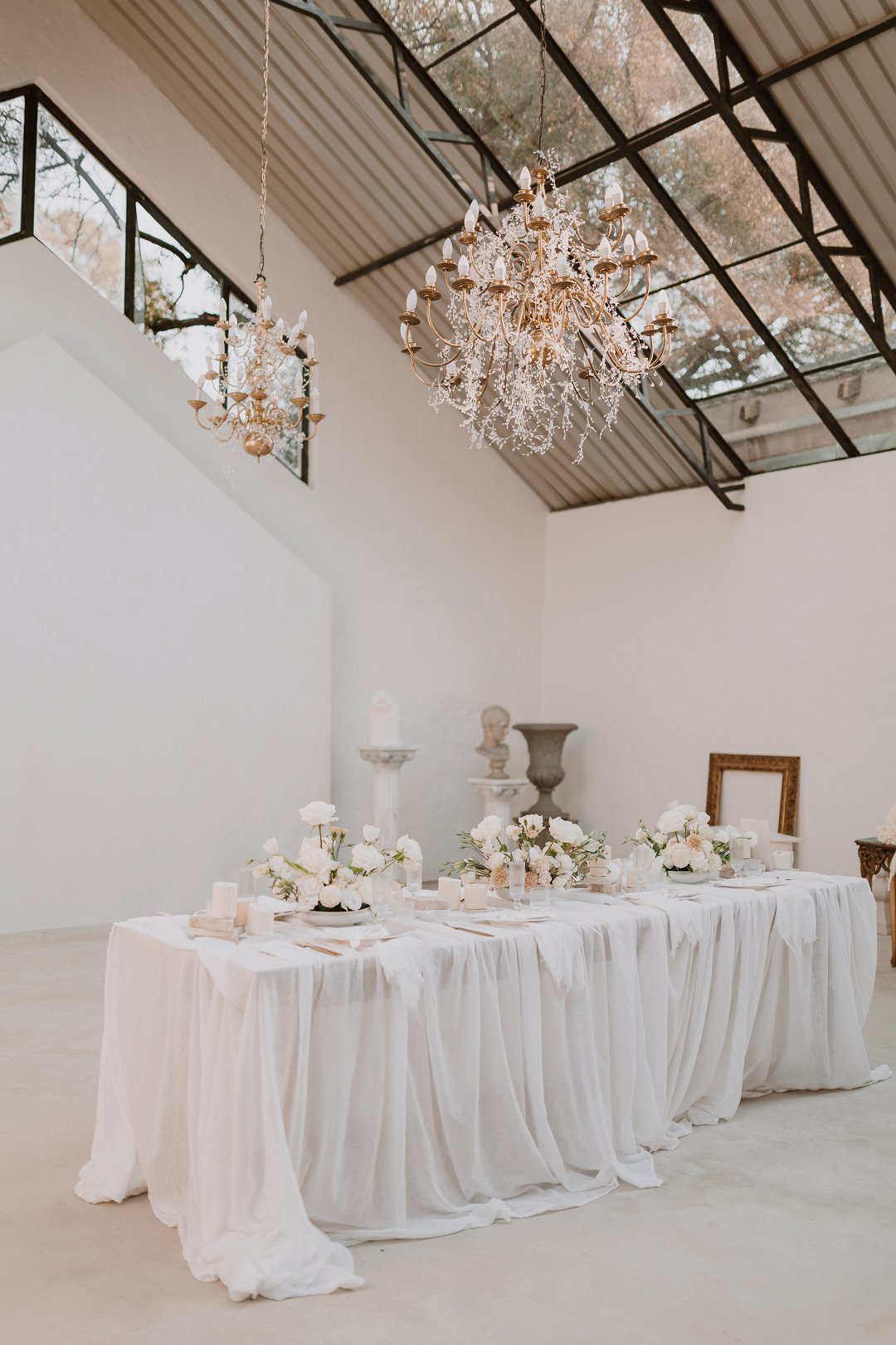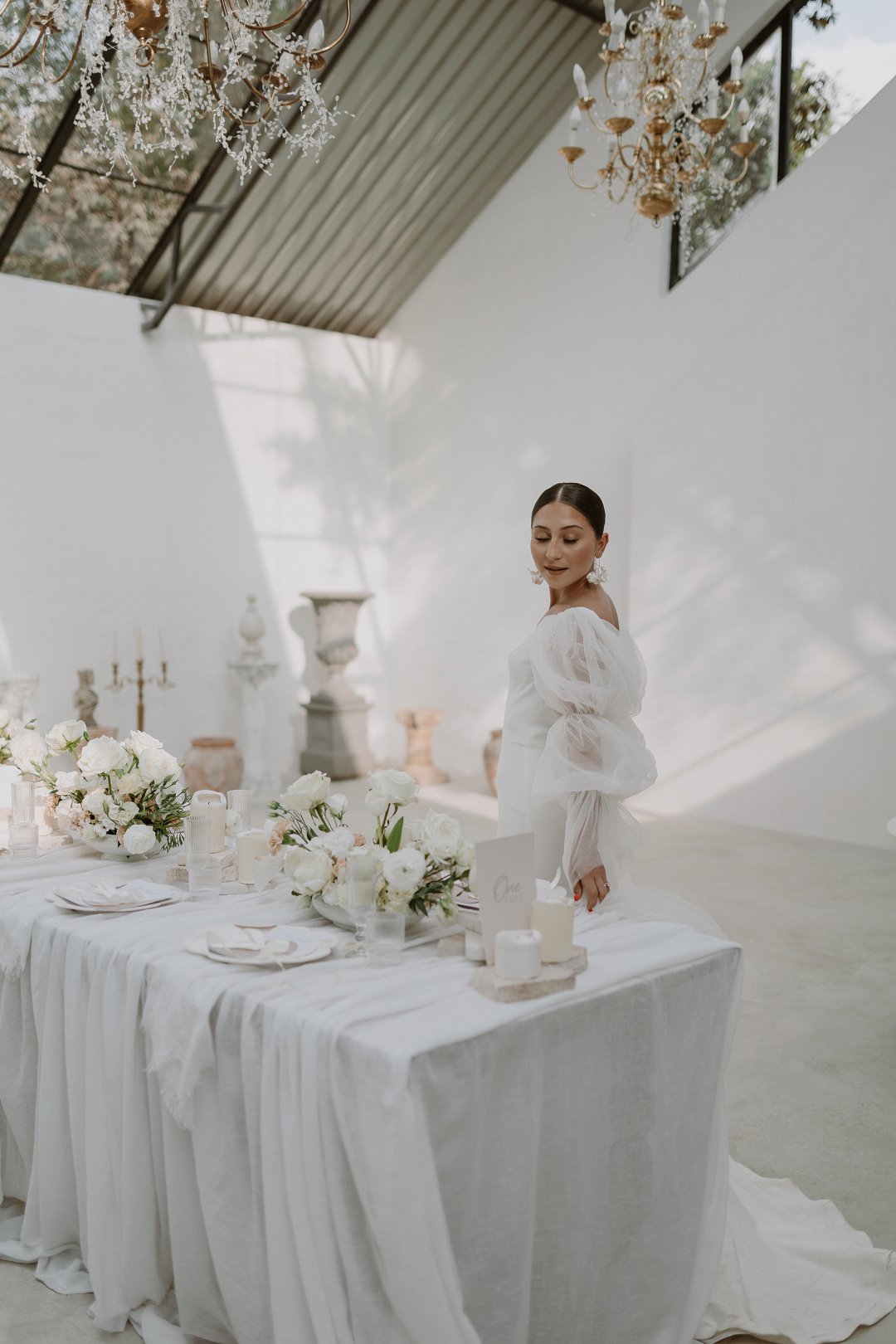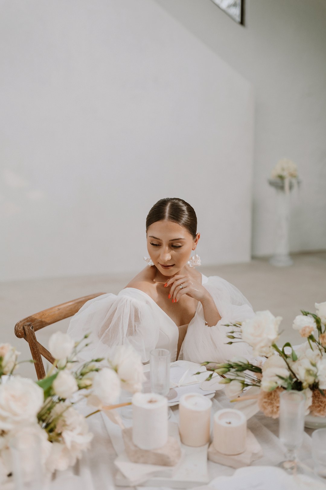 Hierdie onlangse gestileerde trou inspirasie vang ʼn pragtige, skoon, heel wit estetika vas, perfek vir jou droomtroue. Met elegante besonderhede en ʼn kalm atmosfeer, sal dit jou inspireer vir ʼn onvergeetlike dag in ons pragtige binnenshuise kapel!