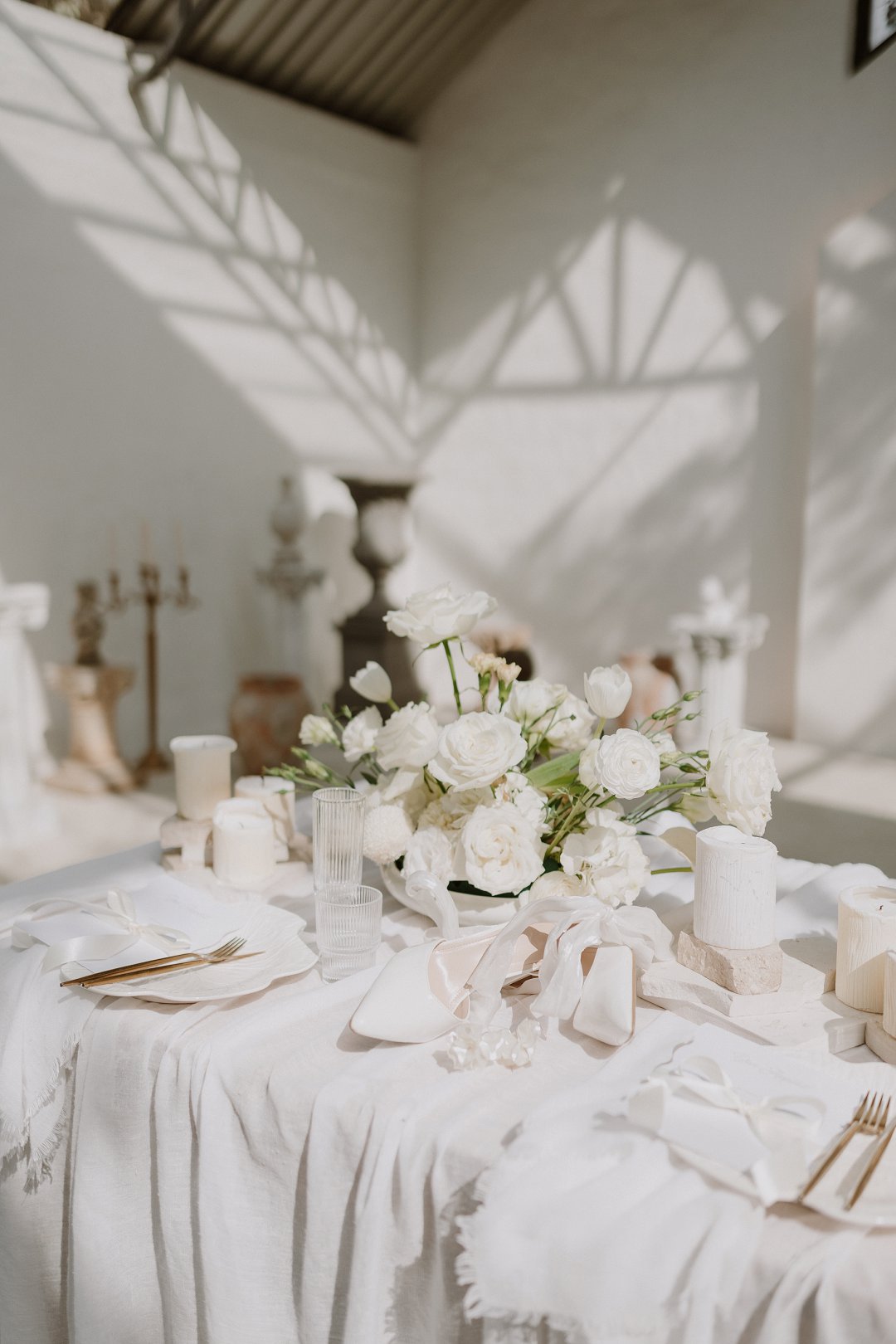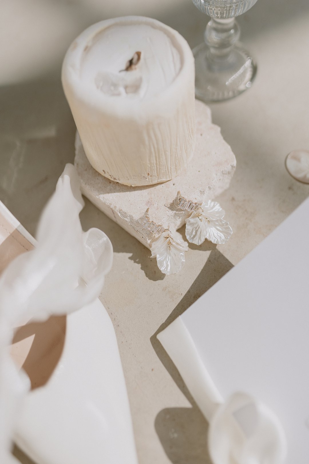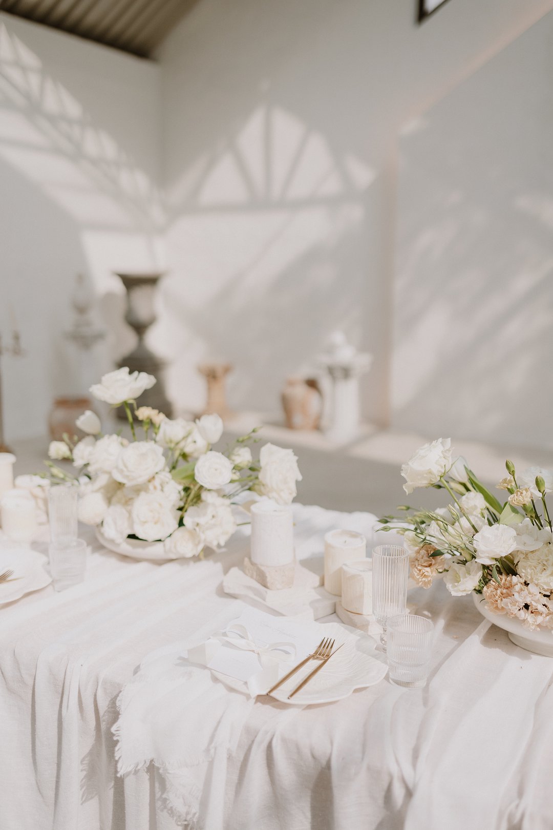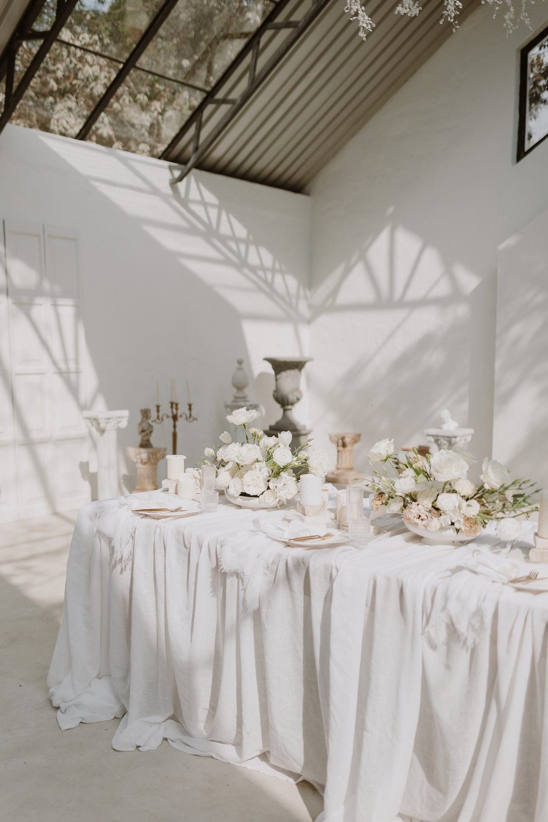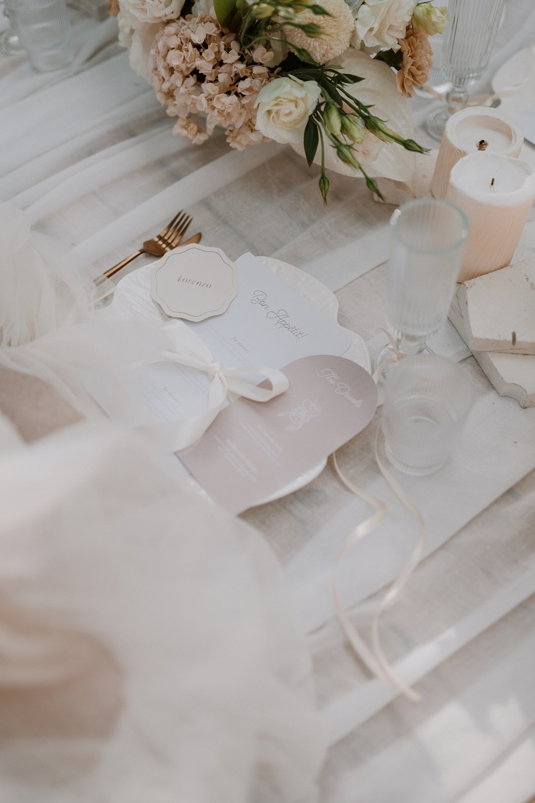 Ons het ’n sagte, tydlose kleurskema gekies om die romantiese en natuurlike atmosfeer van die lokaal en die gestileerde sessie te weerspieël. Die kleure is geïnspireer deur natuurlike skakerings en subtiele, elegante kontraste, wat perfek saamgespeel het met die natuurlike lig en die omgewing. Dit is hoe ons op die kleure besluit het en hoekom elkeen so goed by mekaar pas.