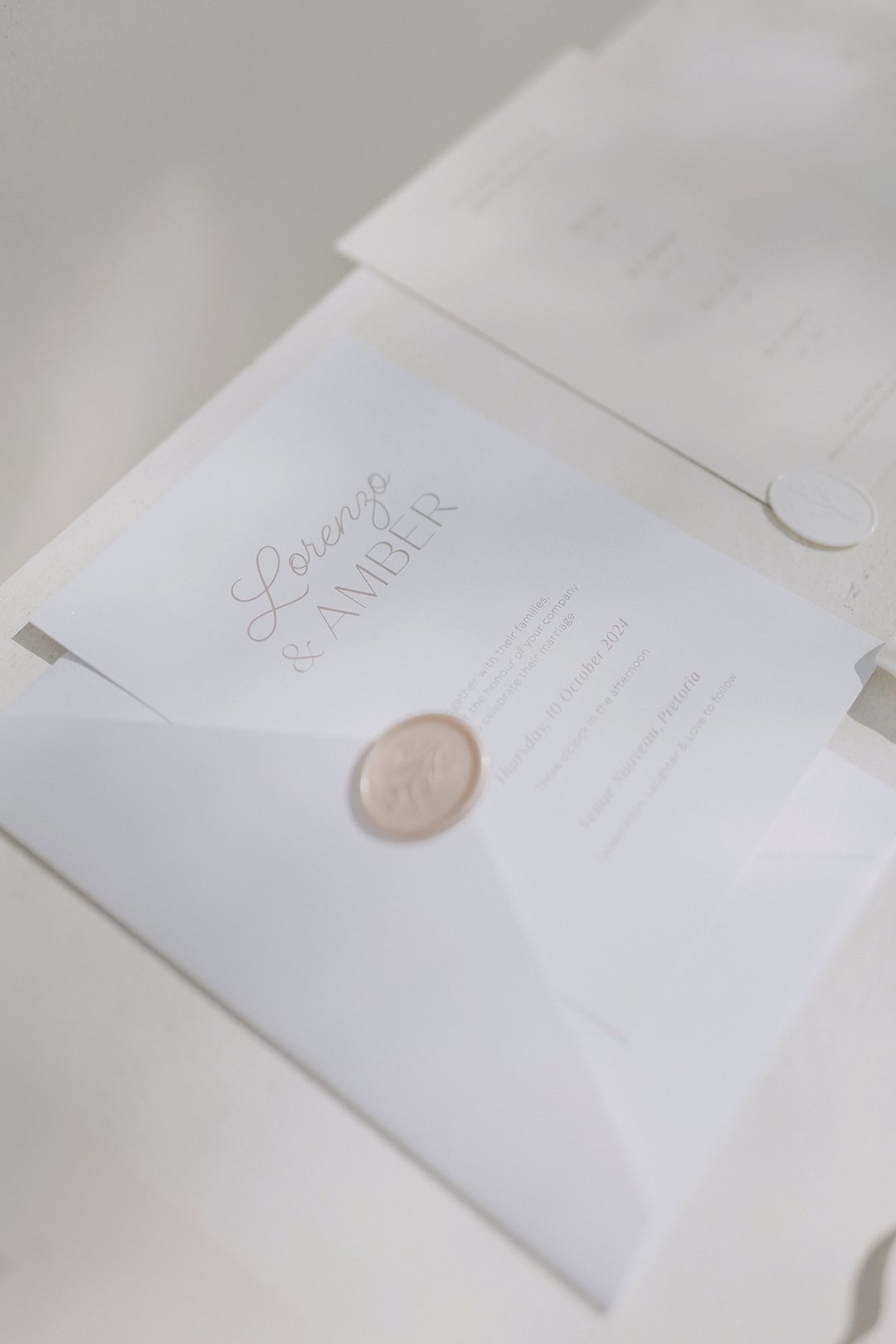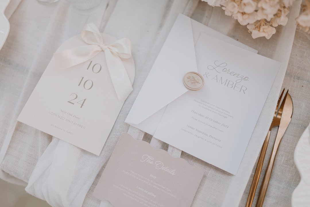 Skryfbehoeftes: Die elegante, pasgemaakte skryfbehoeftes deur Copper Grey Studio voeg ʼn sofistikasie-element by en sluit perfek aan by die tema.