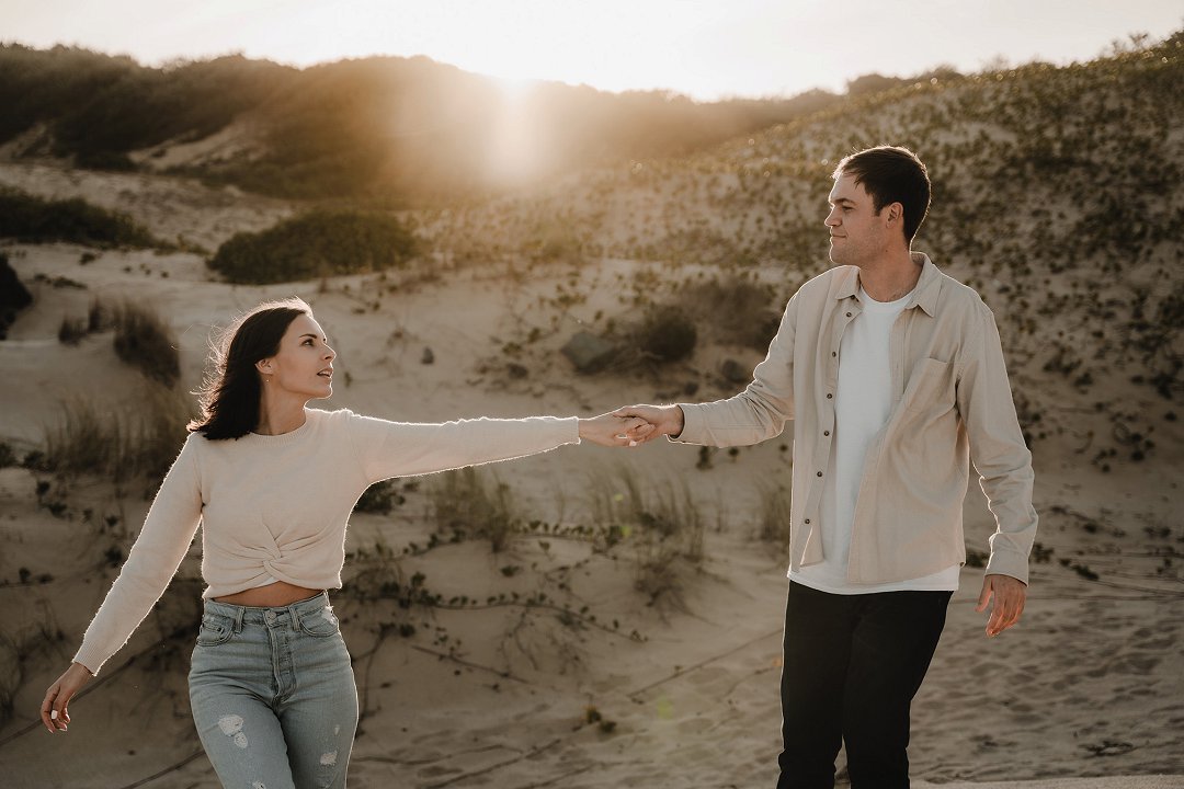 Dylan en Tayla se verlowings fotosessie op die Strand Duine, saam met die goue sonsondergang, skep die perfekte toneel vir ʼn romantiese fotosessie. Die pragtige foto’s bied hope inspirasie vir paartjies.