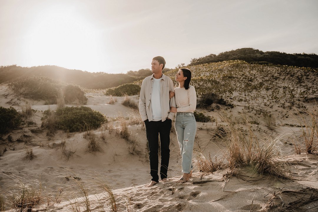 Ons wou die fotosessie baie ontspanne en persoonlik hou. Spontane, openhartige foto’s is my gunsteling, want hulle vang beslis meer emosie vas. Ek was nog altyd aangetrokke tot die warm goudkleurige styl. Dis hoekom ons die laatmiddag-sonsondergang en die strand gekies het. Albei maak my diep gelukkig!