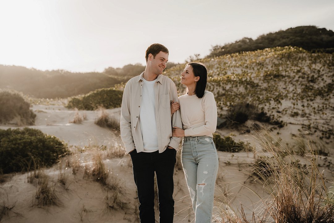 Tayla en Dylan se neutrale, aardse uitrustings pas perfek by die omgewing. Dit is altyd ʼn goeie idee om ʼn meer neutrale kleurskema vir jul uitrustings te kies, sodat die fokus op die paartjie en die pragtige ligging van die fotosessie bly. Ons kan sien hoe gemaklik die paartjie was en dat hulle elke oomblik geniet het.