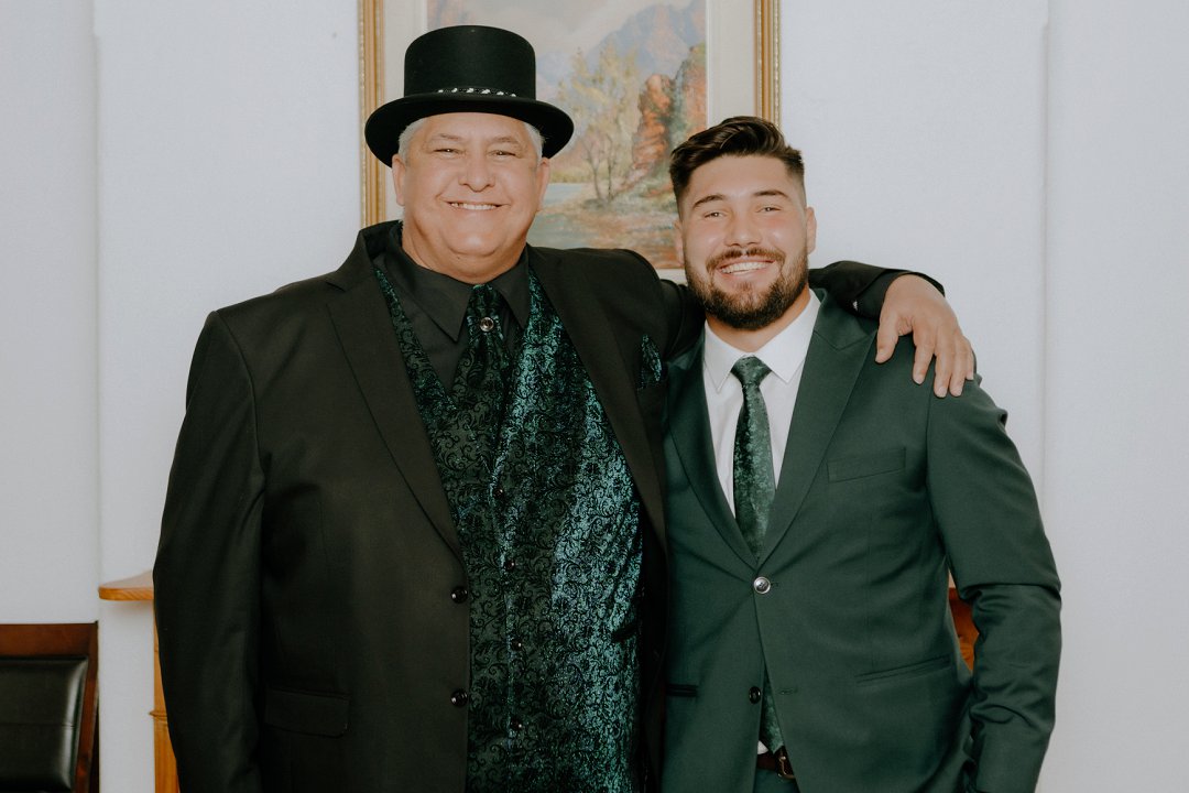Jana het asemrowend gelyk in haar trourok met ’n simplistiese voorkoms, perfek vir die paartjie se pragtige dag. Haar sluier was versier met fyn pêrel afwerking, wat besonderse detail by haar rok gevoeg het. Dameon het stylvol gelyk in sy groen troupak – ’n unieke kleur wat besonder goed werk vir bruidegoms drag.