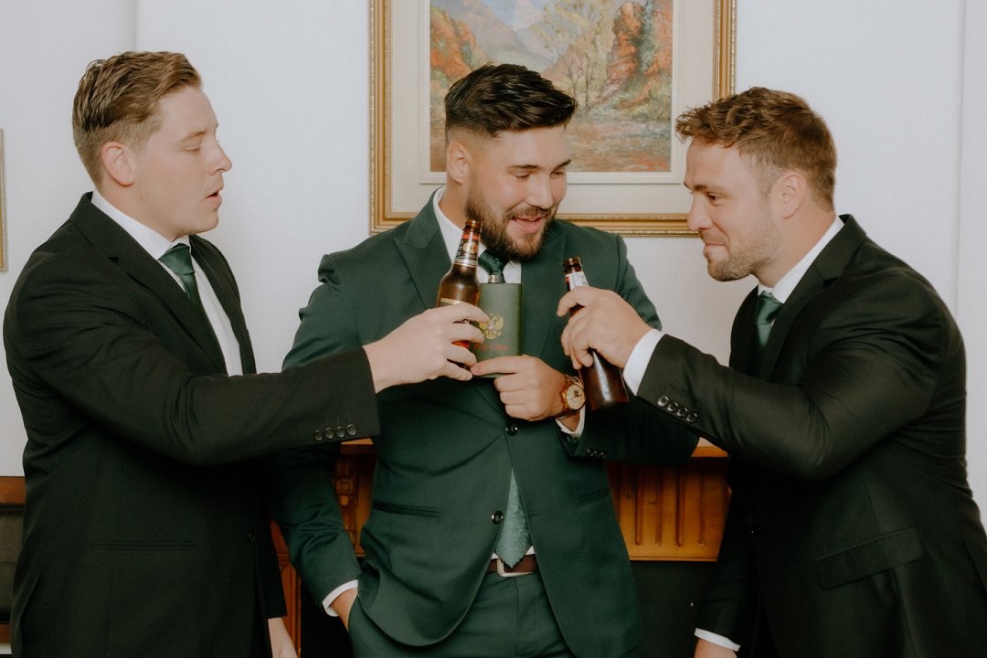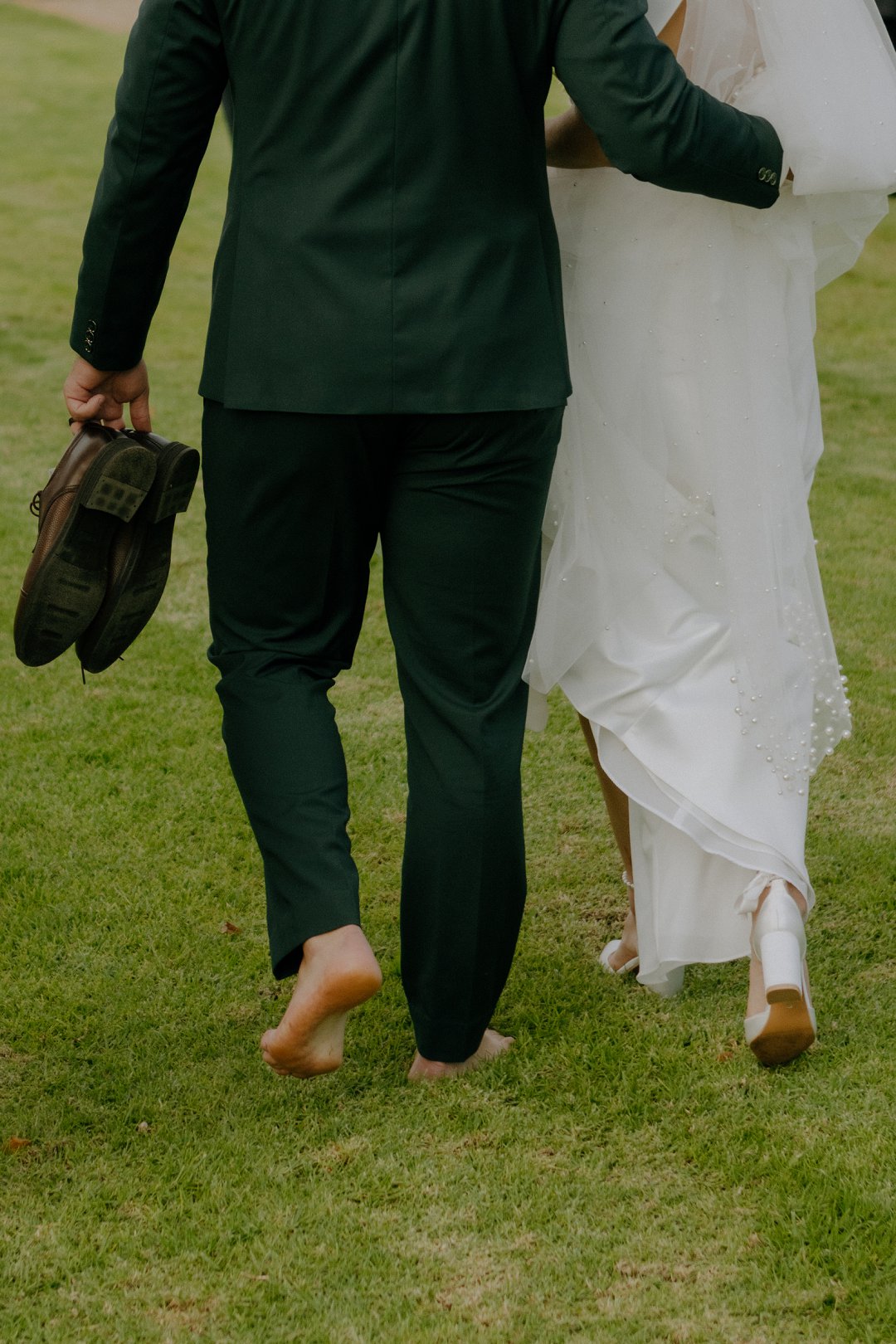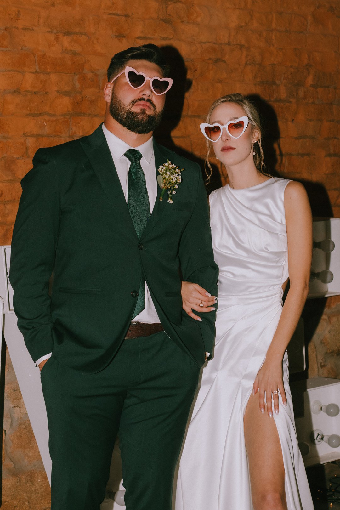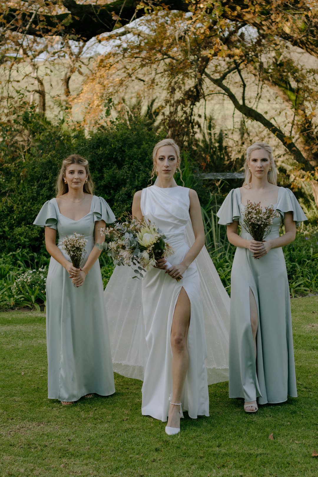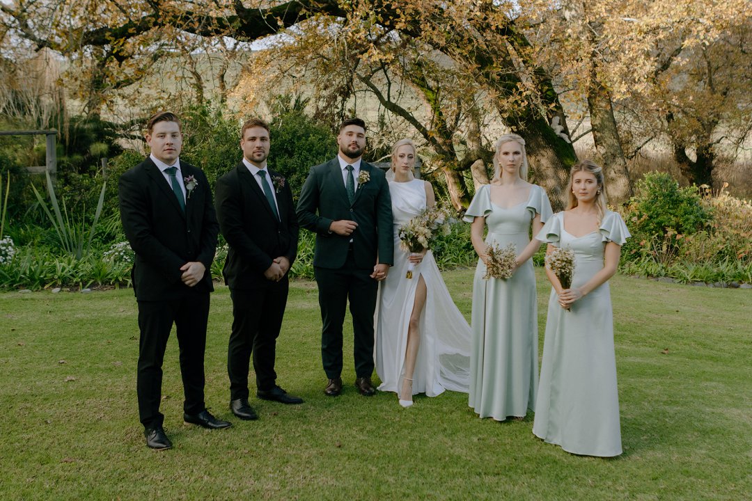 Jana het asemrowend gelyk in haar trourok met ’n simplistiese voorkoms, perfek vir die paartjie se pragtige dag. Haar sluier was versier met fyn pêrel afwerking, wat besonderse detail by haar rok gevoeg het. Dameon het stylvol gelyk in sy groen troupak – ’n unieke kleur wat besonder goed werk vir bruidegoms drag.