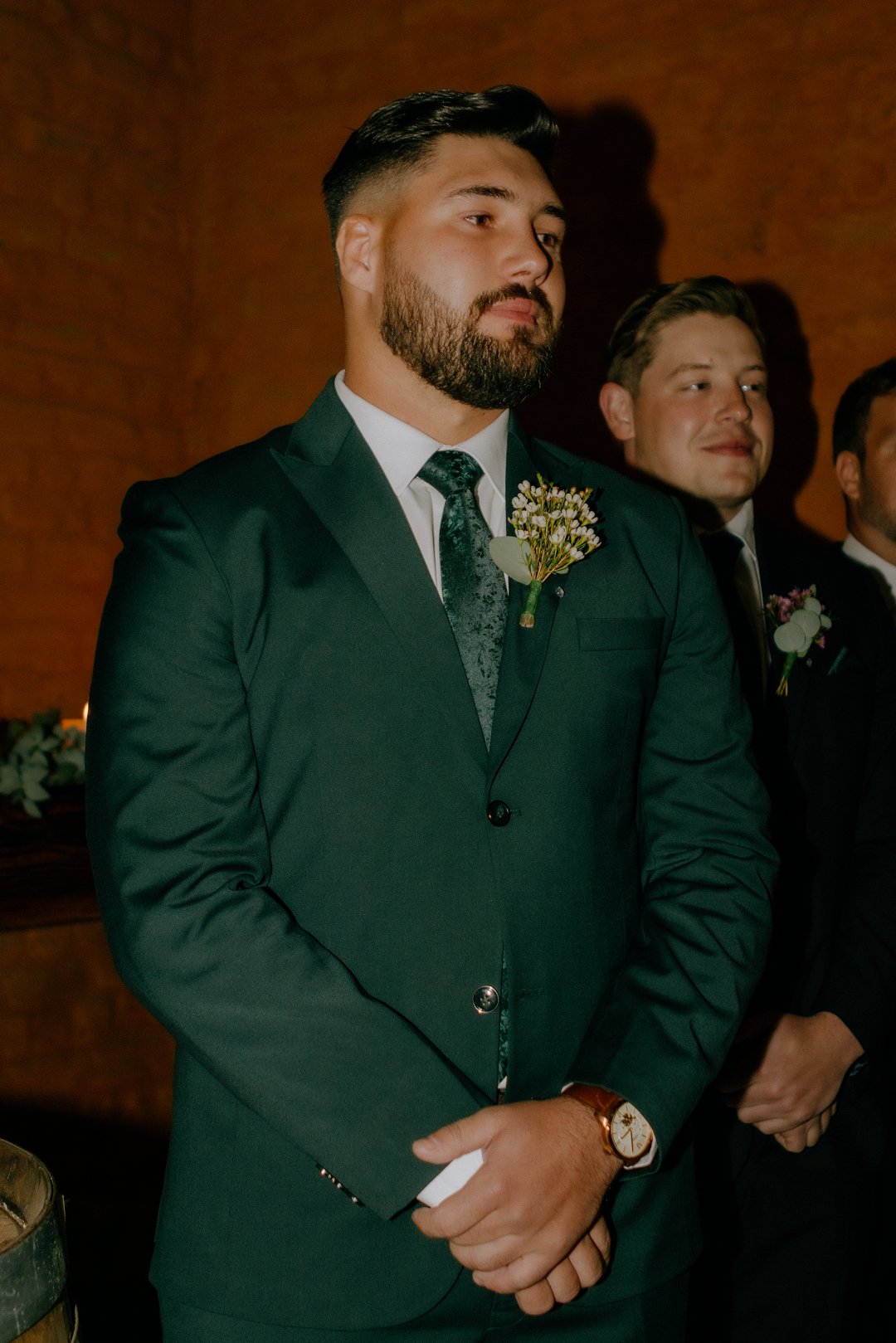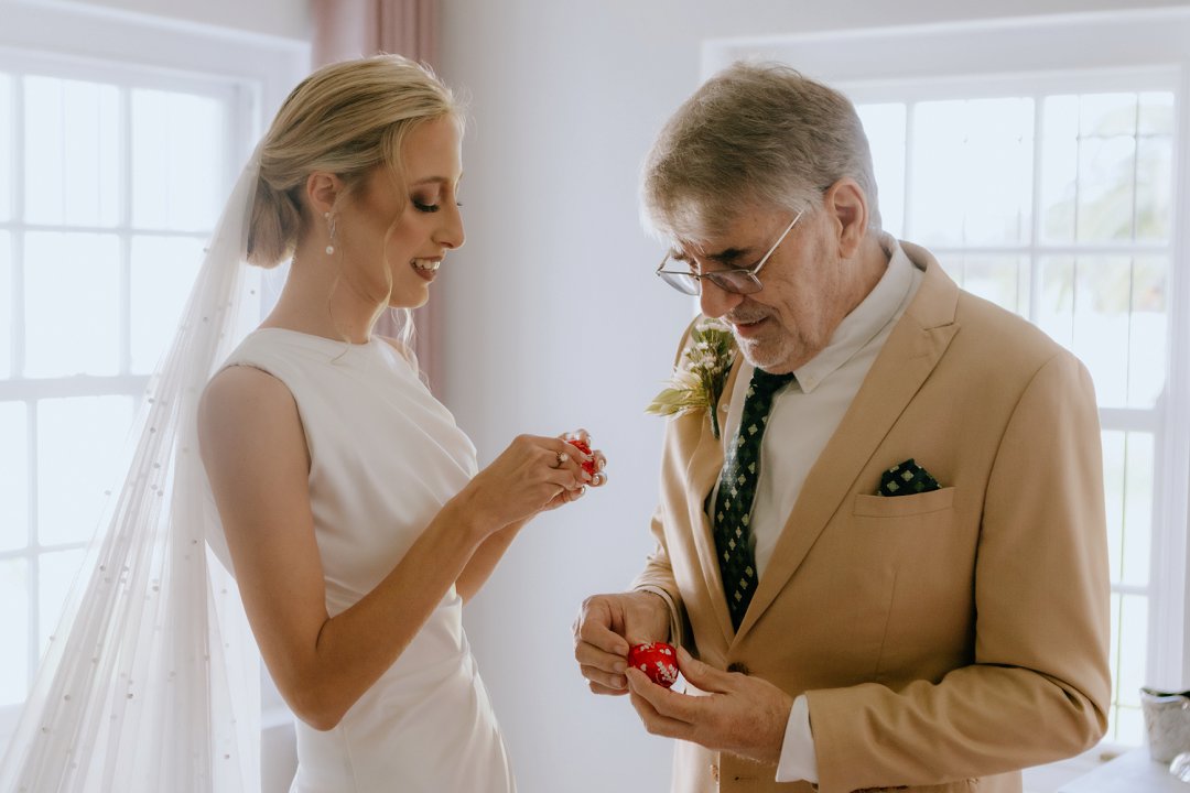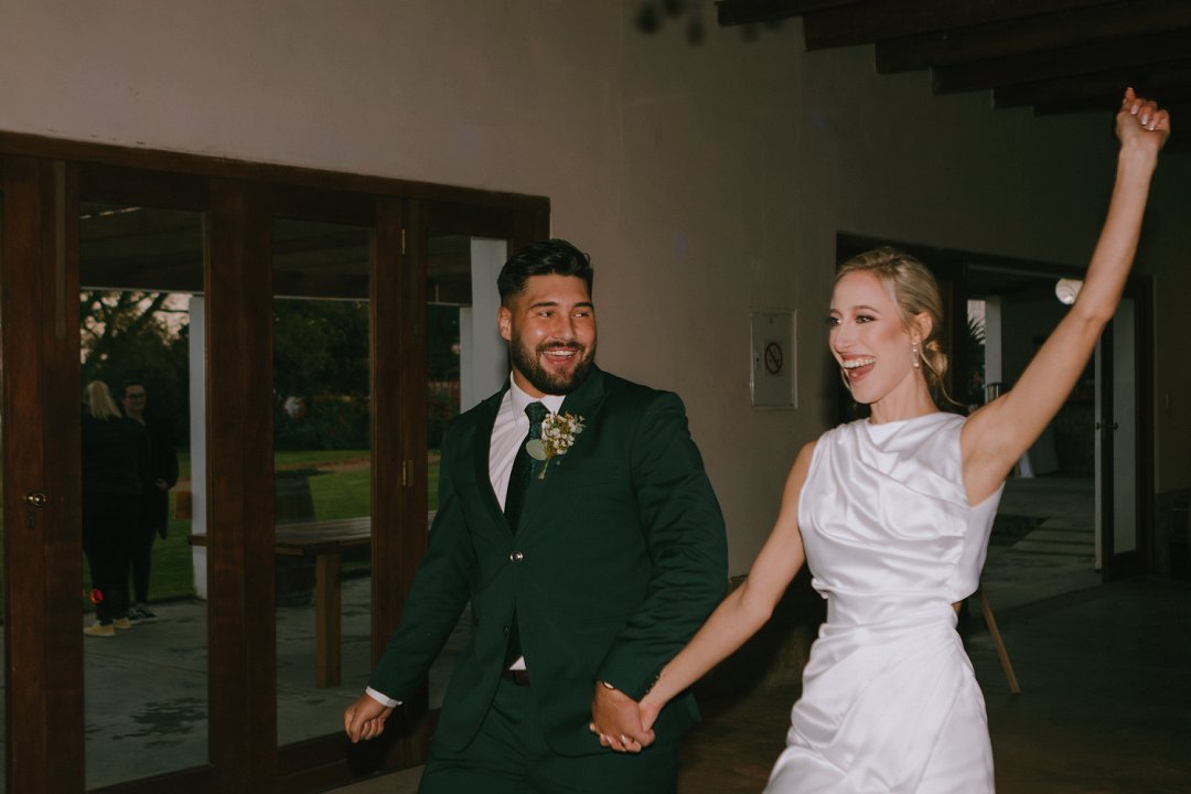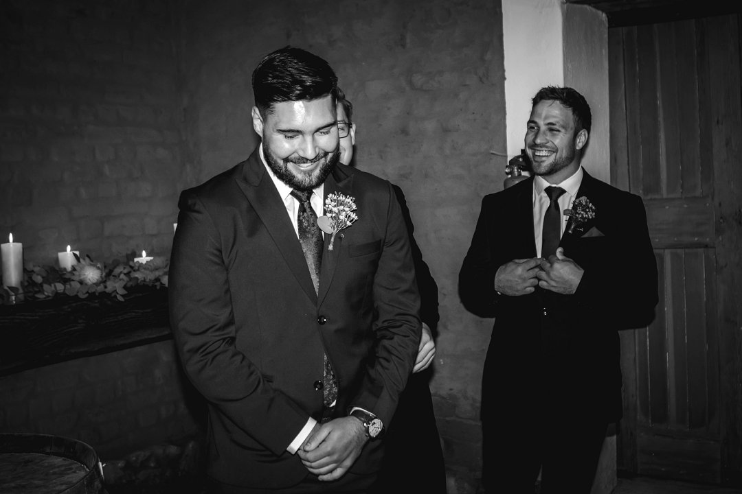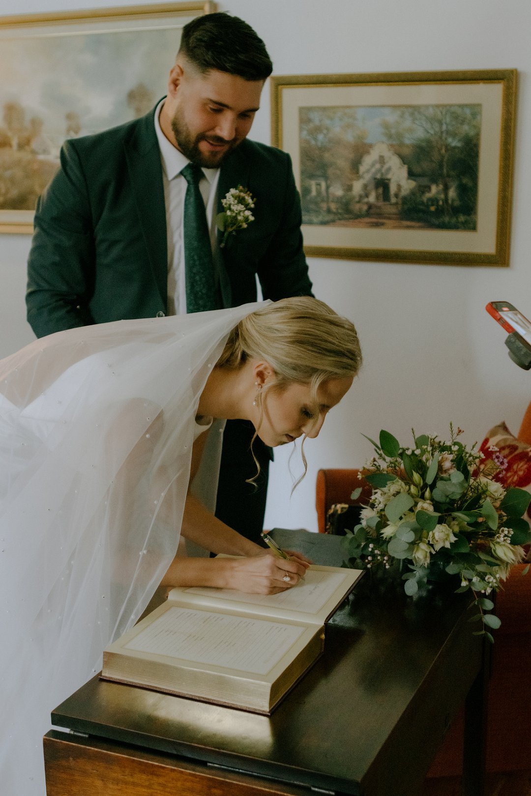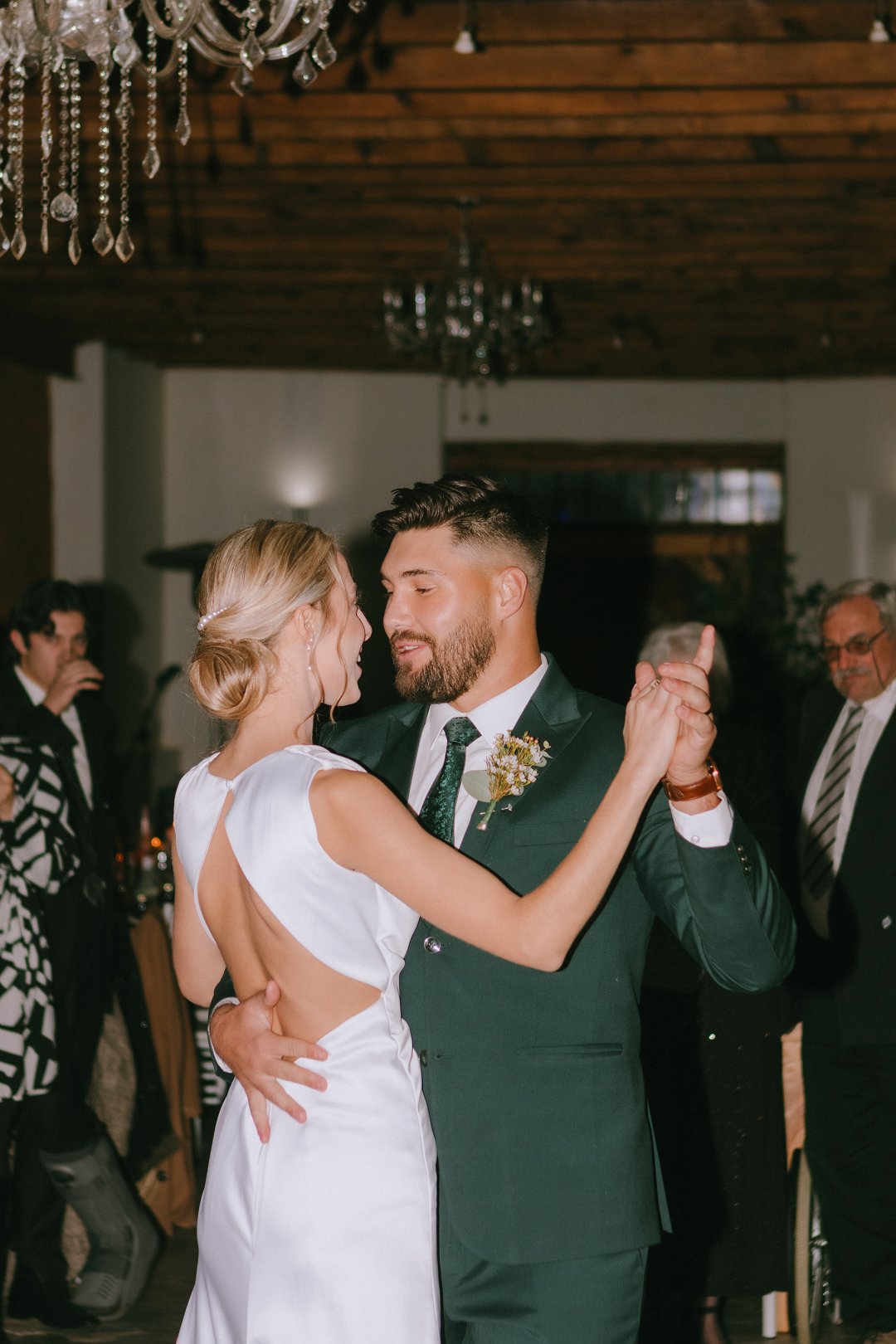 Jana het asemrowend gelyk in haar trourok met ’n simplistiese voorkoms, perfek vir die paartjie se pragtige dag. Haar sluier was versier met fyn pêrel afwerking, wat besonderse detail by haar rok gevoeg het. Dameon het stylvol gelyk in sy groen troupak – ’n unieke kleur wat besonder goed werk vir bruidegoms drag.