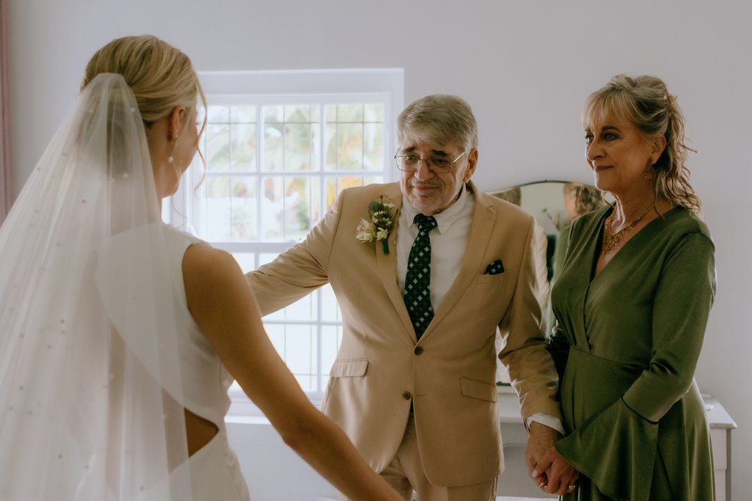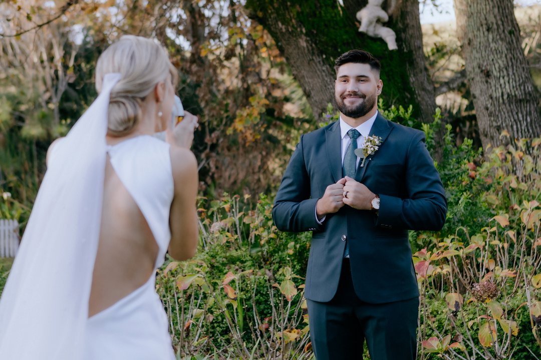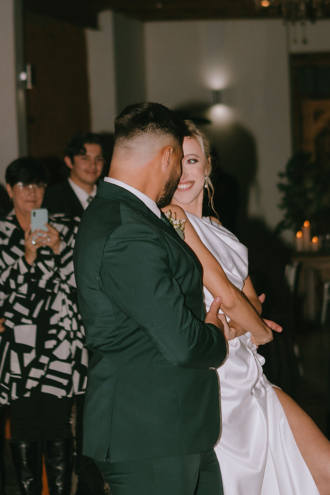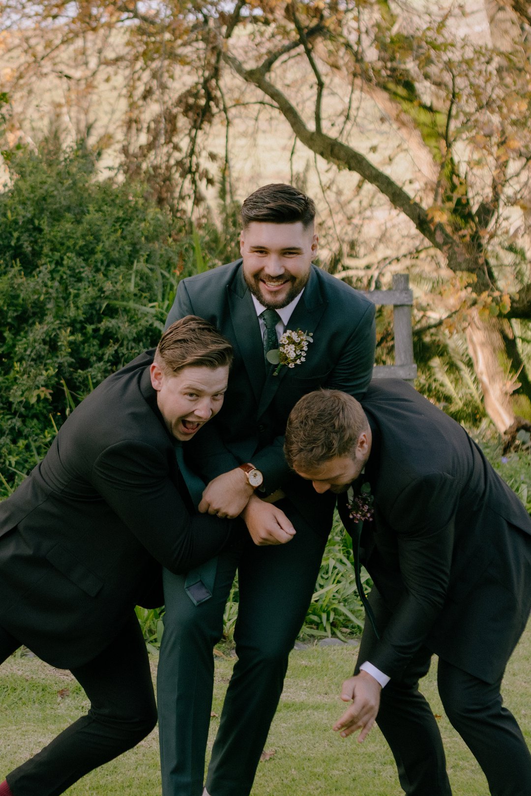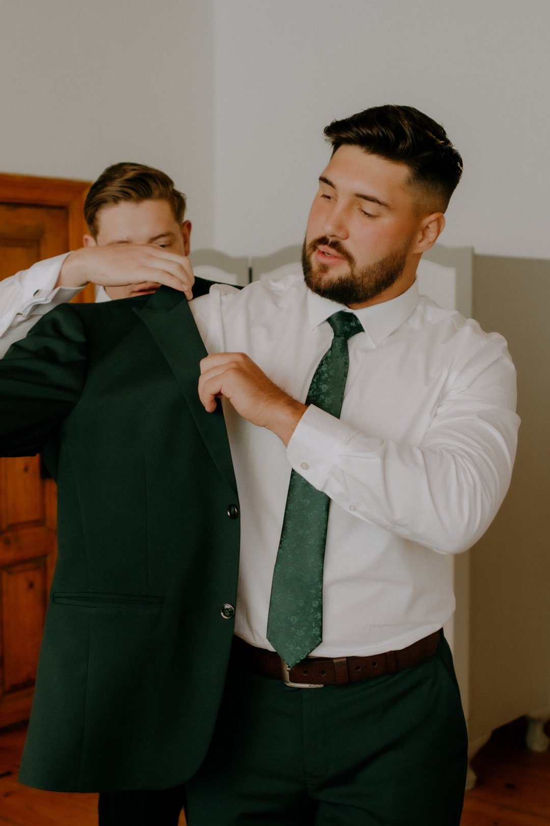 Jana het asemrowend gelyk in haar trourok met ’n simplistiese voorkoms, perfek vir die paartjie se pragtige dag. Haar sluier was versier met fyn pêrel afwerking, wat besonderse detail by haar rok gevoeg het. Dameon het stylvol gelyk in sy groen troupak – ’n unieke kleur wat besonder goed werk vir bruidegoms drag.
