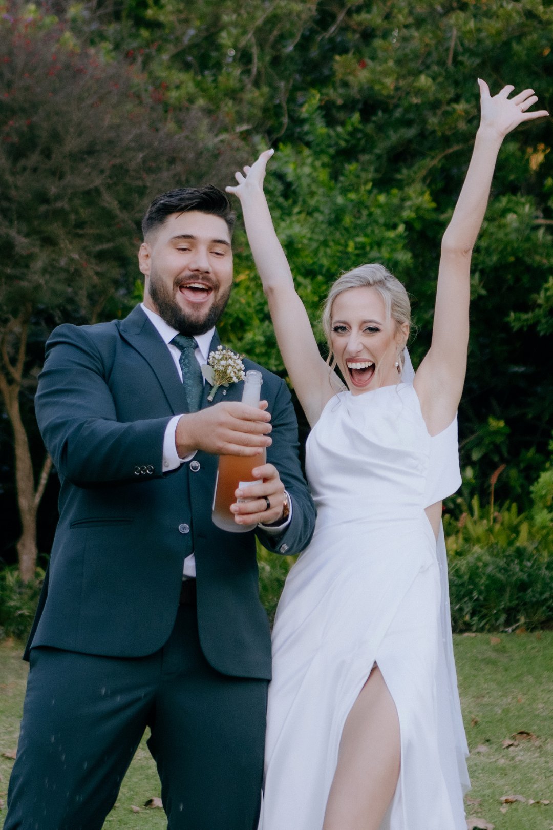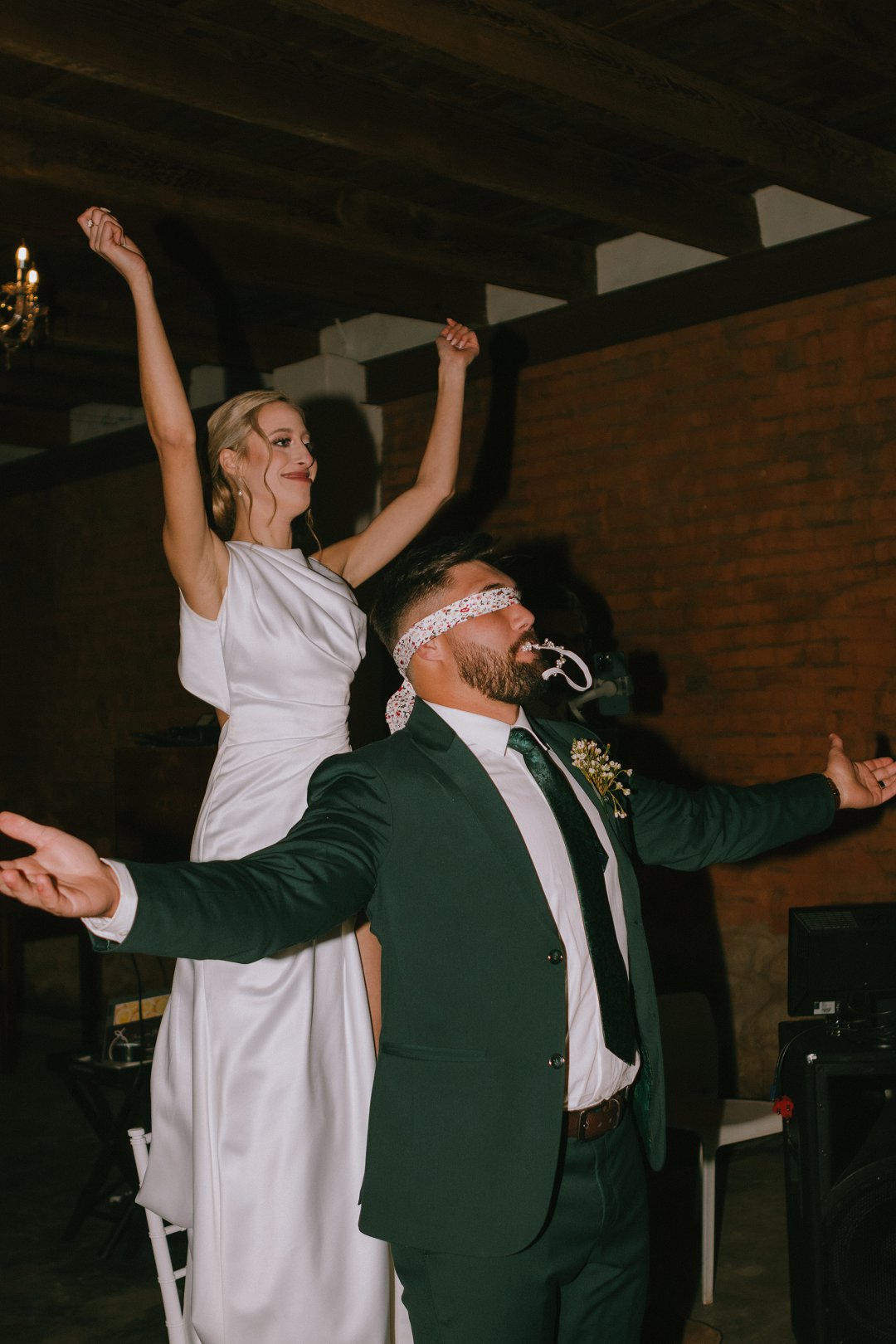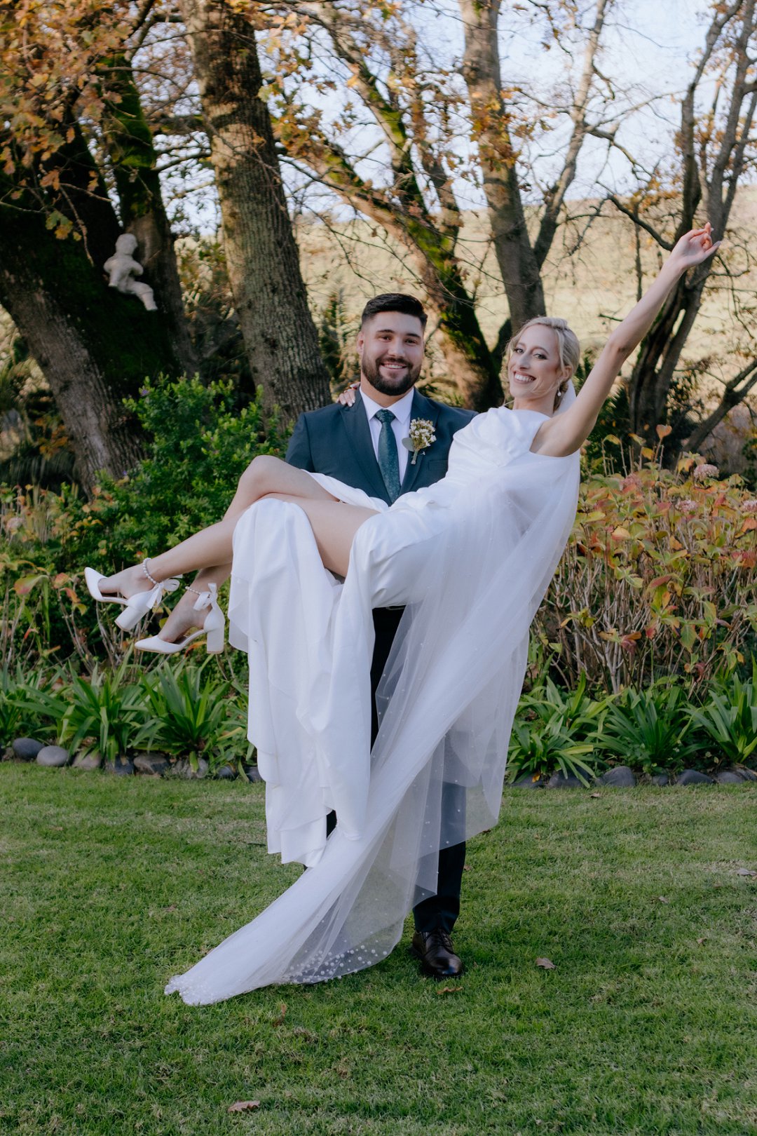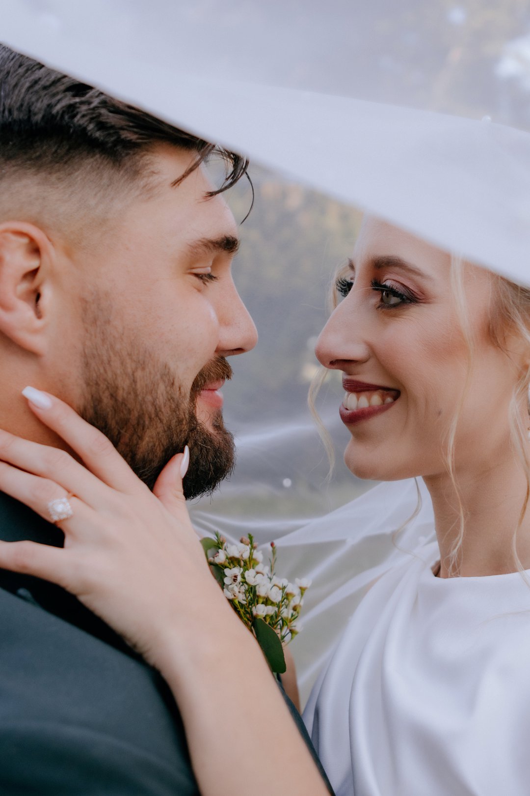 Jana het asemrowend gelyk in haar trourok met ’n simplistiese voorkoms, perfek vir die paartjie se pragtige dag. Haar sluier was versier met fyn pêrel afwerking, wat besonderse detail by haar rok gevoeg het. Dameon het stylvol gelyk in sy groen troupak – ’n unieke kleur wat besonder goed werk vir bruidegoms drag.