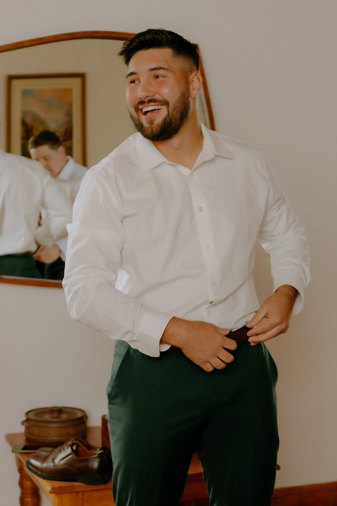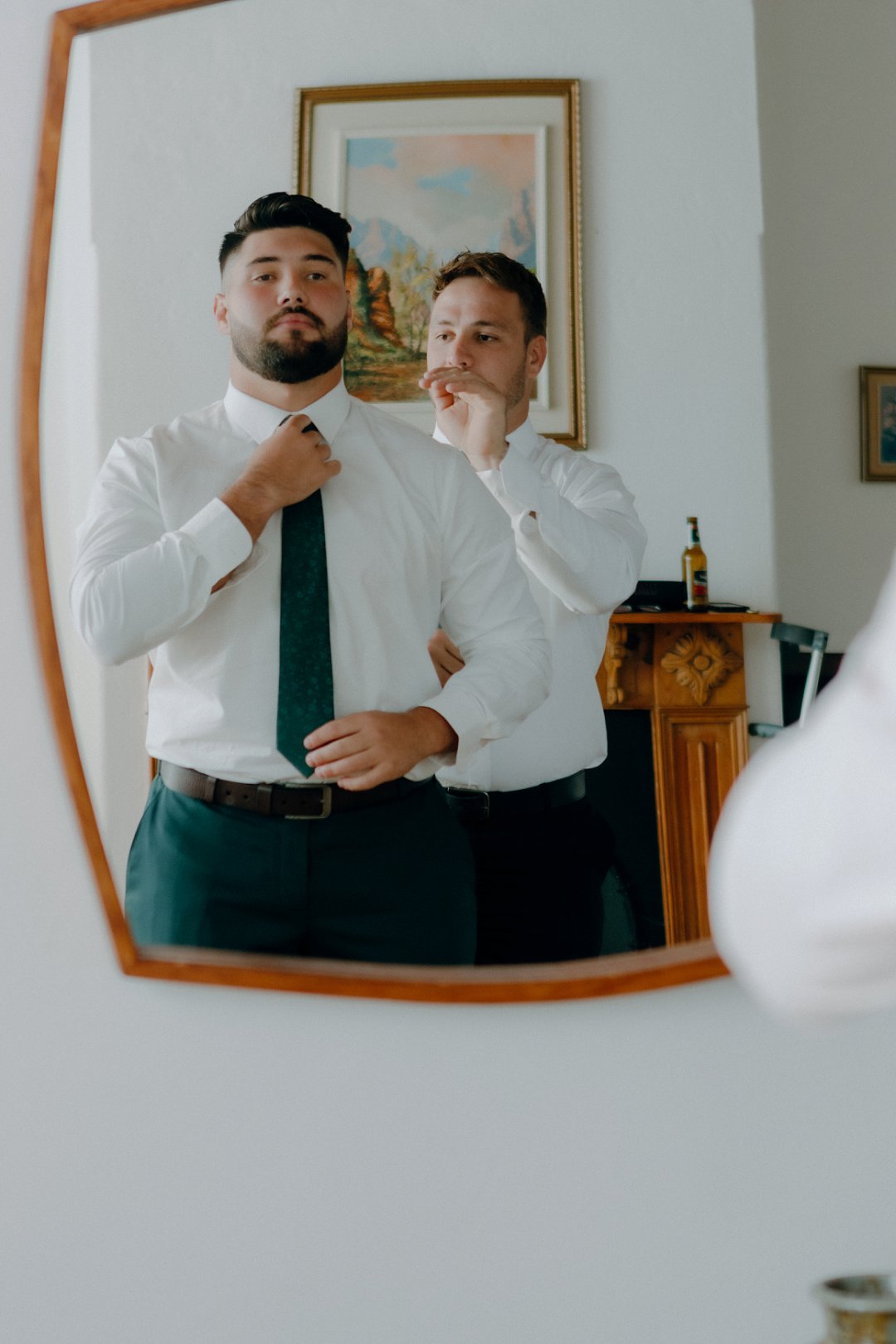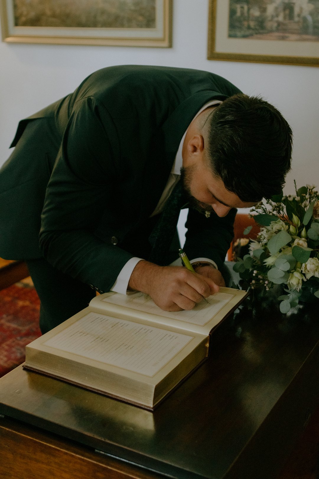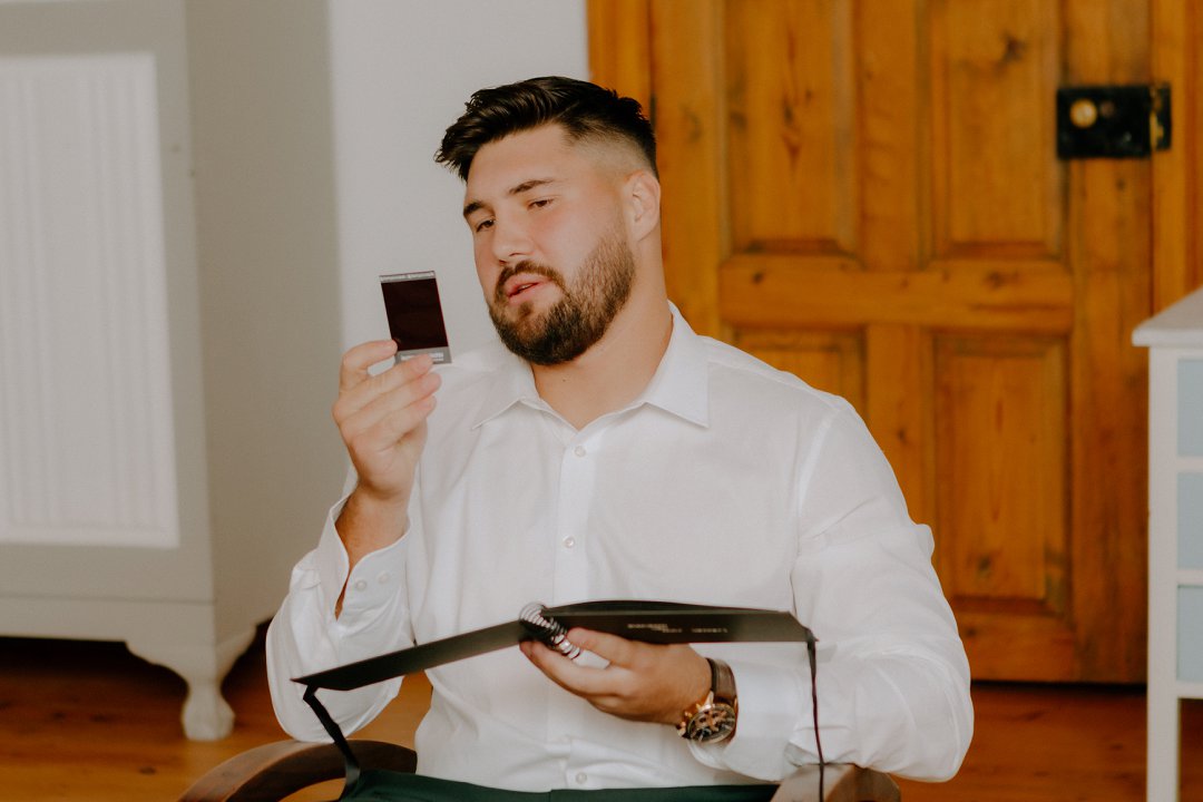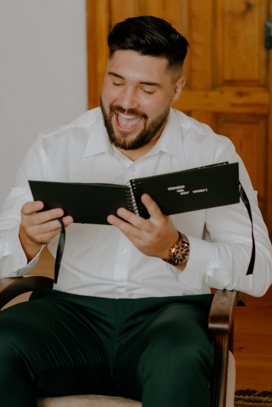 Jana het asemrowend gelyk in haar trourok met ’n simplistiese voorkoms, perfek vir die paartjie se pragtige dag. Haar sluier was versier met fyn pêrel afwerking, wat besonderse detail by haar rok gevoeg het. Dameon het stylvol gelyk in sy groen troupak – ’n unieke kleur wat besonder goed werk vir bruidegoms drag.
