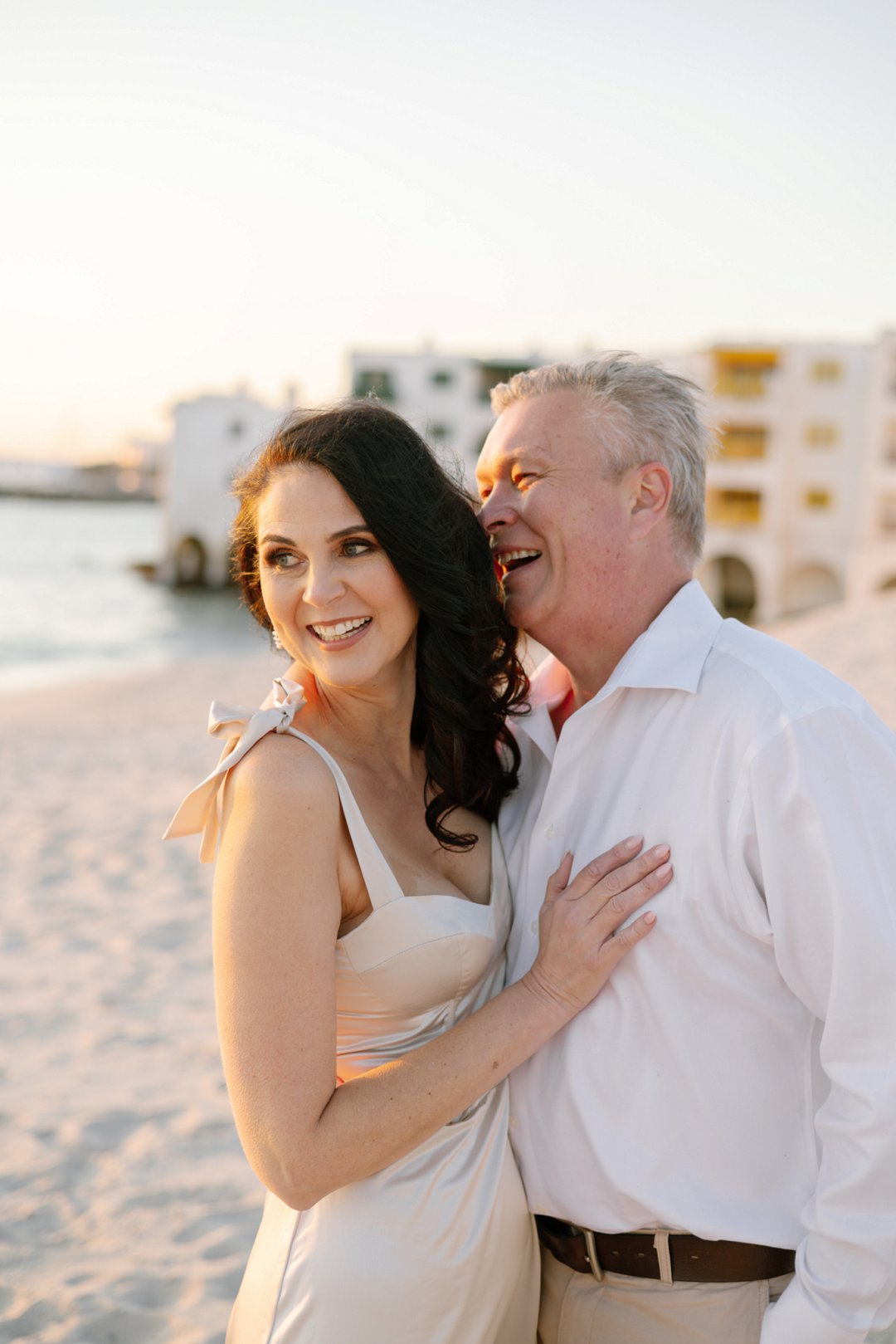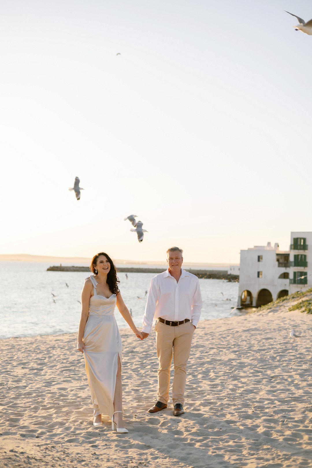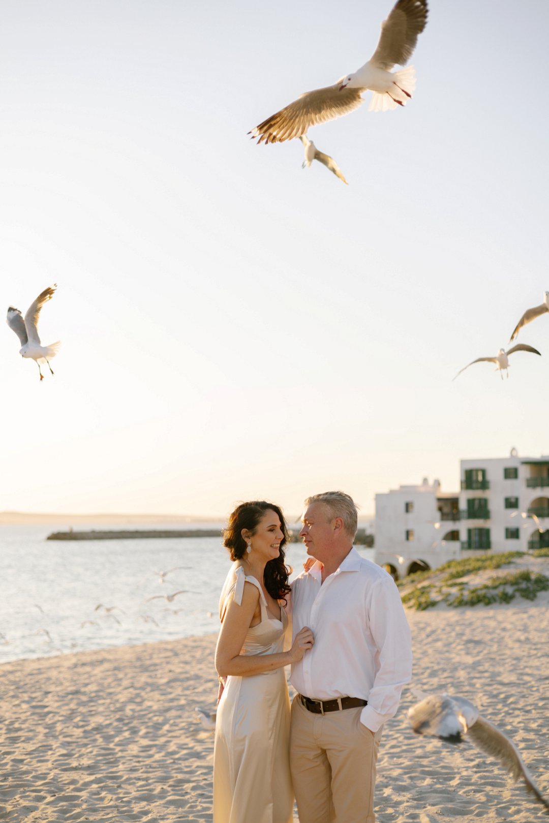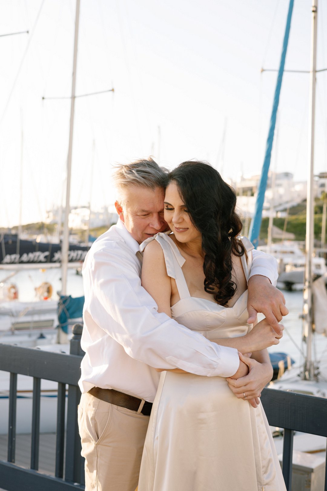 Hul het toe hul verlowing fotosessie gereël by ʼn bekende vakansieoord se strand in Langebaan gewees. Die wit huisies in die agtergrond met die kleurvolle venster rame en ook die bootjies in die agtergrond gee ʼn Mykonos in Griekeland gevoel aan die foto’s.