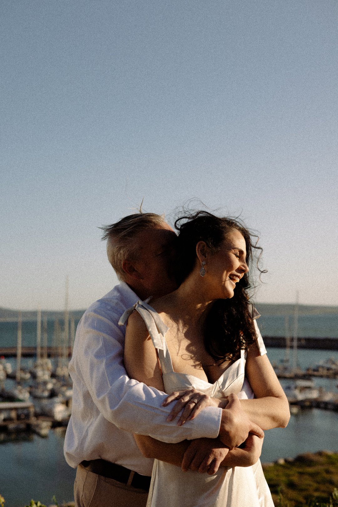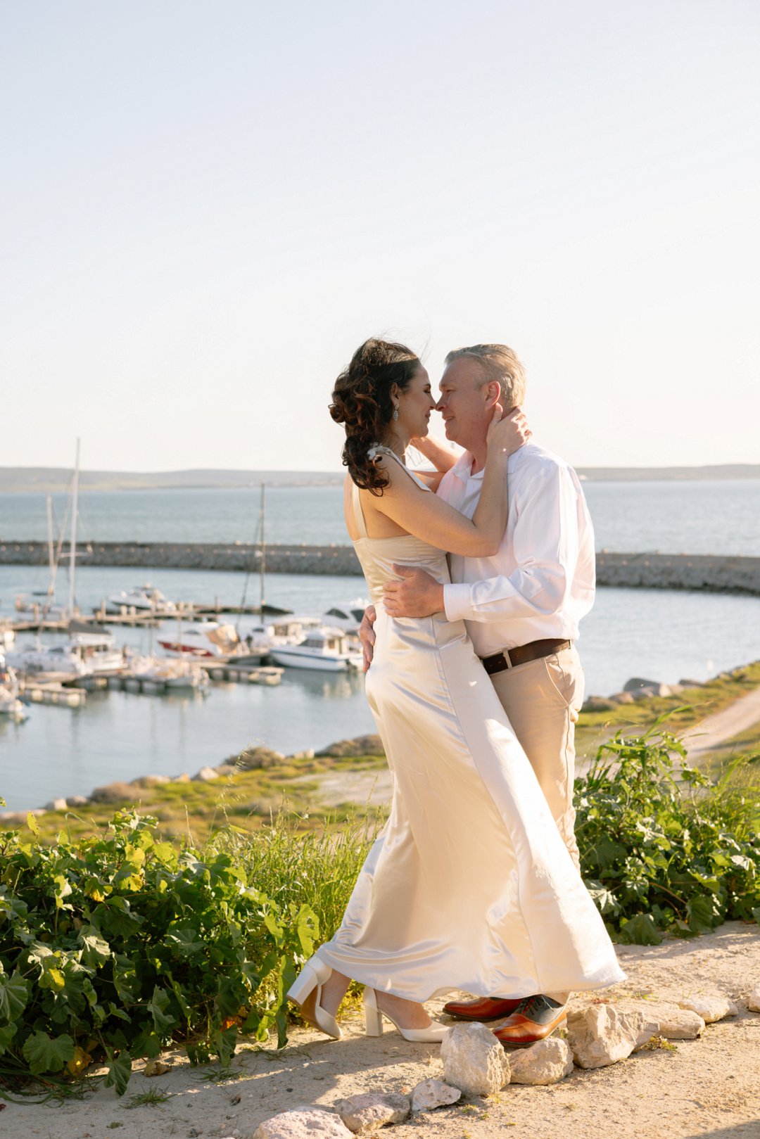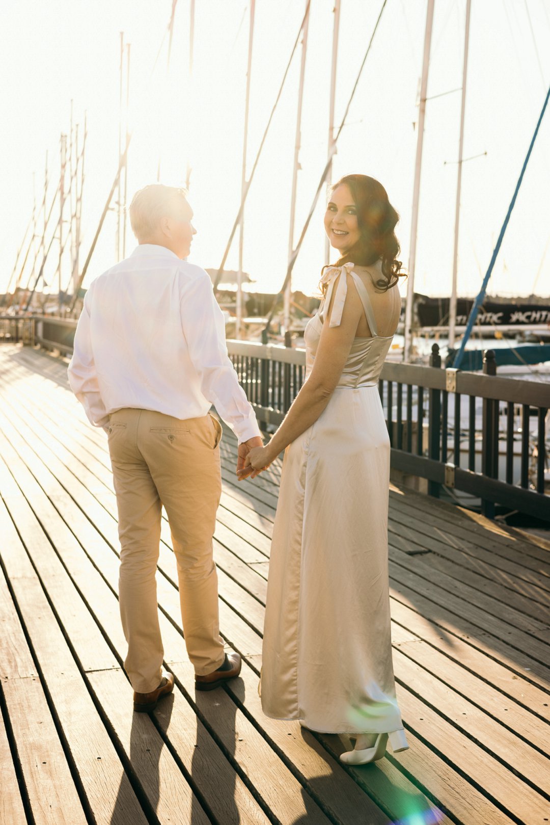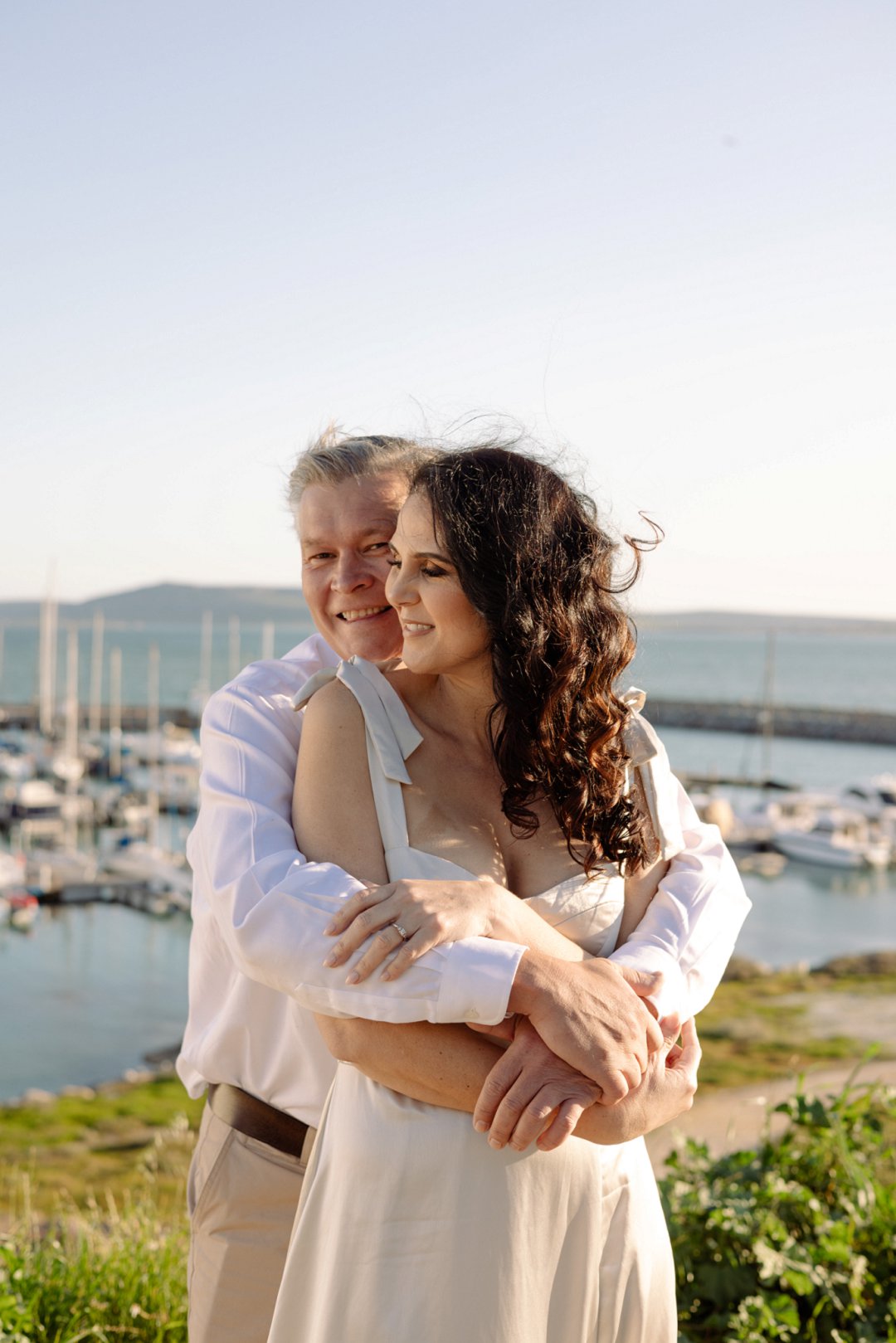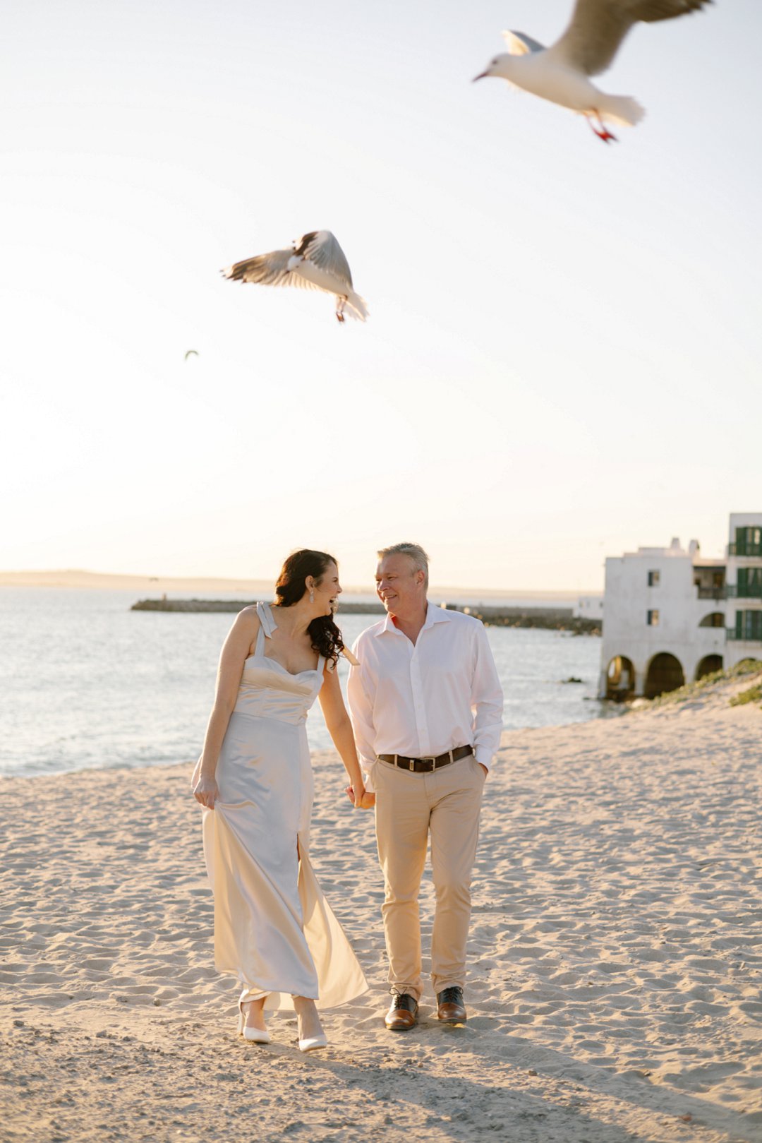 Hul het toe hul verlowing fotosessie gereël by ʼn bekende vakansieoord se strand in Langebaan gewees. Die wit huisies in die agtergrond met die kleurvolle venster rame en ook die bootjies in die agtergrond gee ʼn Mykonos in Griekeland gevoel aan die foto’s.