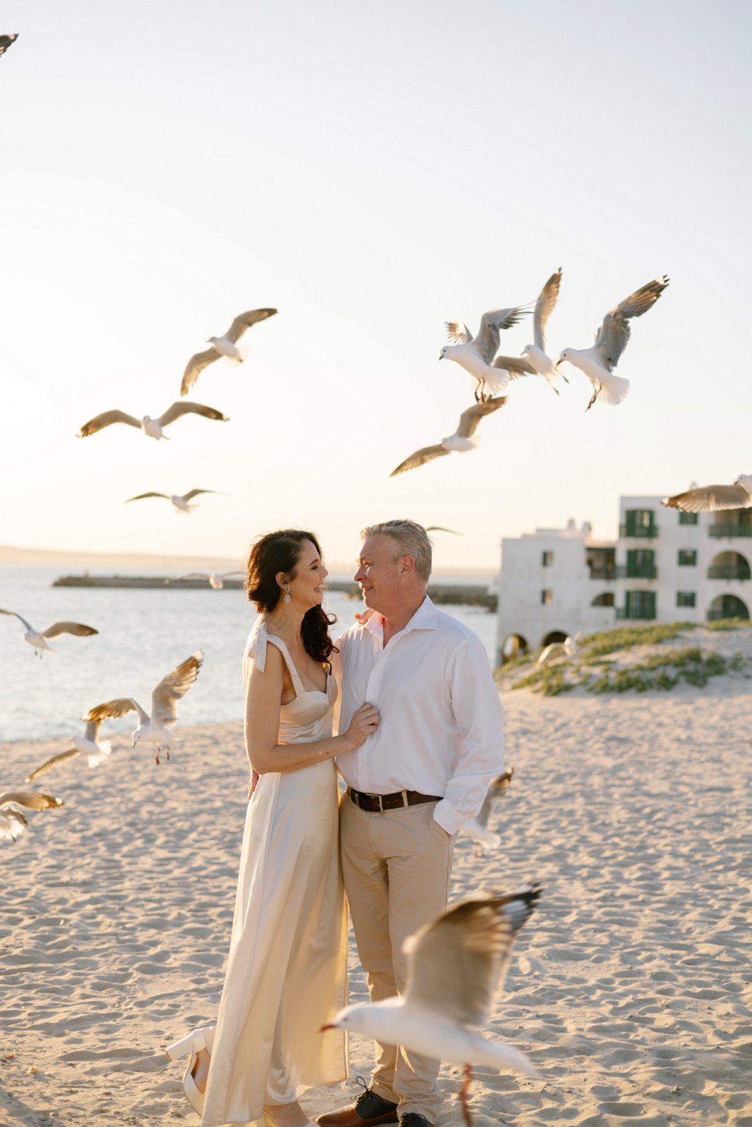 Lumari het die mooiste sagte sjampanje kleur rok aangehad vir hul fotosessie en Leon ʼn ligte broek en wit hemp. Hulle het semi formeel gelyk, maar nogsteeds baie gemaklik en perfek gepas vir die verlowing fotosessie. Ons kon sien hulle het elke sekonde van die fotosessie gate uit geniet.