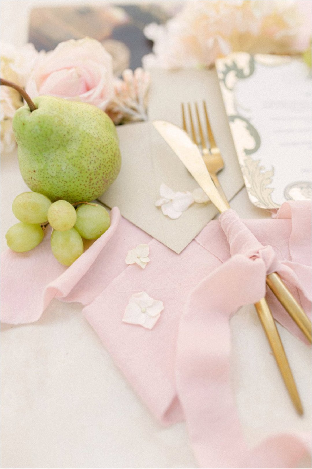 Dina, die eienaar van Venue Nouveau en Lily Grace Floral Design, is ʼn meester wanneer dit kom by dekor en blomme. Ek het vir Dina my idees aangestuur vir die fotosessie, en toe ek by hulle nuwe saal inloop op die dag, het alles gereed gestaan soos ek dit gedroom het. Sy het antieke dekor stukke op die tafel gebruik om die tema en ‘Fine Art’ styl uit te beeld. Vrugte en neute, wat tans in die mode is met troues, is op die tafel stileer om die antieke, maar moderne weergawe van Romeo en Juliet uit te beeld. Pere was ʼn moet met ons sessie.