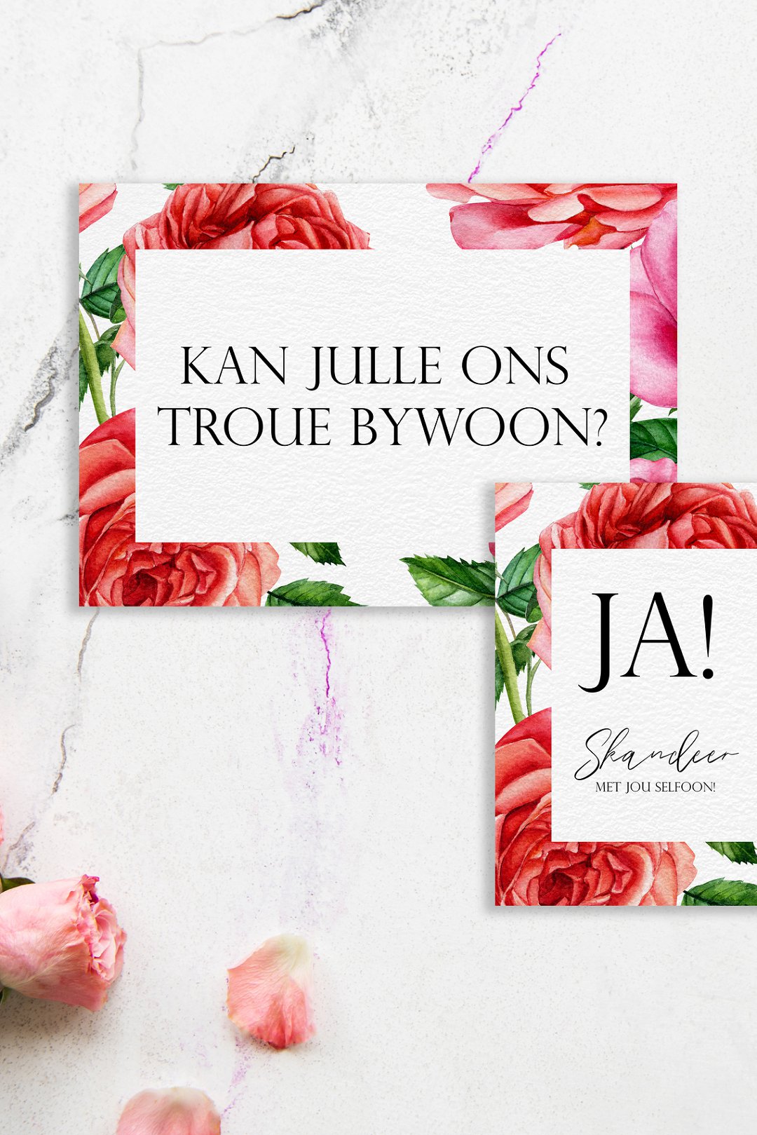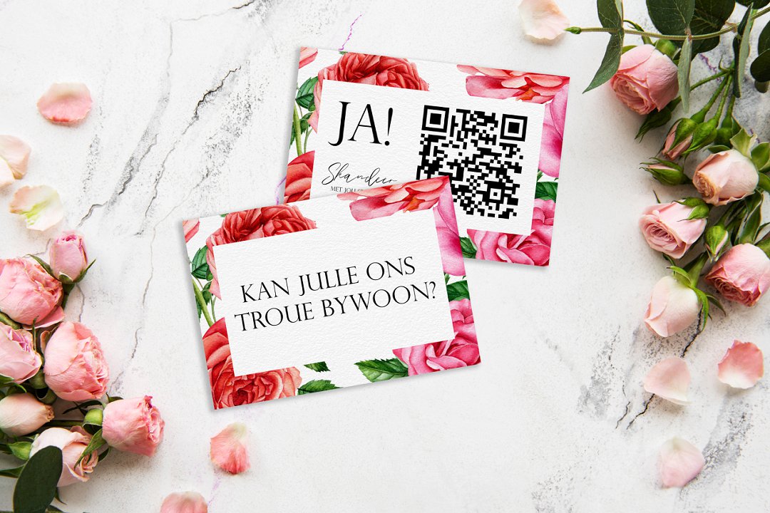 Rol af vir inspirasie vir julle eie trou-RSVP-kaartjies.
