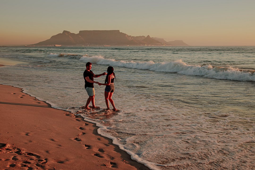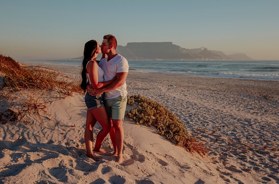 Ruan en Monita se romantiese sonsak fotosessie op Bloubergstrand tydens sonsak bied tonne inspirasie vir paartjies wat op soek is na idees vir hul eie fotosessie.