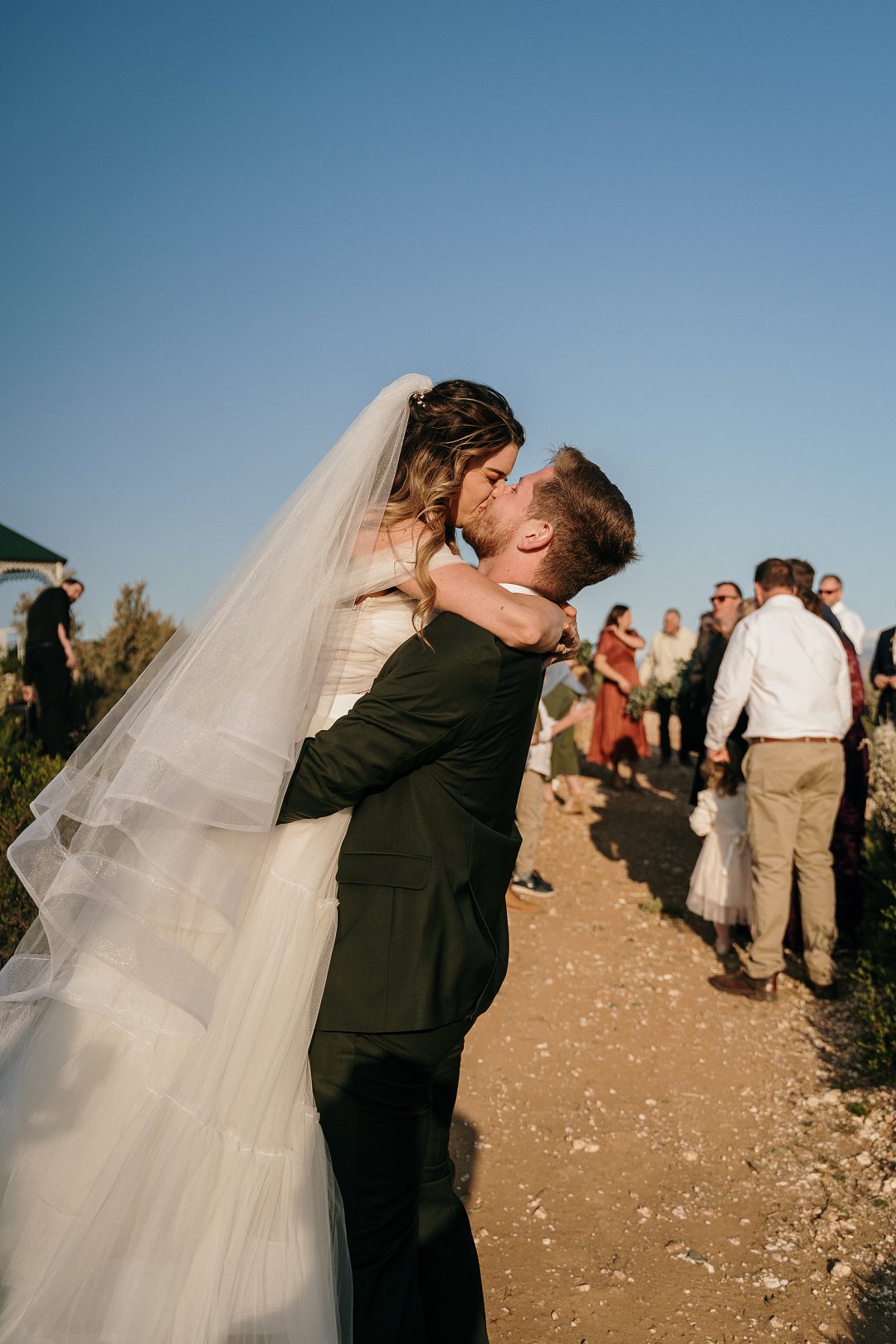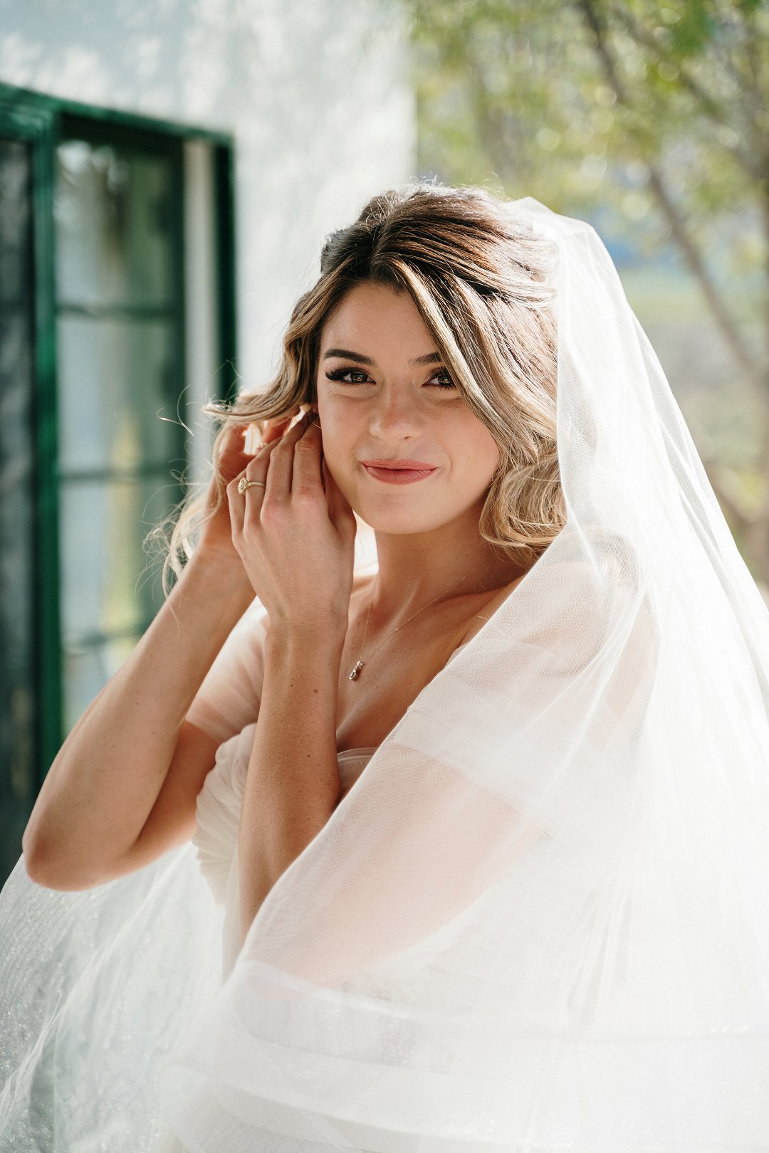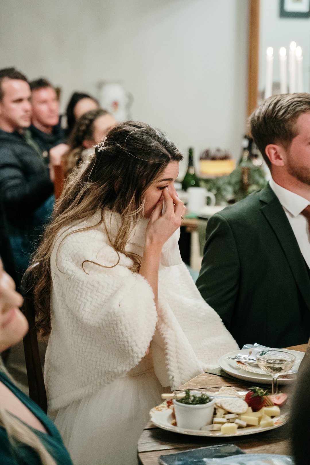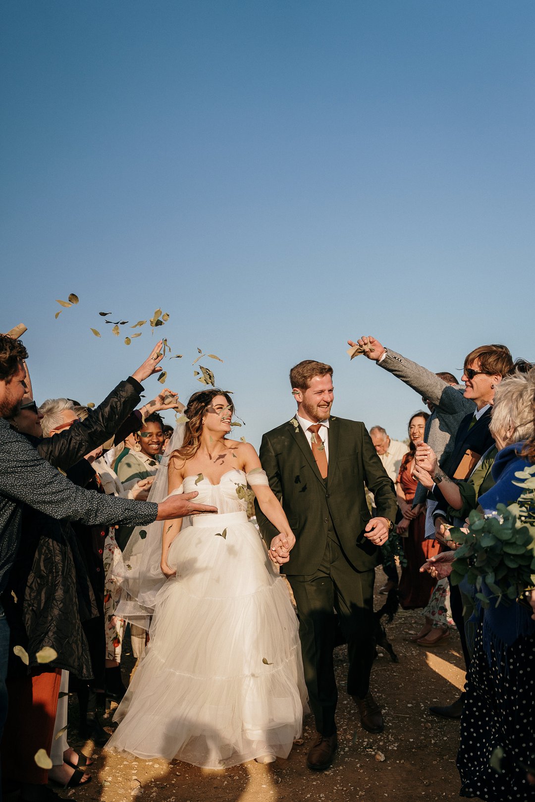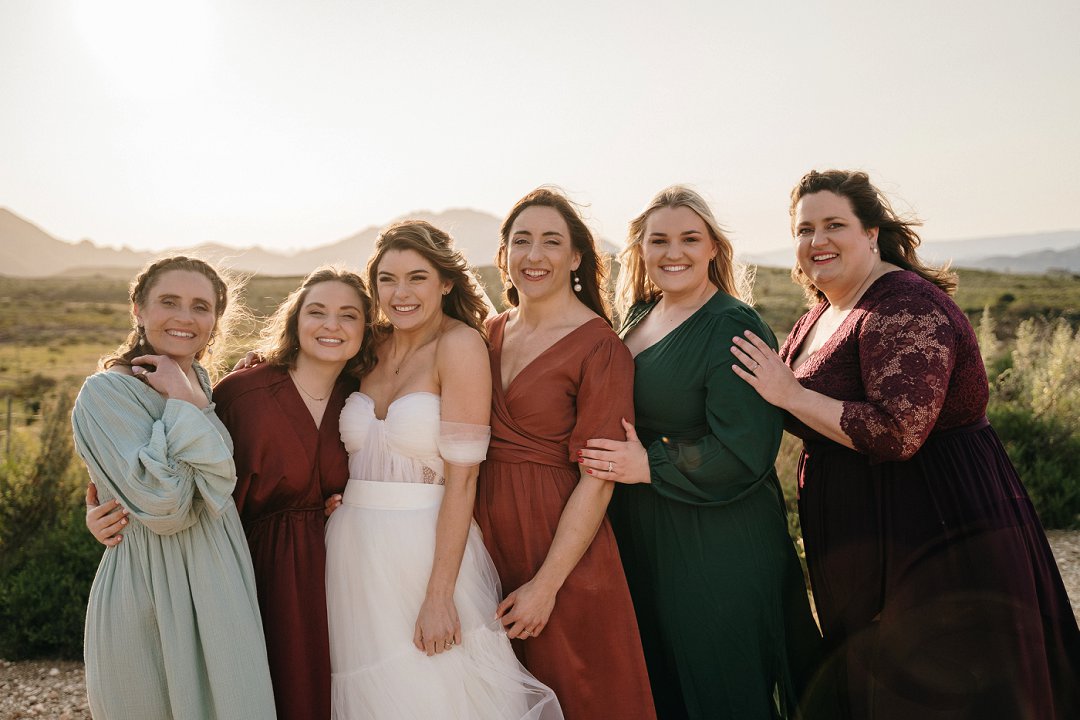 Ek het afgestap van die wittebroodsuite, wat teen die heuwel af was – ʼn loop van omtrent drie minute. Die gaste en my man het die hele tyd gekyk hoe ek die pad afstap, wat vir almal meer tyd gegee het om die oomblik werklik in te neem. Die berge het as die pragtige agtergrond gedien, en my hond en sy doggy cousins het opgewonde voor ons uitgehardloop met kranse om hul nekke, terwyl hulle uitbundig geblaf het.
