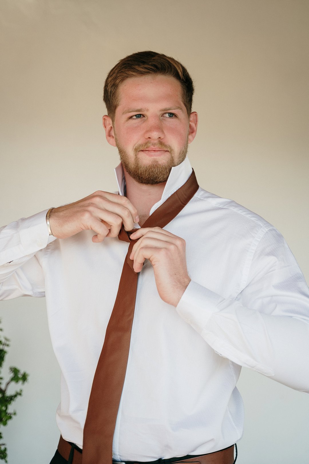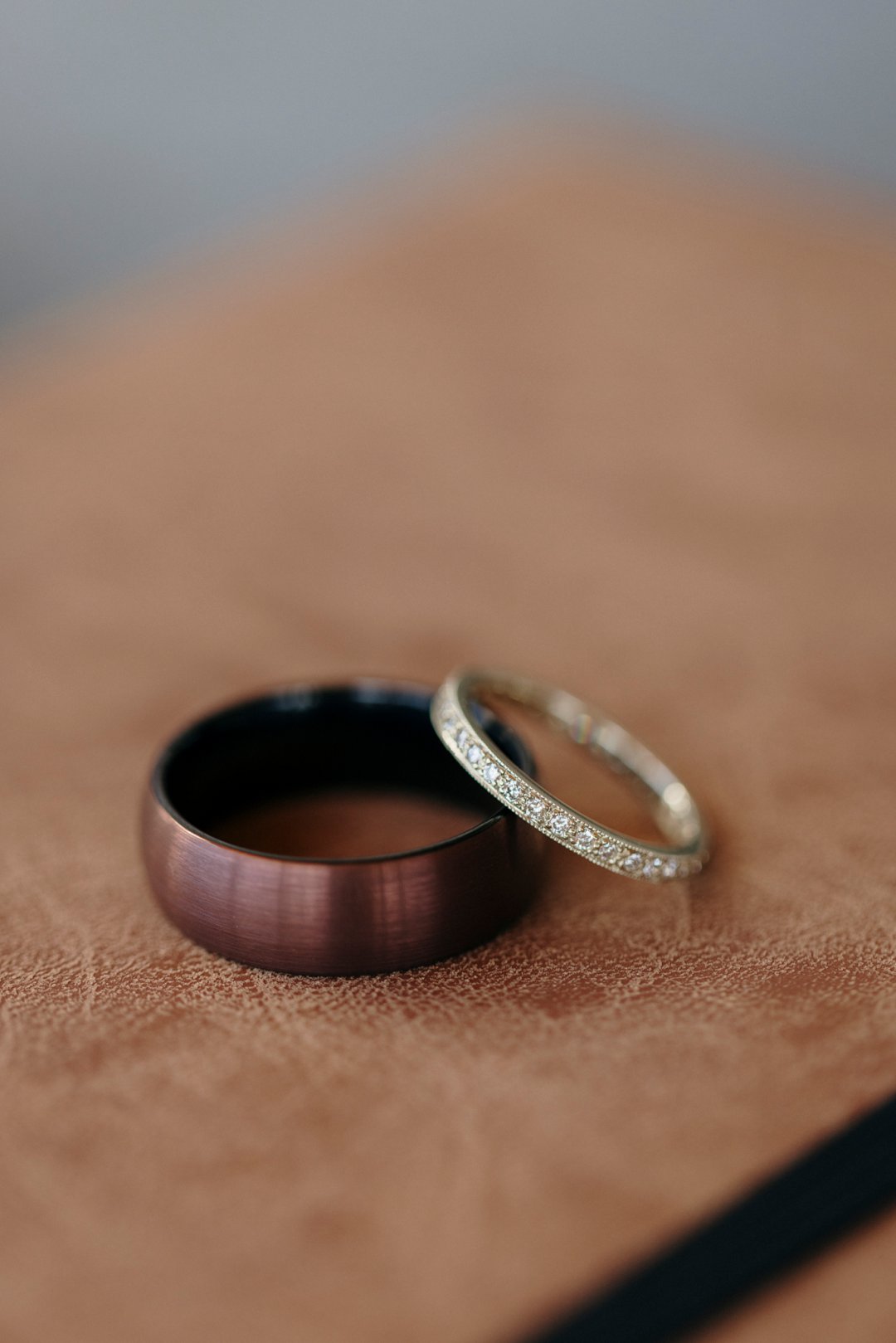 Sy ring moes sterk en manlik wees, net soos hy. Ons was mal oor hoe die bruin kleur teen sy vel vertoon het, en die unieke tekstuur het dit net meer spesiaal gemaak.