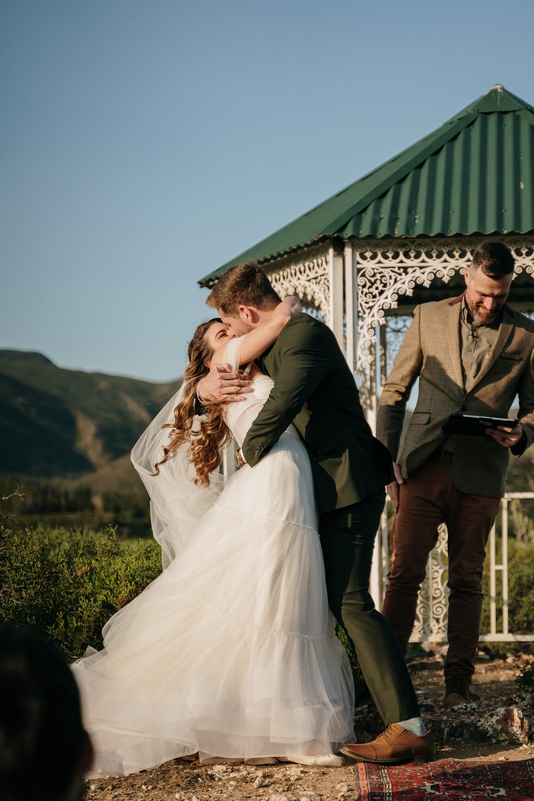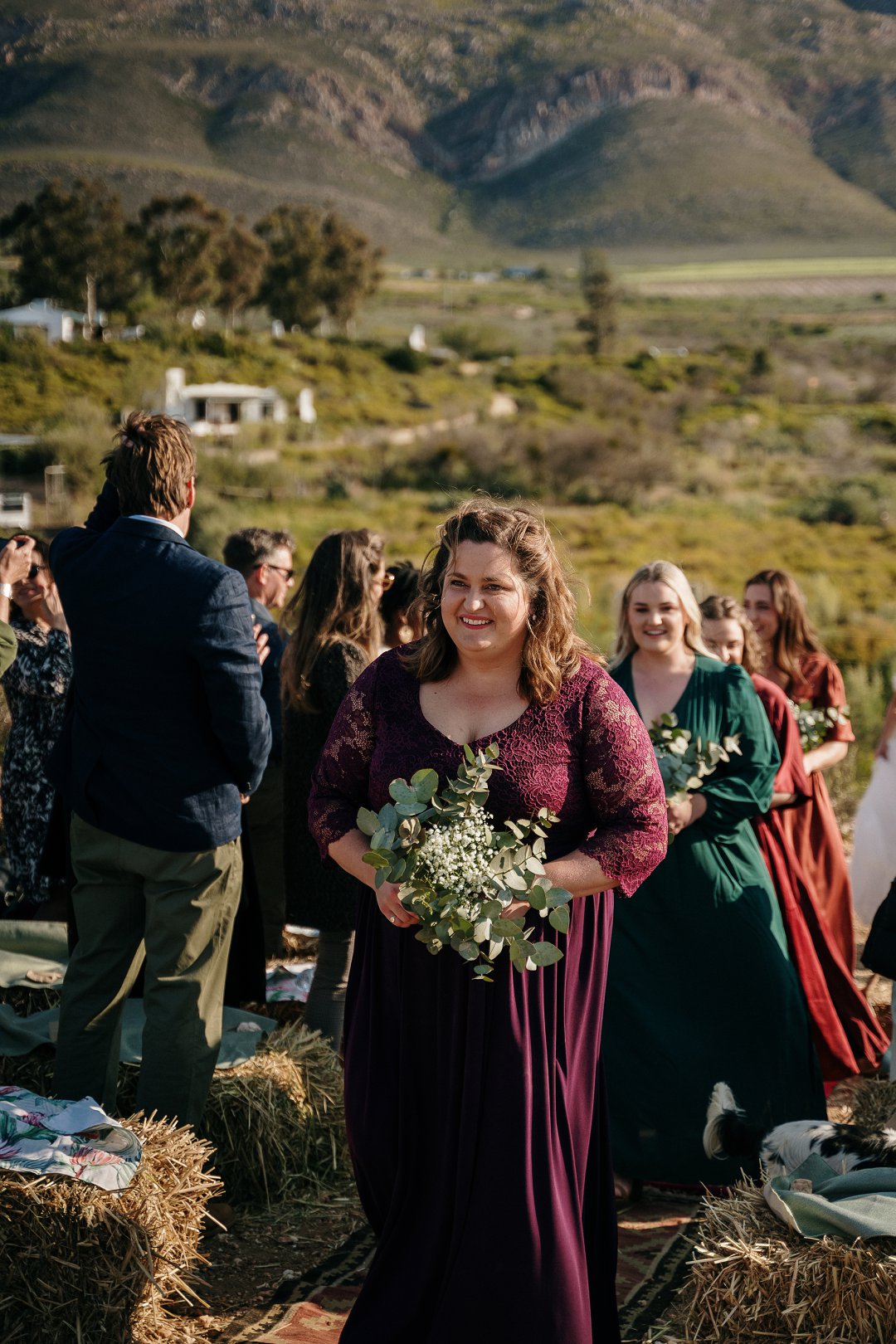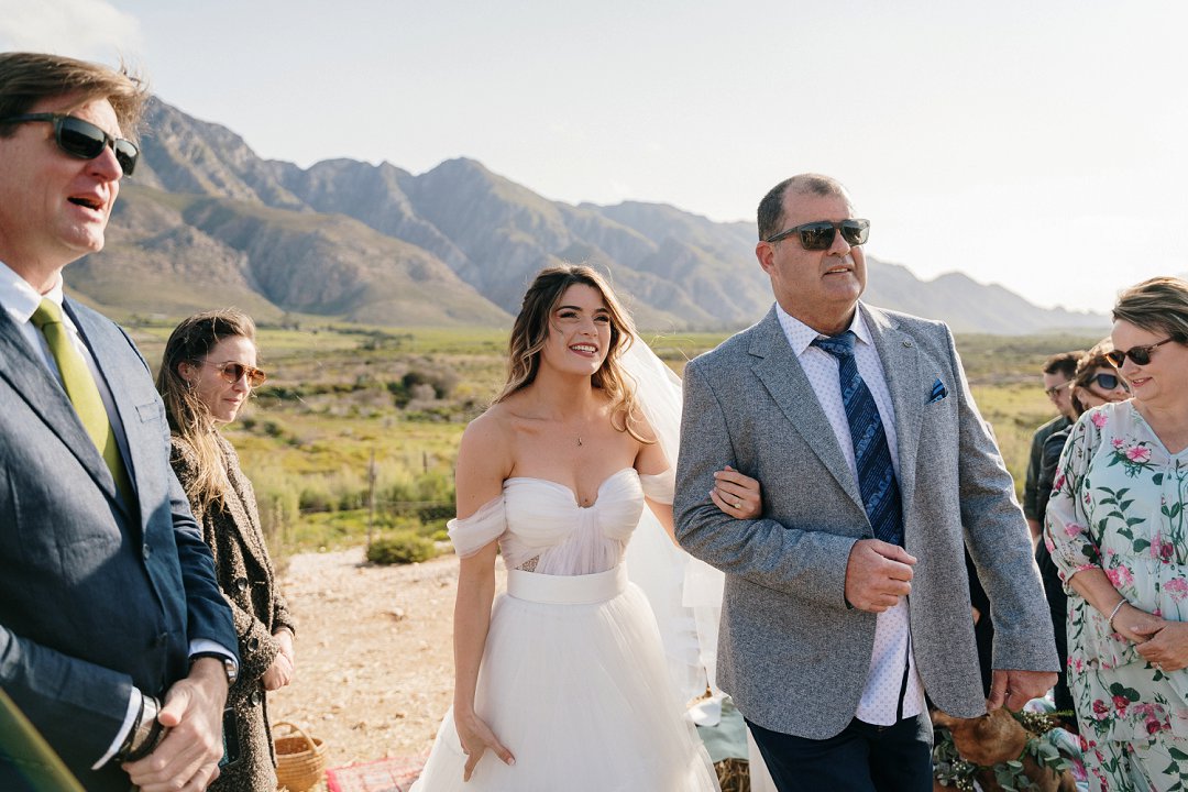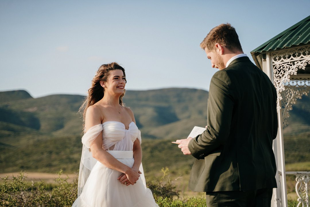 Die seremonie het plaasgevind op ʼn koppie, in die middel van die fynbos by ʼn oulike wit prieel. Dit was nie eintlik bedoel as die seremonie plek nie, en die venue was verbaas dat ons dit daar wou hou, maar dit was perfek en het nie so “opgevoer” gevoel nie.