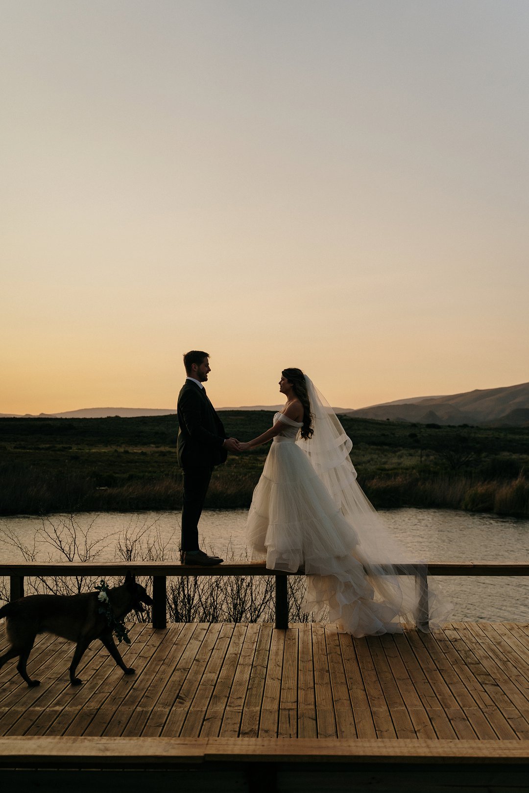 360on62 Farm Cottages and Weddings is die droom trou plek vir enige paartjie wat van ʼn idilliese plaastroue droom. Hannah en Kai het ʼn pragtige buitelug-seremonie gehad, omring deur fynbos en die skilderagtige Karoo vlaktes. Hulle het selfs ʼn oulike viervoetige ringdraer gehad, saam met ander troeteldiere as gaste, wat die dag net nóg meer spesiaal gemaak het.