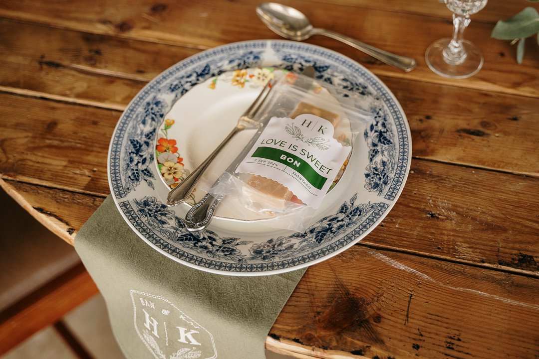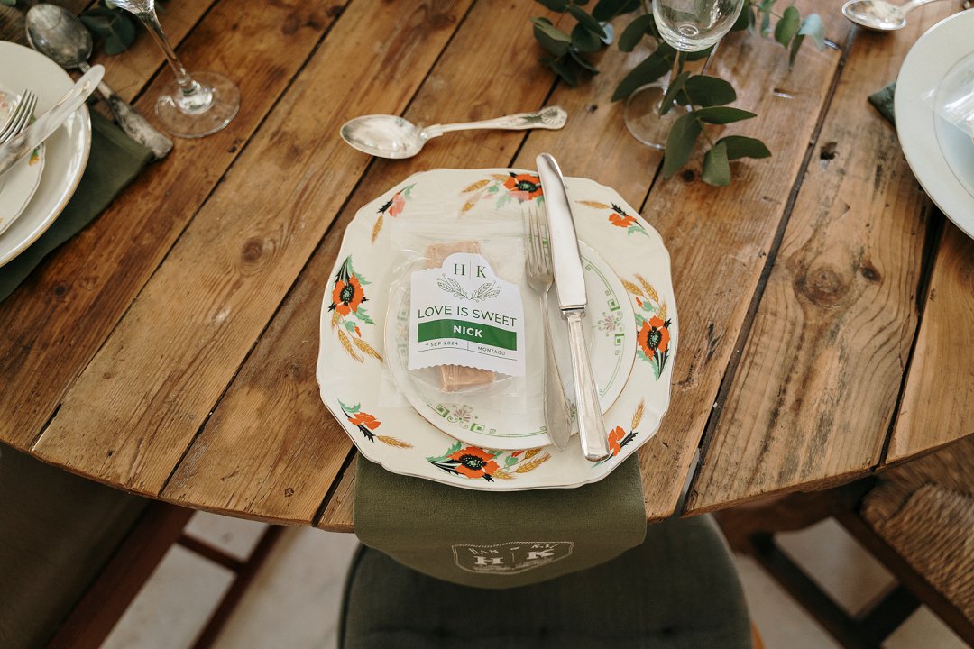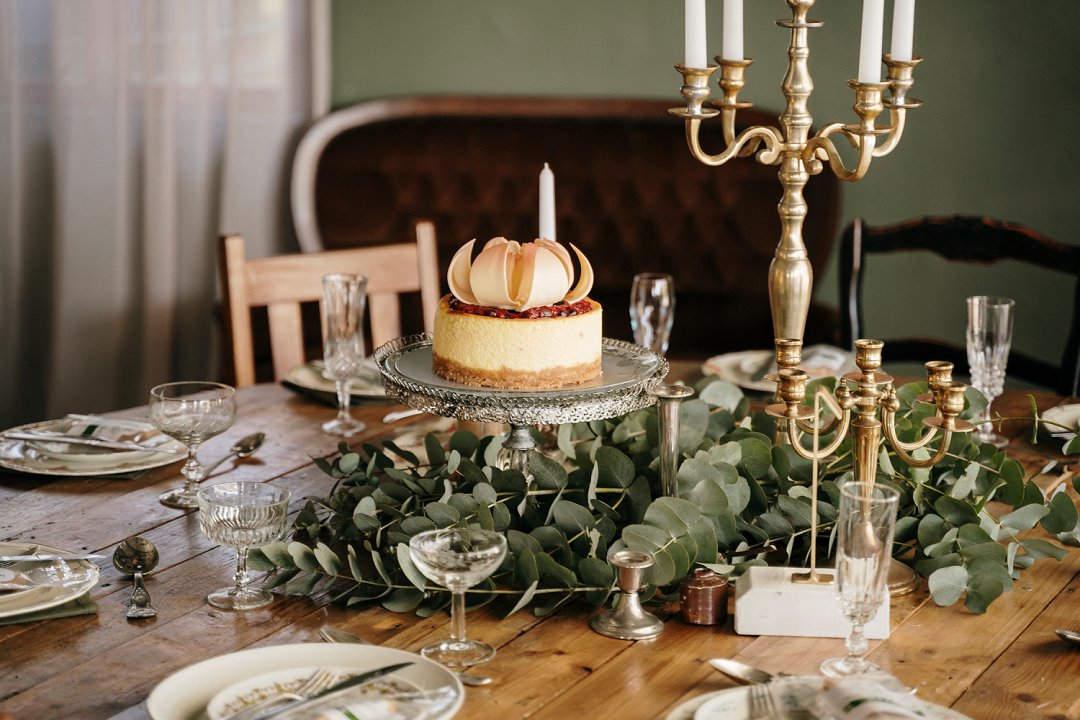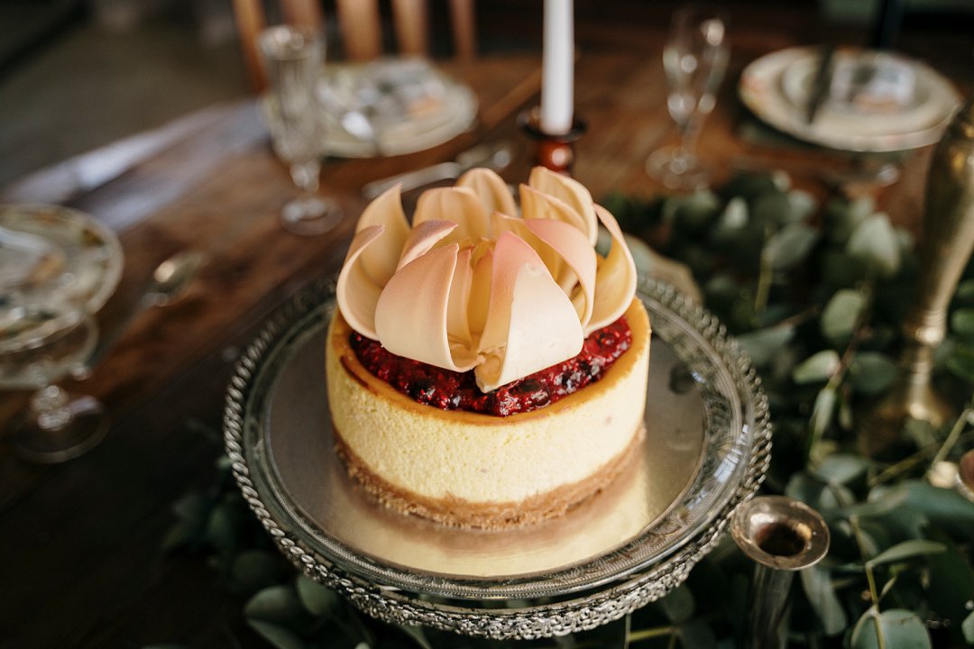 Ek het die kleure gekies om die fynbos te komplimenteer – wynrooi, groen, goud en bruin. Ons het oulike, unieke dekor gebruik vir die tafels, en niks was dieselfde nie. In plaas van een groot koek wat gesny word, het ons besluit om op elke tafel ʼn ander geur kaaskoek te plaas, wat die gaste aangemoedig het om by ander tafels te kuier en ʼn lepel vol van die verskillende geure te proe. Dit was so lekker en het almal laat gesels en kuier.