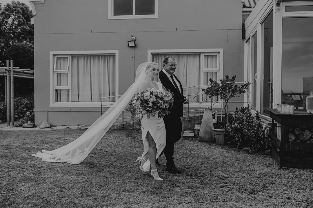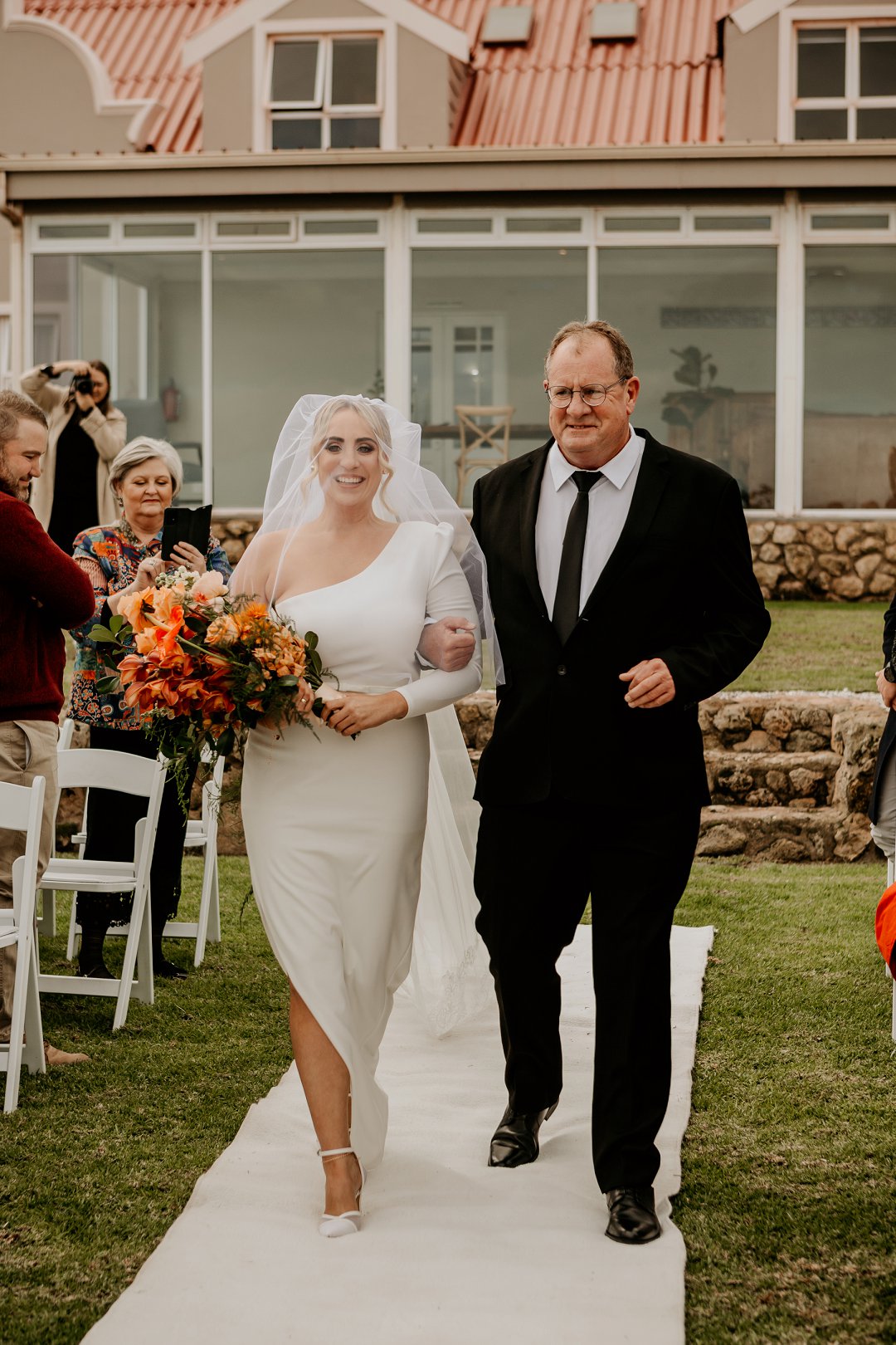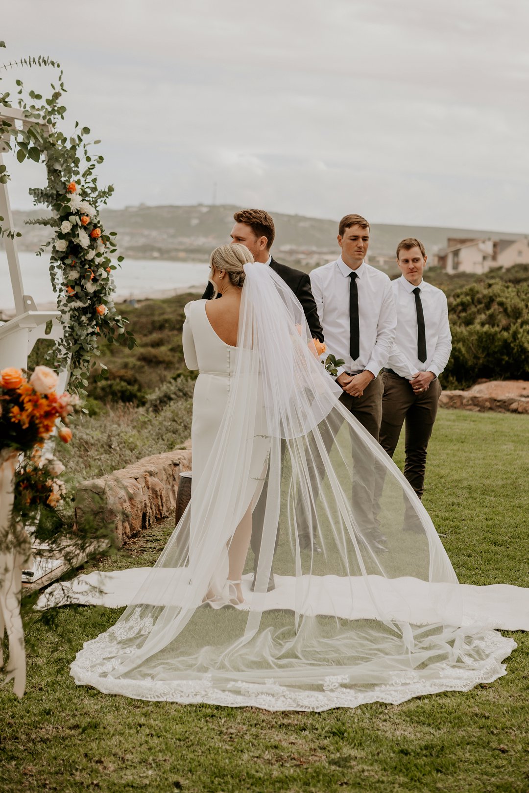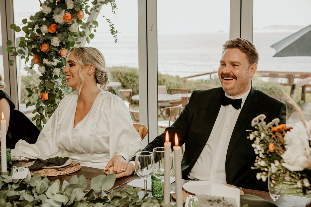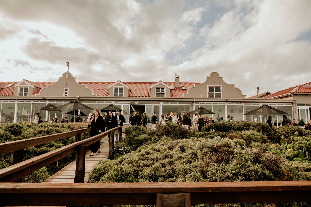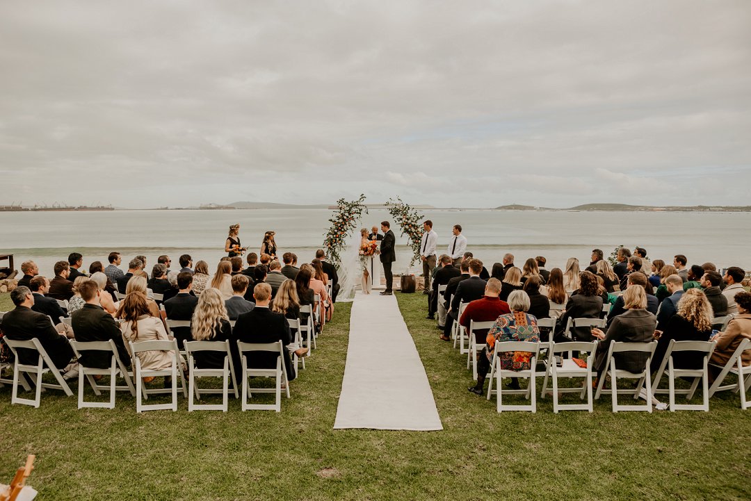 Die weer het perfek saamgespeel, wat ons in staat gestel het om buite op die grasperk voor die see ons seremonie te hou. Dit het ʼn balans geskep tussen die ongerepte natuurlike omgewing en ons intieme troustyl. Ons troue was gemaklik, warm, en vrolik – ʼn naweek vol liefde, lag, en die spesiale mense in ons lewens, alles teen die asemrowende agtergrond van die Weskus strand.