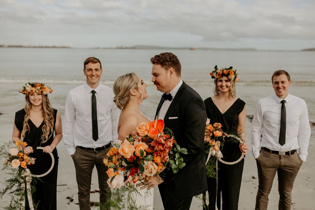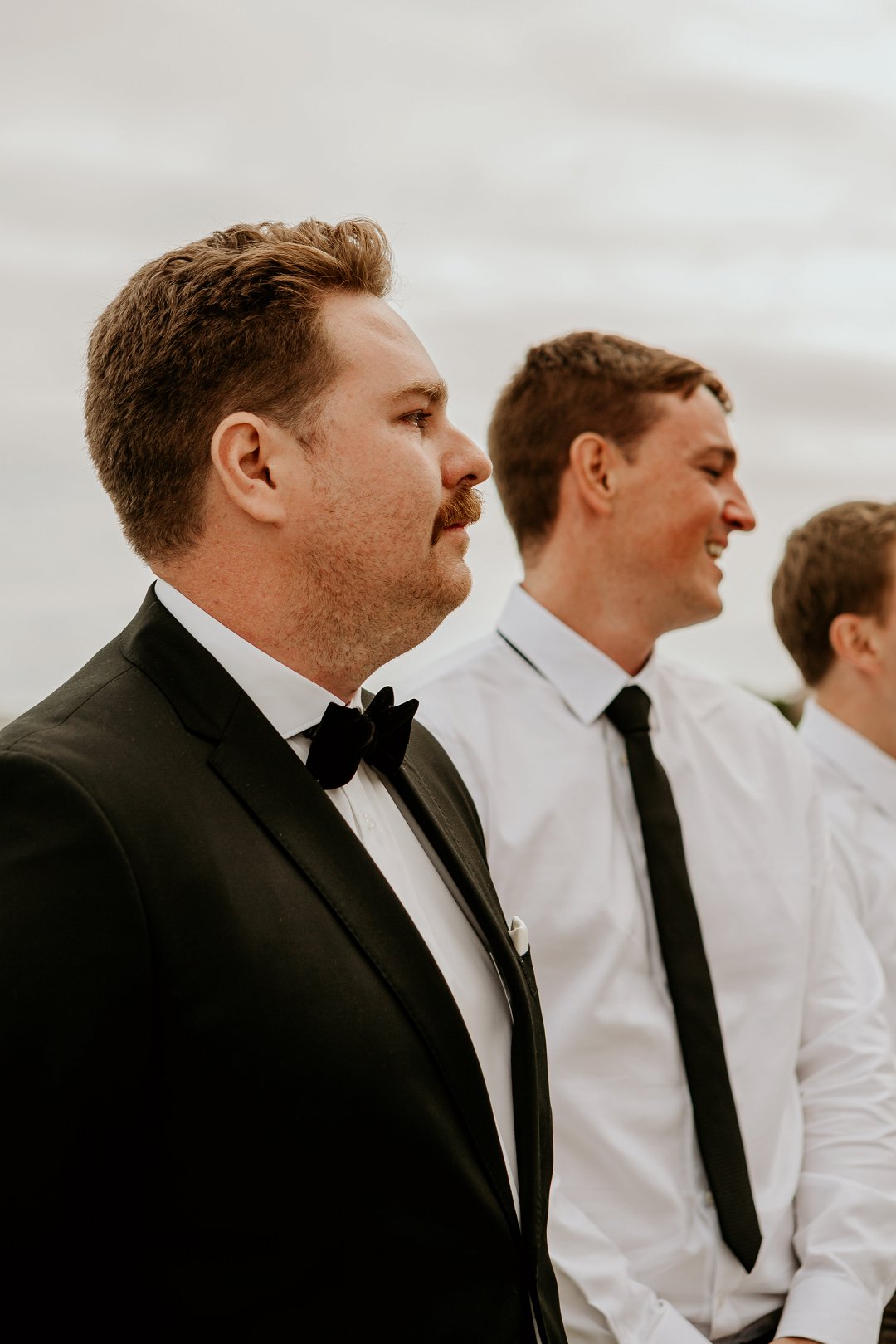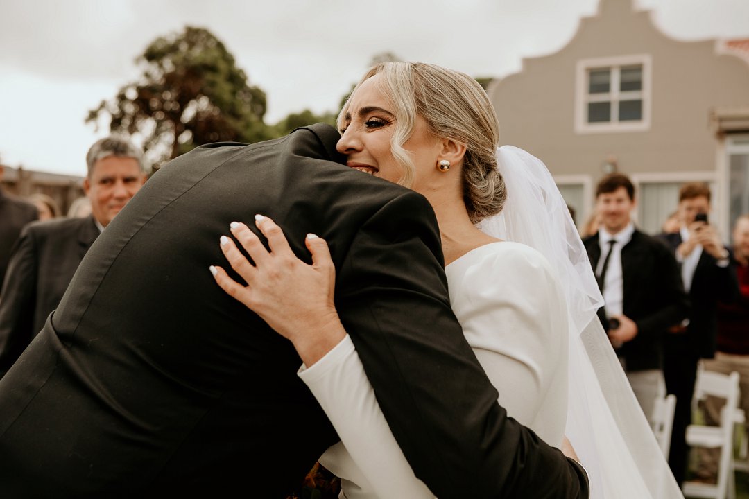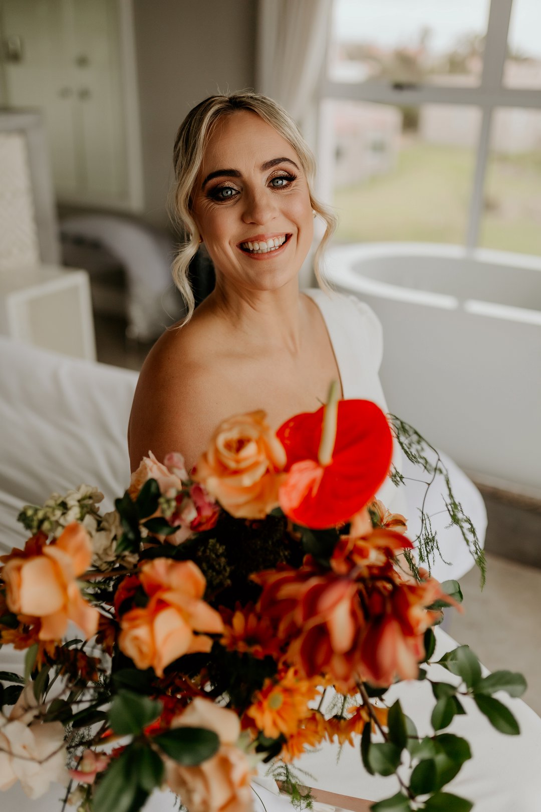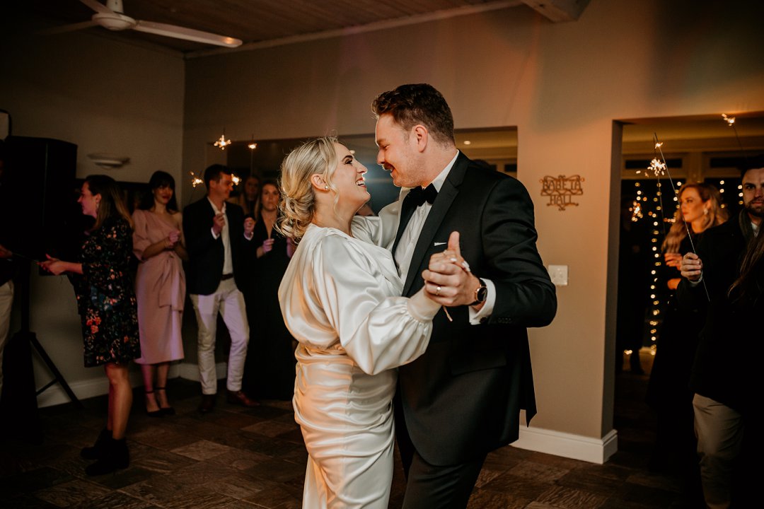 Die weer het perfek saamgespeel, wat ons in staat gestel het om buite op die grasperk voor die see ons seremonie te hou. Dit het ʼn balans geskep tussen die ongerepte natuurlike omgewing en ons intieme troustyl. Ons troue was gemaklik, warm, en vrolik – ʼn naweek vol liefde, lag, en die spesiale mense in ons lewens, alles teen die asemrowende agtergrond van die Weskus strand.