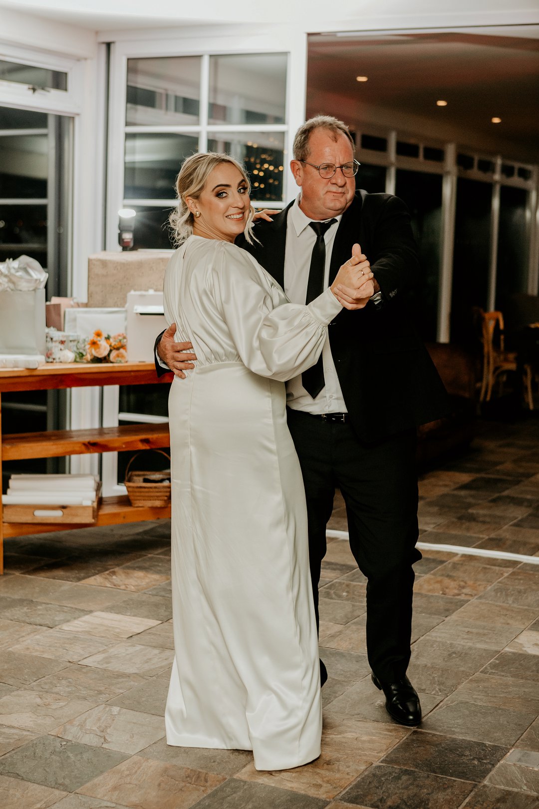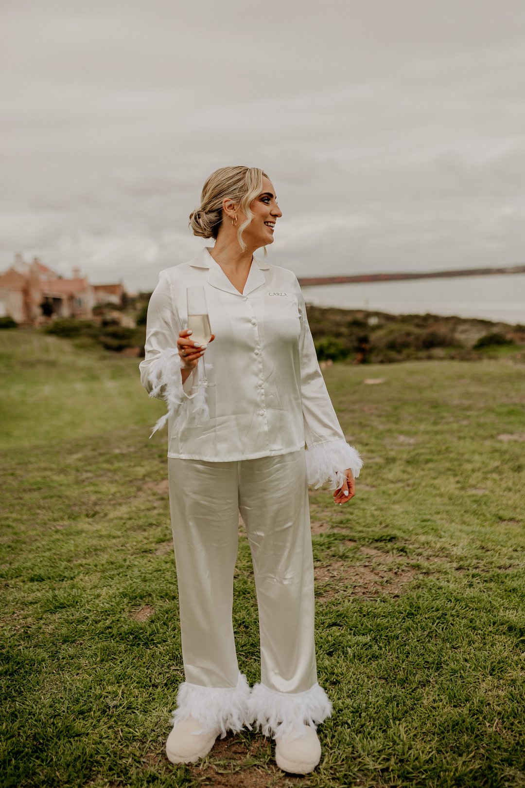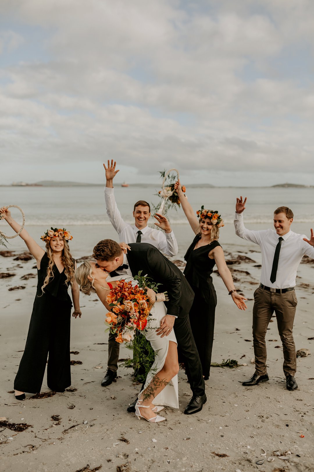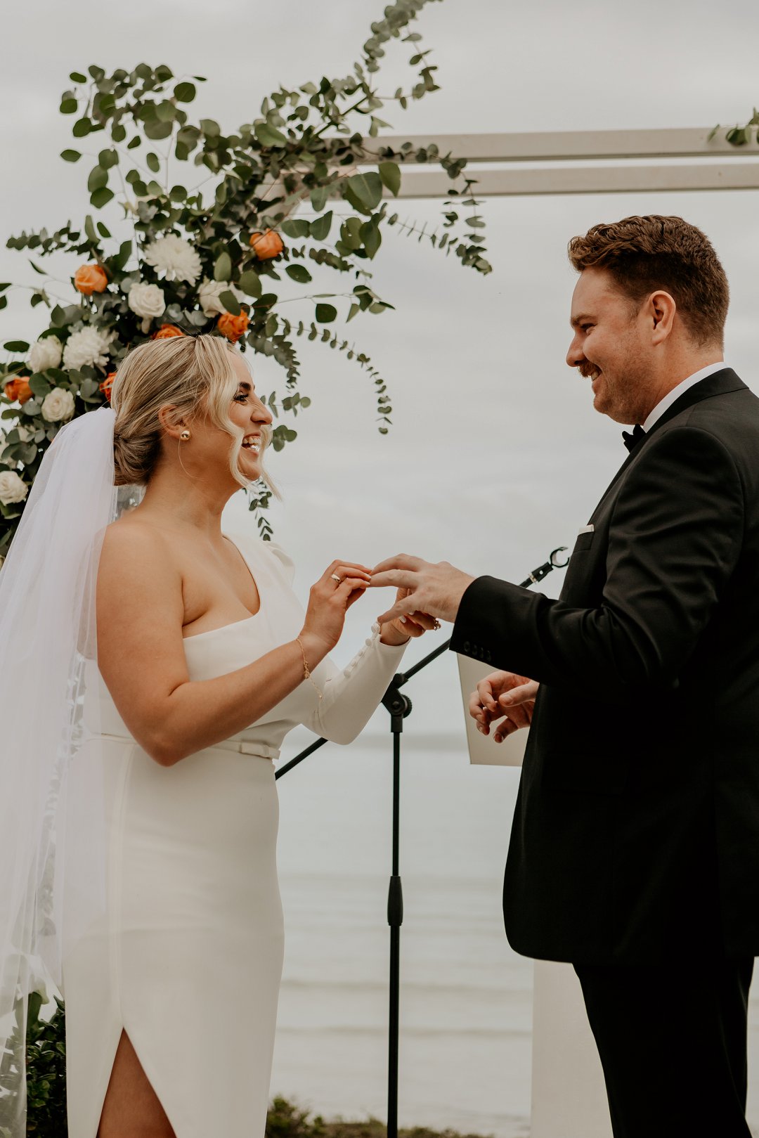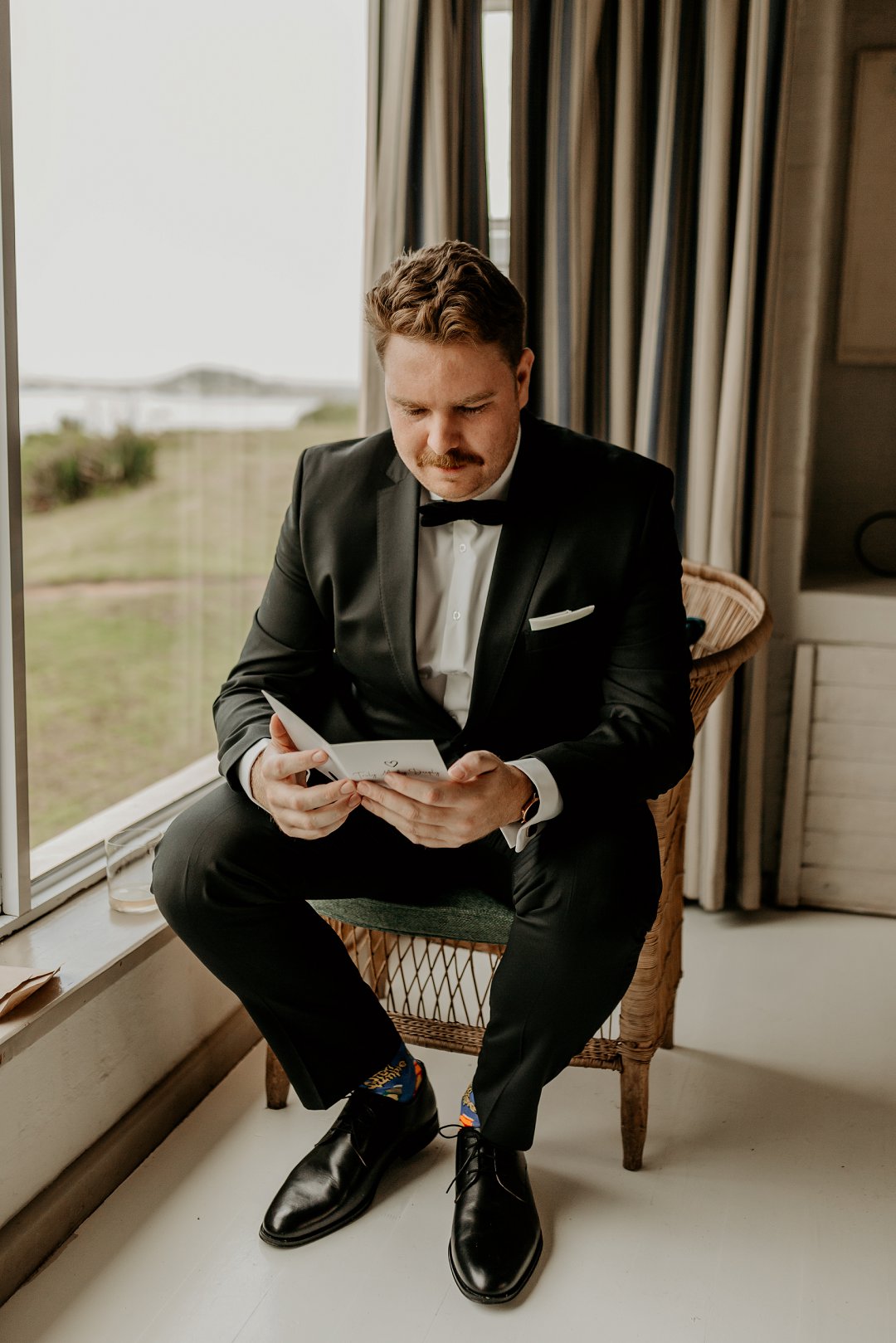 Die weer het perfek saamgespeel, wat ons in staat gestel het om buite op die grasperk voor die see ons seremonie te hou. Dit het ʼn balans geskep tussen die ongerepte natuurlike omgewing en ons intieme troustyl. Ons troue was gemaklik, warm, en vrolik – ʼn naweek vol liefde, lag, en die spesiale mense in ons lewens, alles teen die asemrowende agtergrond van die Weskus strand.