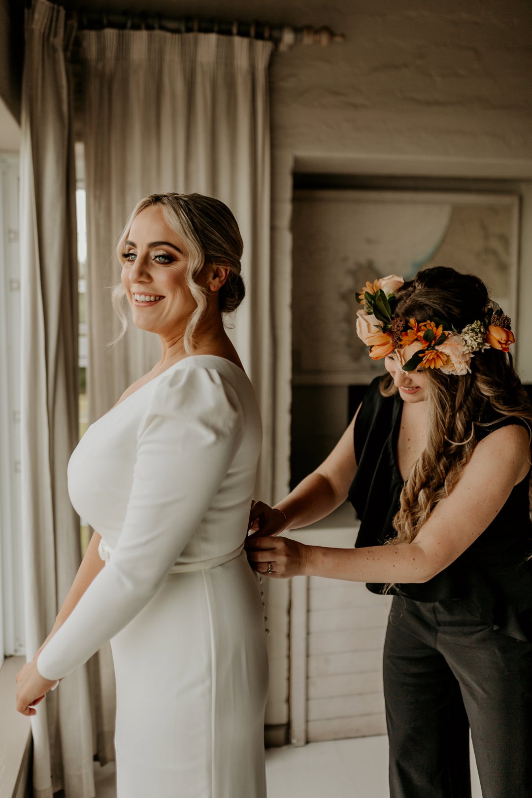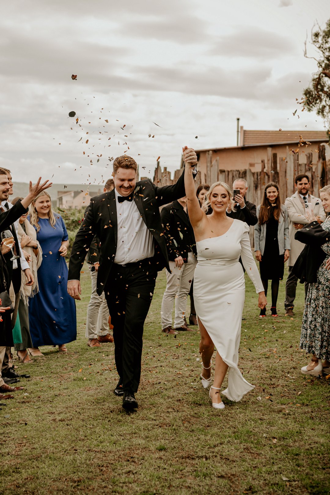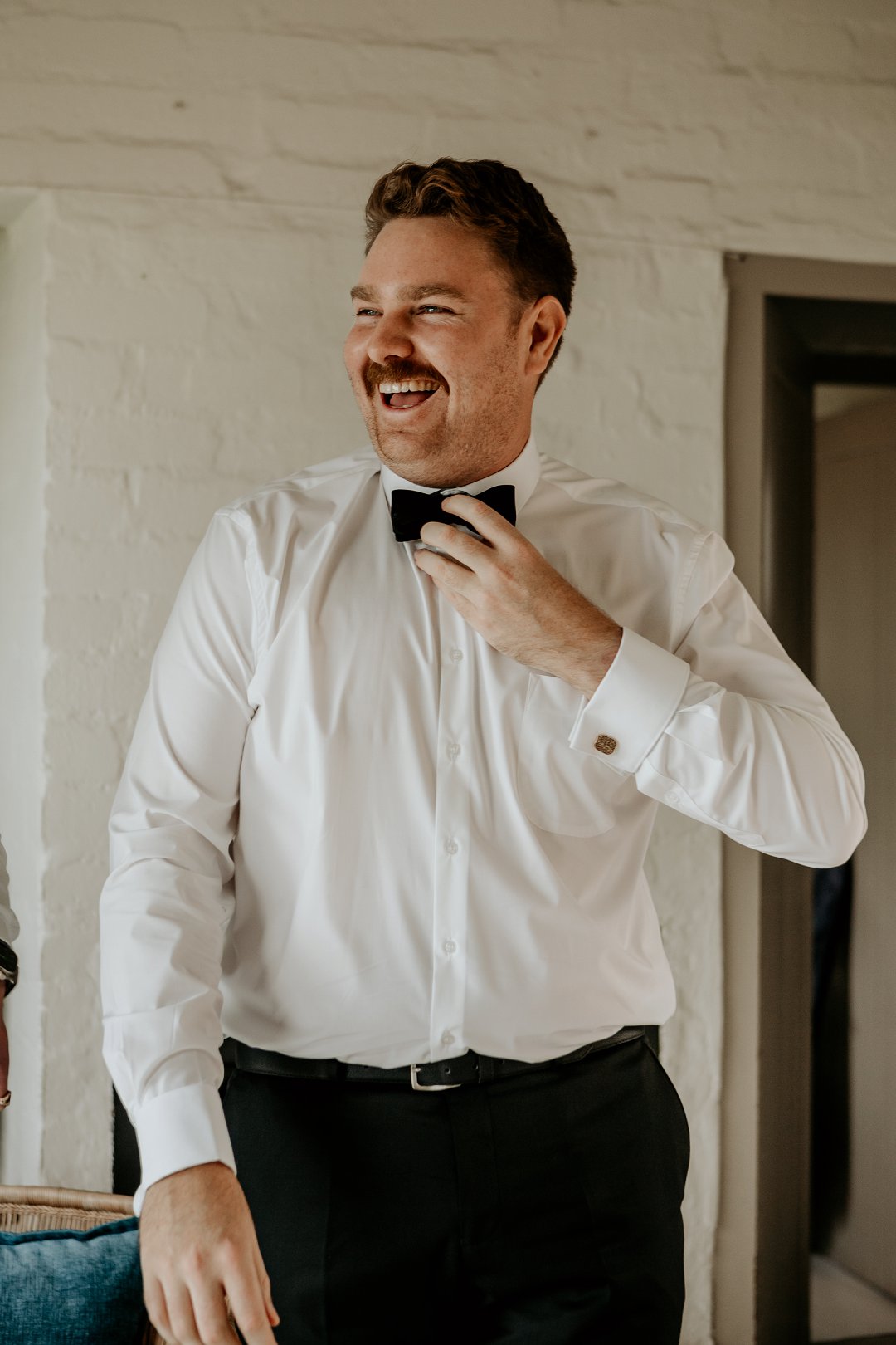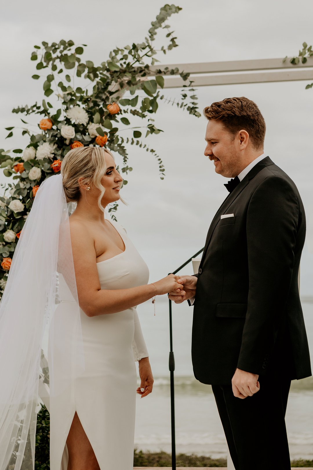 Die weer het perfek saamgespeel, wat ons in staat gestel het om buite op die grasperk voor die see ons seremonie te hou. Dit het ʼn balans geskep tussen die ongerepte natuurlike omgewing en ons intieme troustyl. Ons troue was gemaklik, warm, en vrolik – ʼn naweek vol liefde, lag, en die spesiale mense in ons lewens, alles teen die asemrowende agtergrond van die Weskus strand.