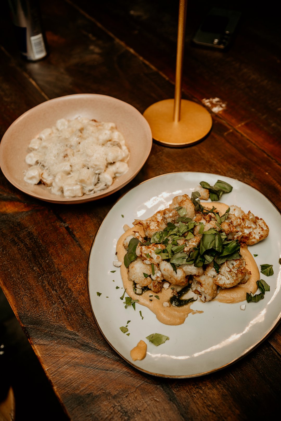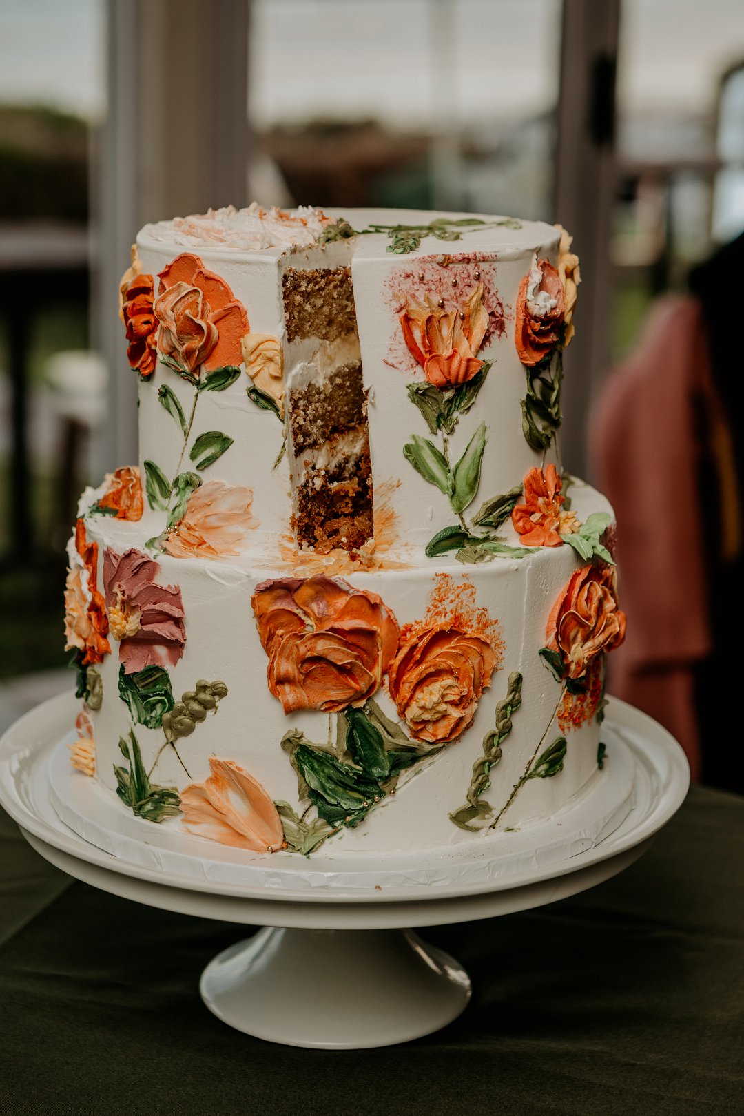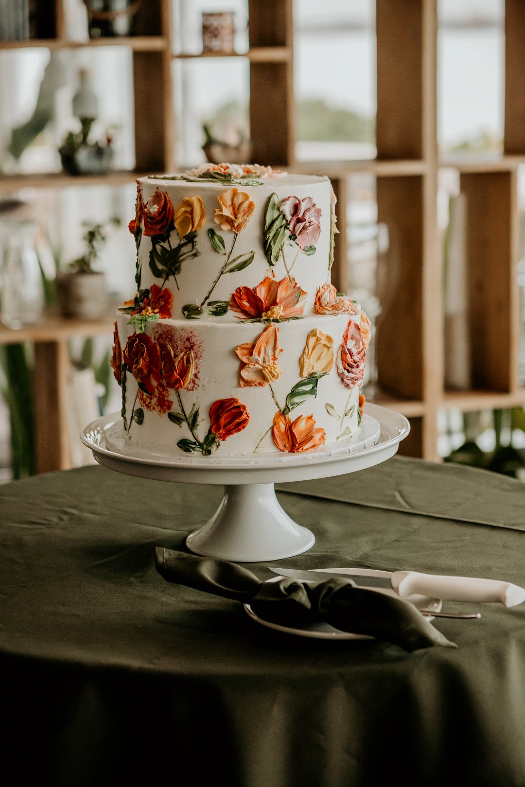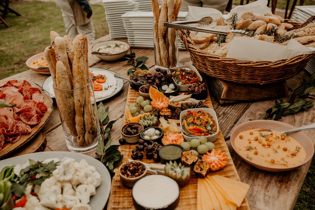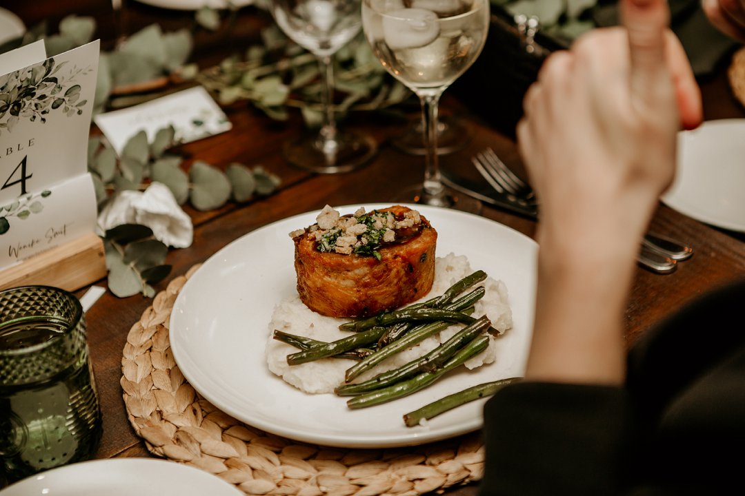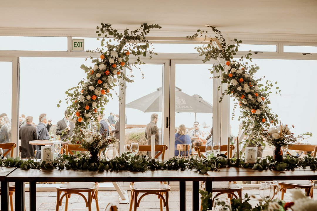 Ons kleurskema was ʼn kombinasie van wit en groen, met ʼn speelse tikkie oranje om ʼn vrolike en helder aksent te bied. Die dekor is eenvoudig gehou om die venue se natuurlike skoonheid te komplementeer. Ons het tafels versier met vars loof, terwyl Carla se ouma liefdevol blomrangskikkings gedoen het vir elke tafel. Olyfgroen waterglase, kershouers, kerse en -lapservette het die gewenste gevoel afgerond, terwyl elke gas ʼn persoonlike skets van hulle as geskenk op hul bord ontvang het.