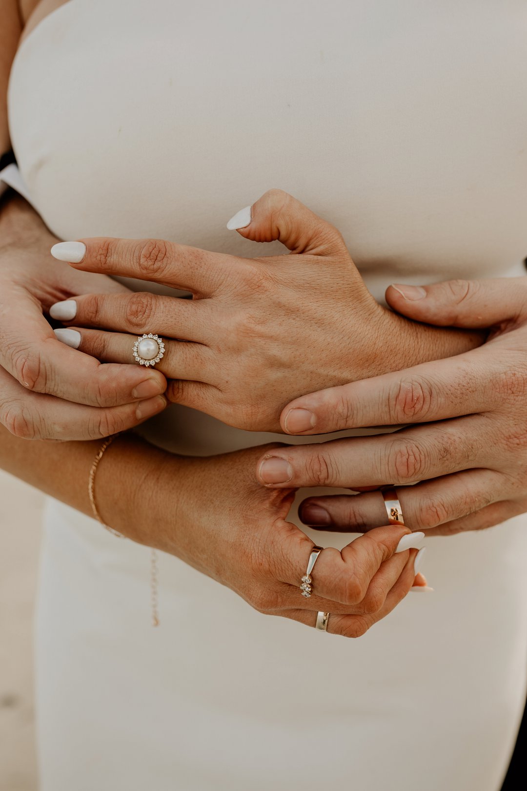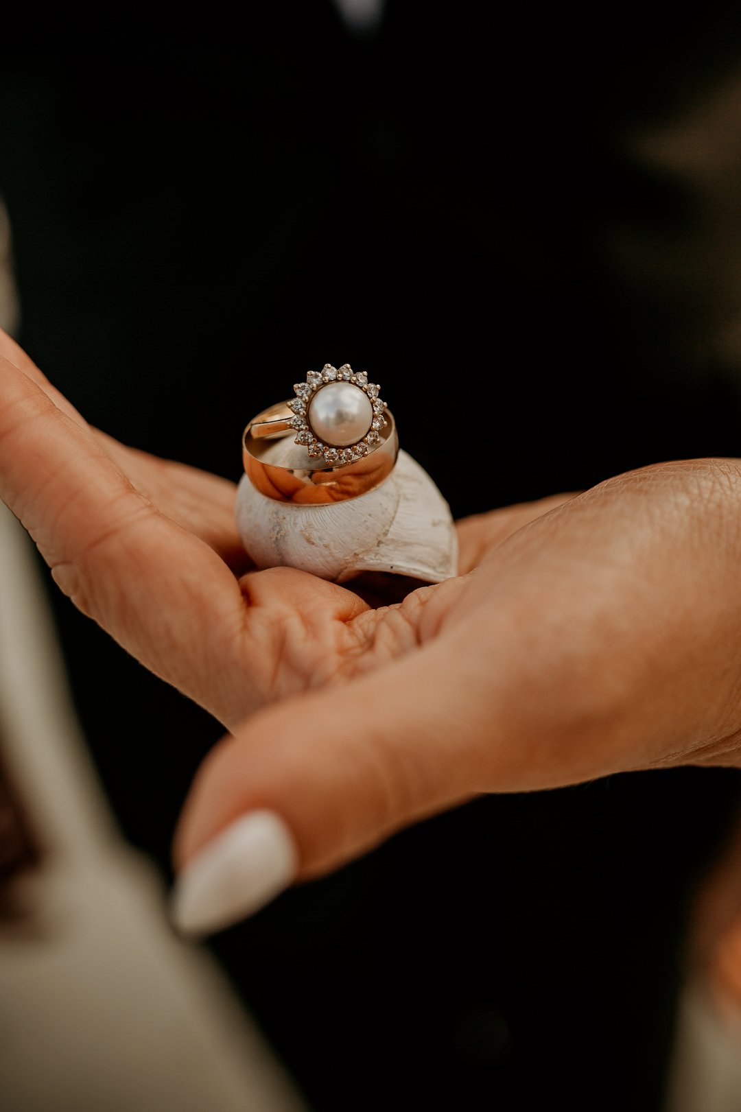 Carla se verloofring is ʼn geelgoud Browns pêrel- en diamantring. Dit is ʼn klassieke en tydlose ontwerp met ʼn pêrel wat omring is deur ronde briljant-geslypte diamantjies. Carla het van kleins af geweet sy soek eendag ʼn pêrel trouring en dink Luke het ʼn uitstekende, unieke keuse gemaak. Luke se geelgoud troupand is soortgelyk aan beide ons pa’s se trouringe en dit was die inspirasie. Die ring herinner ook aan Carla se oupa se ring en is baie kosbaar.