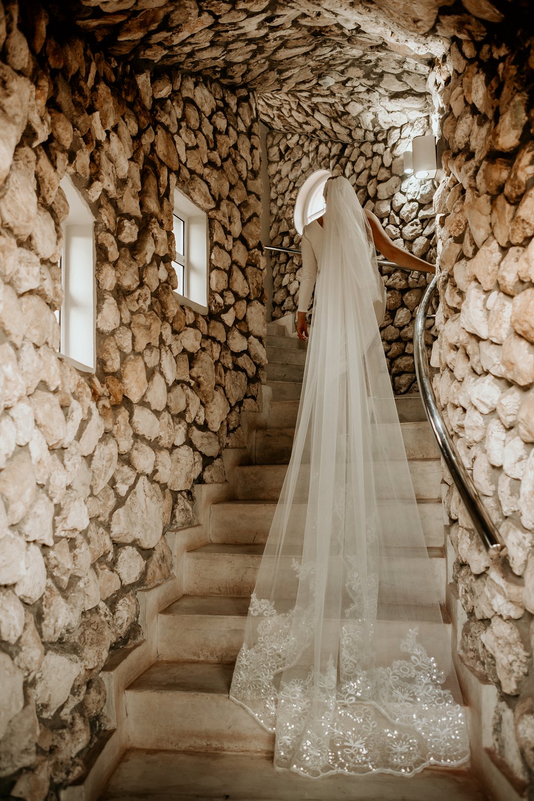 Carla het twee trourokke gehad wat haar styl en persoonlikheid perfek weerspieël het. Die eerste rok, wat sy tydens die seremonie gedra het, was ʼn elegante ontwerp met knope en ʼn fyn beldjie, saam met ʼn dramatiese sluier wat haar voorkoms onvergeetlik gemaak het. Haar tweede rok, wat sy vir die onthaal gedra het, was meer gemaklik maar steeds elegant, sodat sy vrylik kon dans en beweeg. Om hierdie tweede rok uniek te maak, het sy moue laat byvoeg.