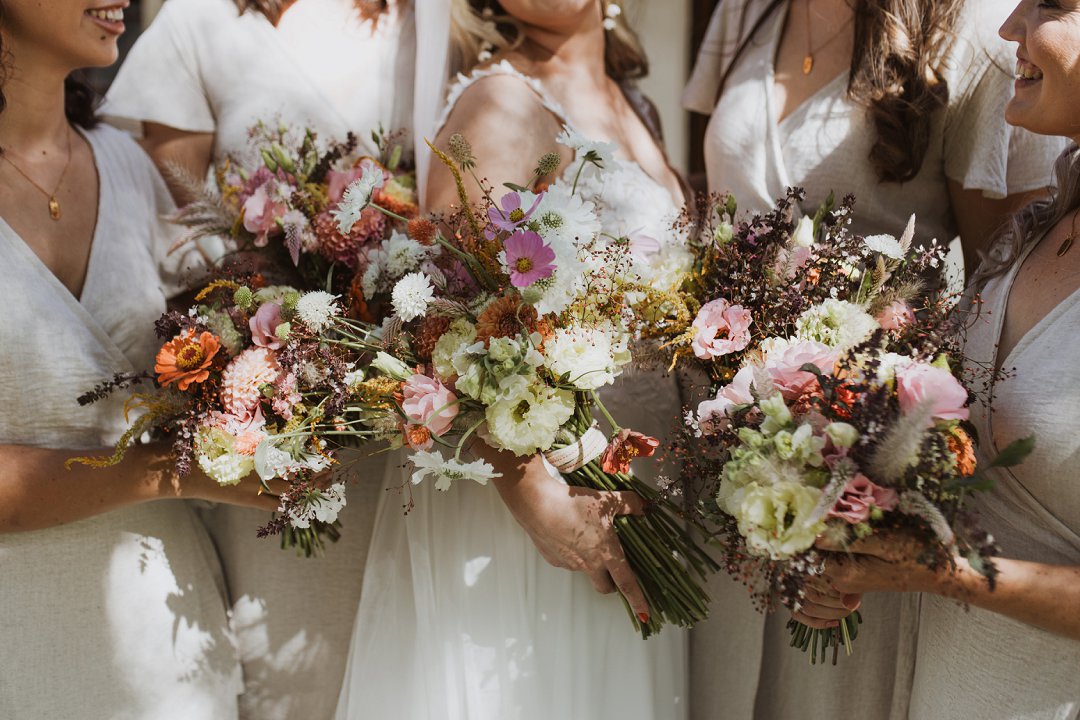 Ons kleurskema het ʼn baie neutrale en natuurlike gevoel gehad, wat perfek by die Karoo se skoonheid pas. Kleure soos bruin, beige, stofpienk en pastelblou het die atmosfeer geverf. Dit het die warm, aardse skakerings van die omgewing aangevul en ʼn rustige, romantiese gevoel geskep. Ons het hierdie kleure gekies omdat dit die eenvoud van die Karoo se landskap weerspieël het, maar tog met ʼn bietjie sagte kleur en warmte.