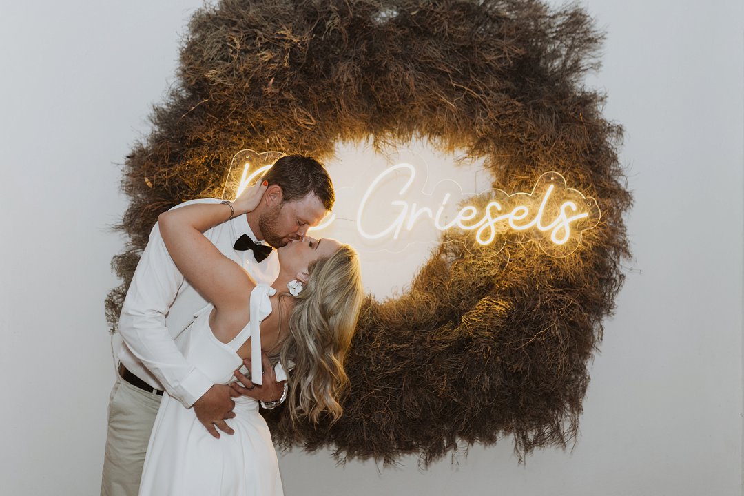 Hierdie paartjie het by die gewilde trouvenue, Sweetfontein naby De Aar, hul troue gevier. Fanie en Caytlin het hul troubeloftes voor ʼn treffende Turksvy-kaktus, so kenmerkend aan die Karoo, uitgeruil. Sweetfontein se venue het ʼn unieke kombinasie van ontblote baksteenmure en houtbalke was ʼn kontras vir ʼn sagte kleurskema van die troudekor. Elegante Karoo-styl blom ontwerpe, liggies en kandelare het ʼn warm, uitnodigende atmosfeer geskep wat die Karoo se sjarme beklemtoon. Elke detail het die paartjie se unieke en onvergeetlike viering van liefde ten toon gestel.