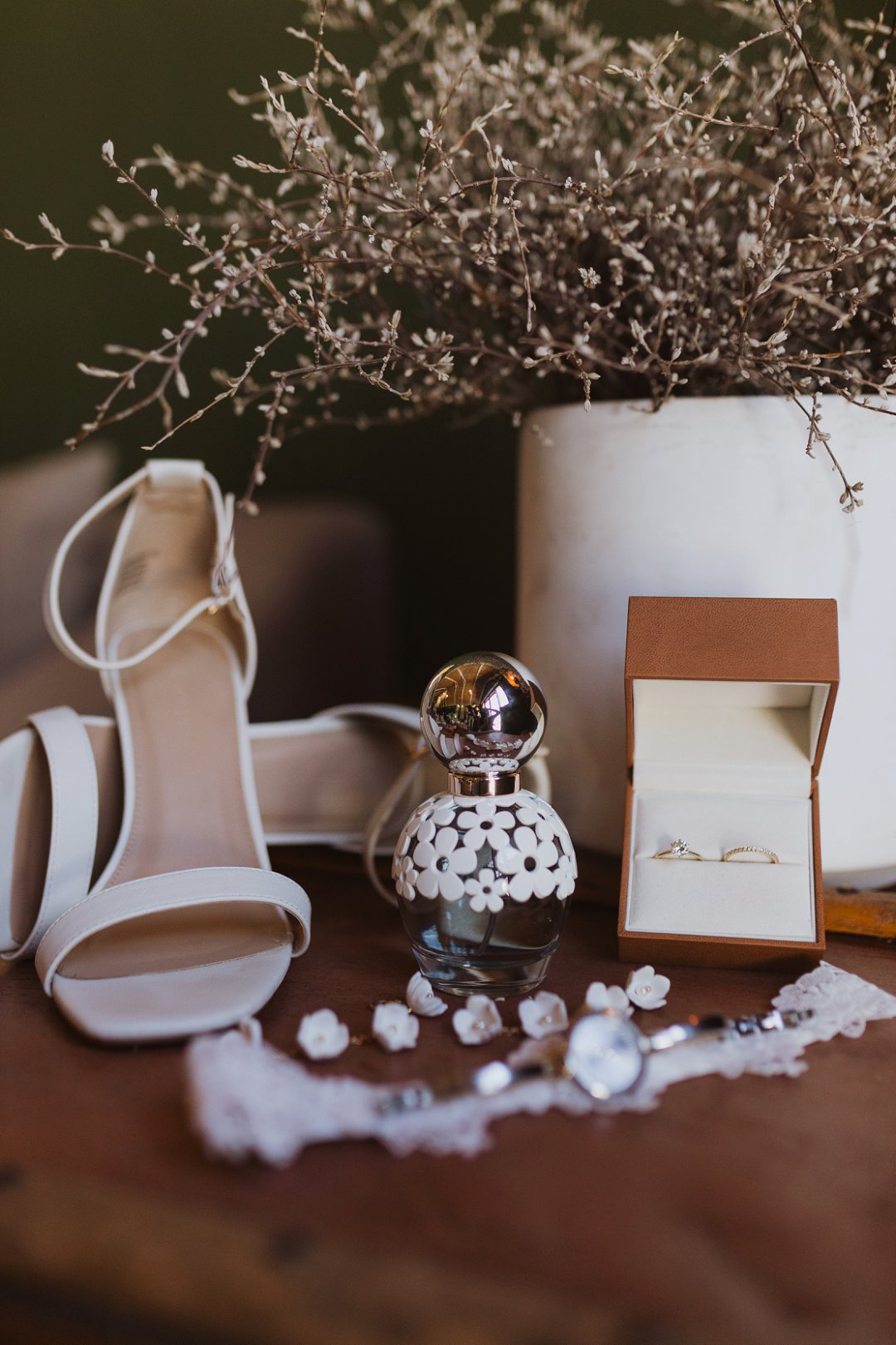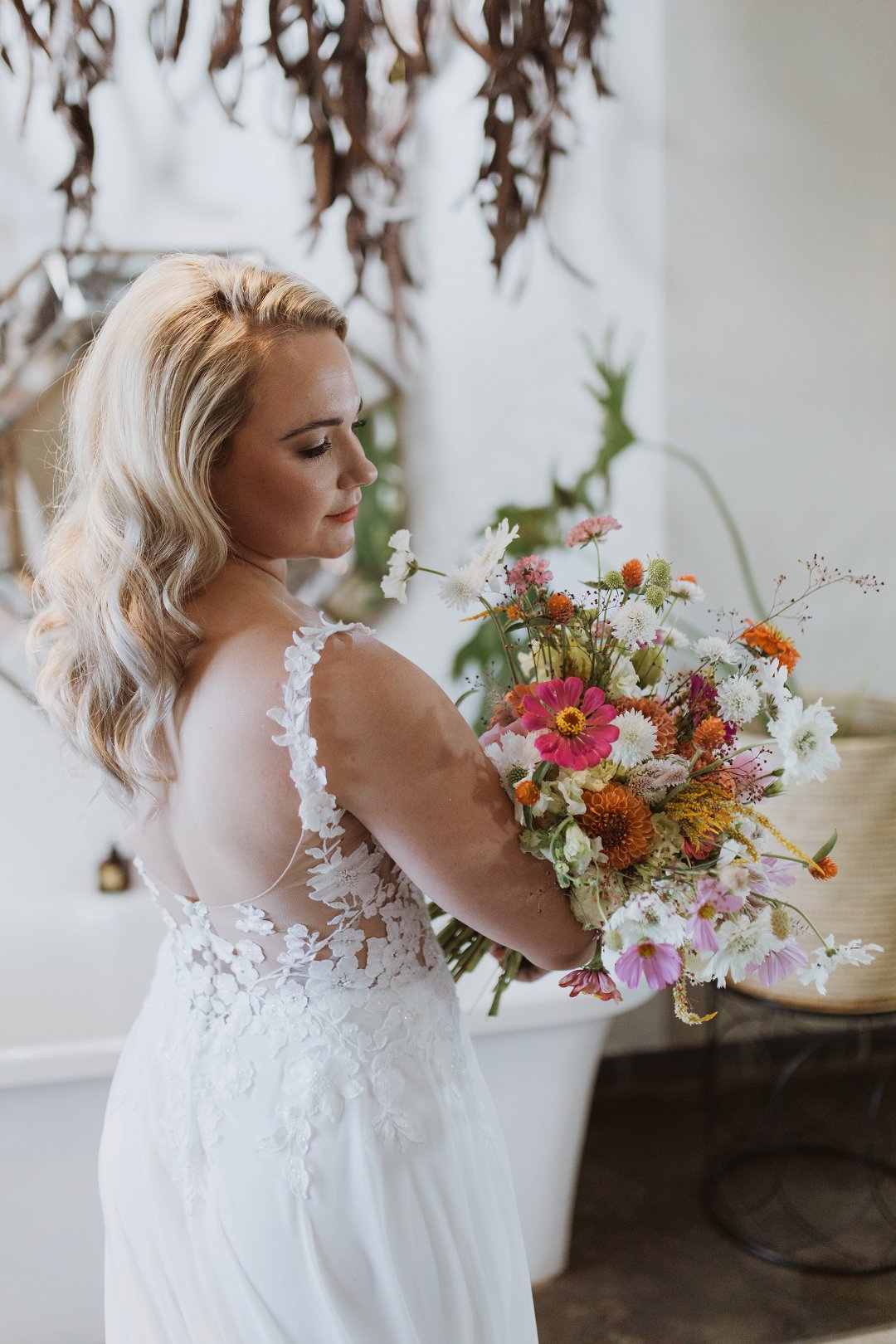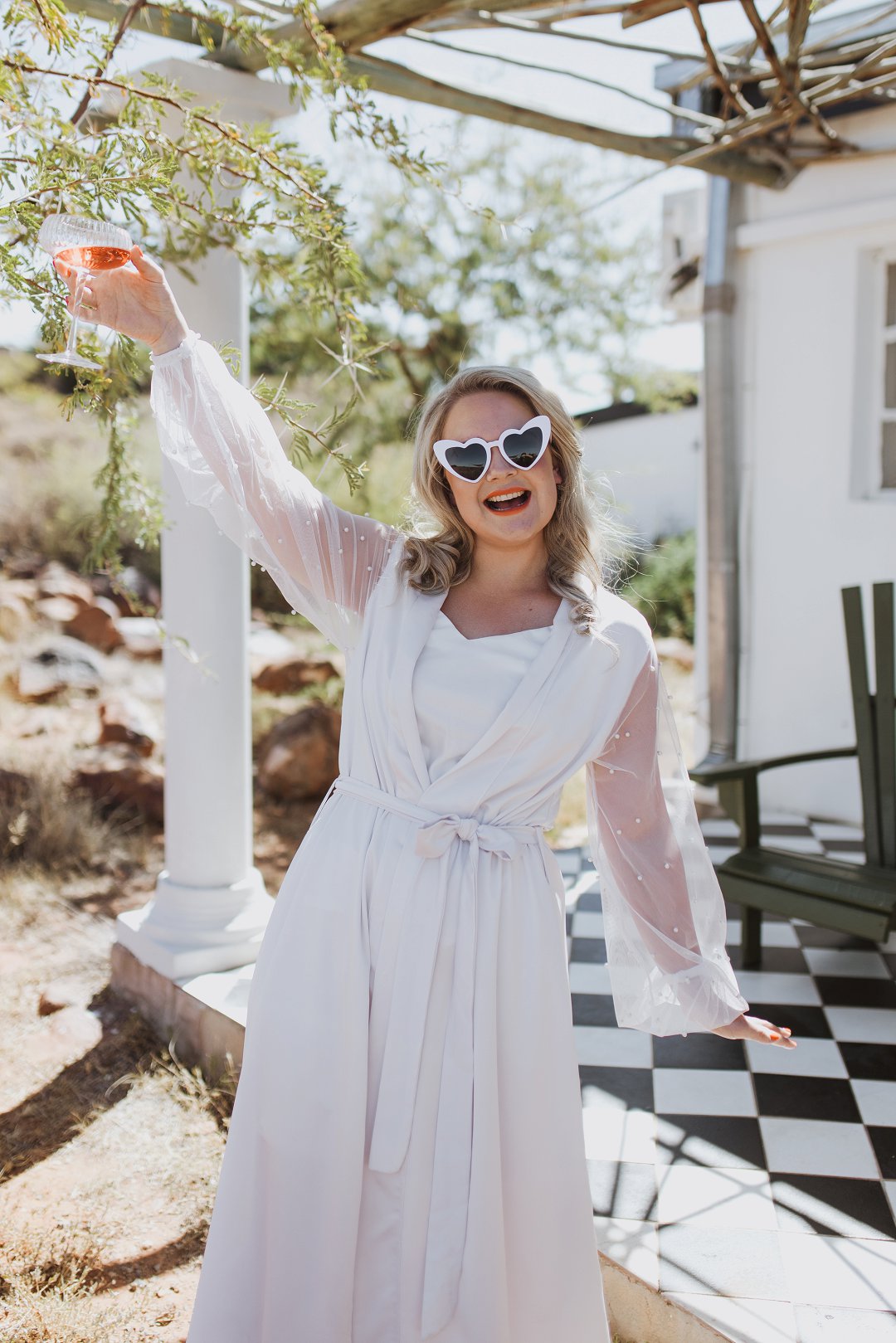 Ons kleurskema het ʼn baie neutrale en natuurlike gevoel gehad, wat perfek by die Karoo se skoonheid pas. Kleure soos bruin, beige, stofpienk en pastelblou het die atmosfeer geverf. Dit het die warm, aardse skakerings van die omgewing aangevul en ʼn rustige, romantiese gevoel geskep. Ons het hierdie kleure gekies omdat dit die eenvoud van die Karoo se landskap weerspieël het, maar tog met ʼn bietjie sagte kleur en warmte.