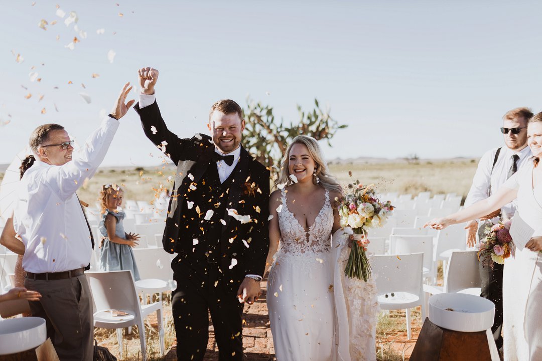 Ons wou die troue in die Karoo hou omdat ons familie en vriende van die plaas af kom en ʼn groot liefde vir die streek het. Fanie is self ʼn boer, en dit was vir ons baie spesiaal om die dag in daardie omgewing te vier. Dit het gevoel asof ons iets van onsself en ons wortels in die troue vasgelê het.