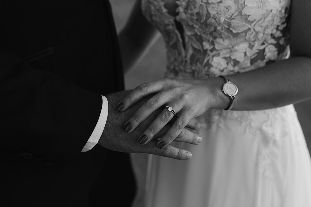 Fanie se trouring weerspieël eenvoud en simboliek. Dit is van platinum gemaak, ʼn metaal wat bekend is vir sy duursaamheid en suiwerheid. Binne die ring is Caitlyn se naam gegraveer, saam met Psalm 23 – ʼn herinnering aan hul geloof en die pad wat hulle saam aanpak.