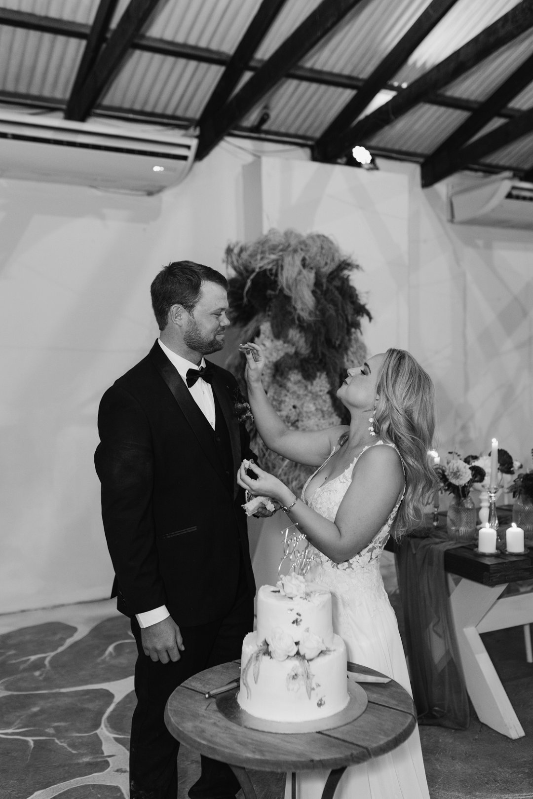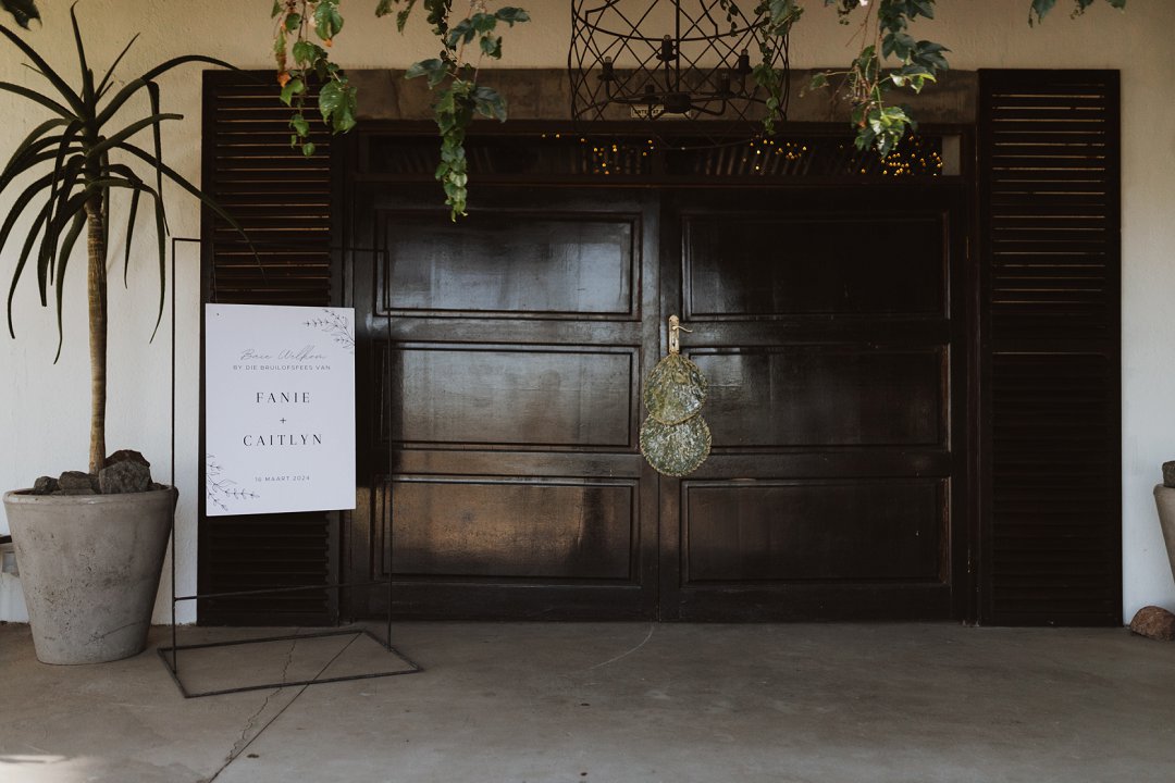 Hierdie paartjie het by die gewilde trouvenue, Sweetfontein naby De Aar, hul troue gevier. Fanie en Caytlin het hul troubeloftes voor ʼn treffende Turksvy-kaktus, so kenmerkend aan die Karoo, uitgeruil. Sweetfontein se venue het ʼn unieke kombinasie van ontblote baksteenmure en houtbalke was ʼn kontras vir ʼn sagte kleurskema van die troudekor. Elegante Karoo-styl blom ontwerpe, liggies en kandelare het ʼn warm, uitnodigende atmosfeer geskep wat die Karoo se sjarme beklemtoon. Elke detail het die paartjie se unieke en onvergeetlike viering van liefde ten toon gestel.