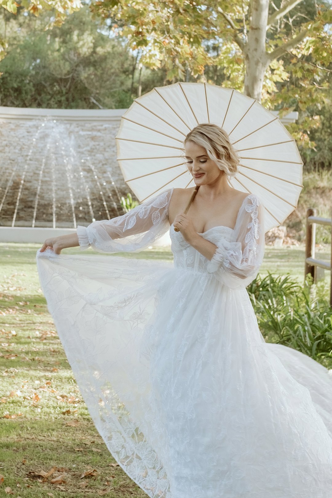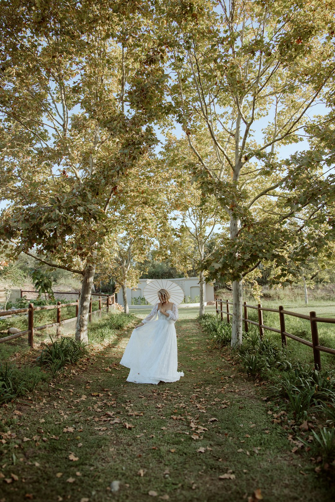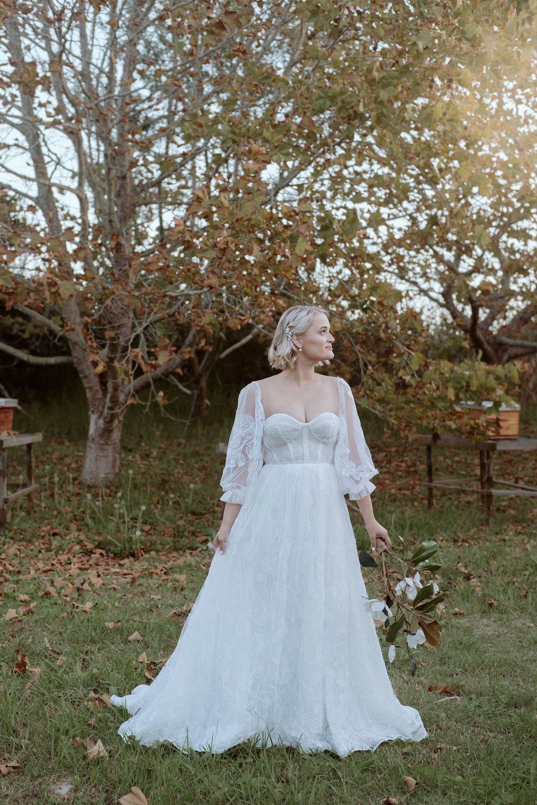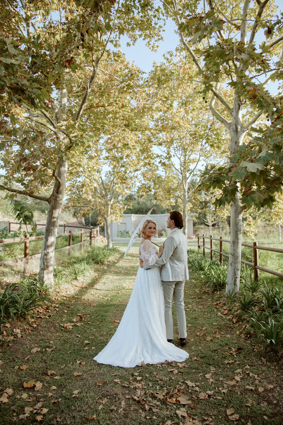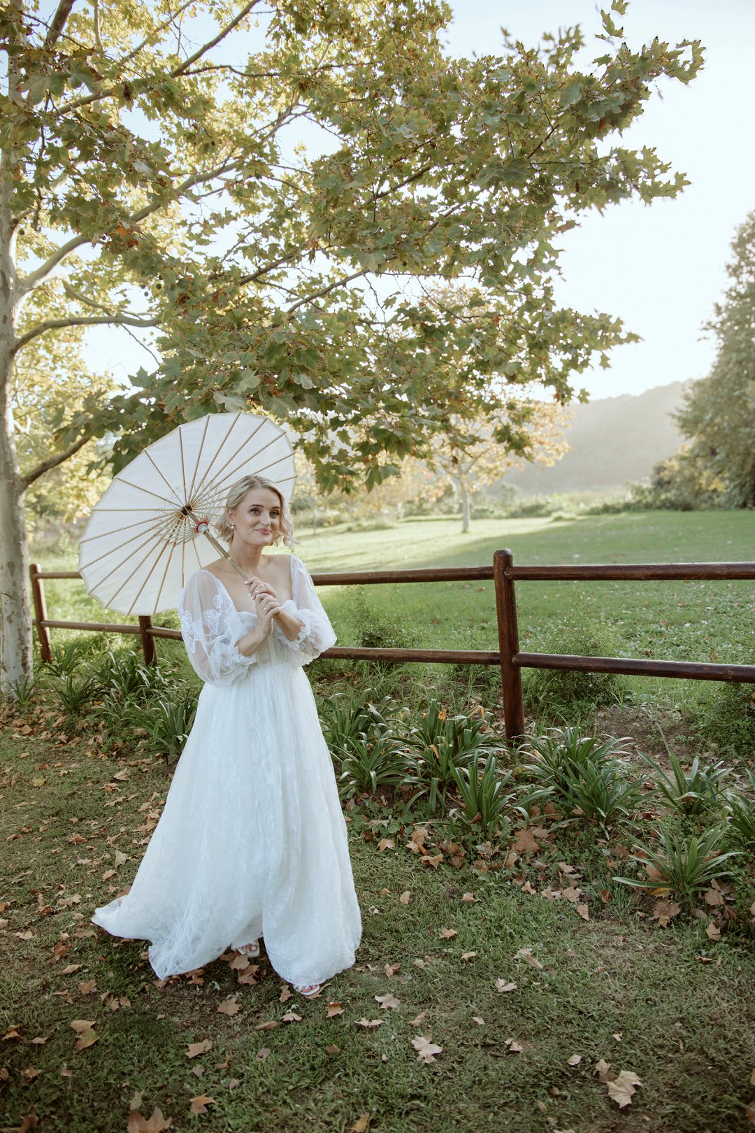 Ons model, Jessica, het haar eie trourok gedra. Dit het perfek by die herfs-tema ingepas. Die ontwerp het haar natuurlik en moeiteloos in die omgewing laat smelt.