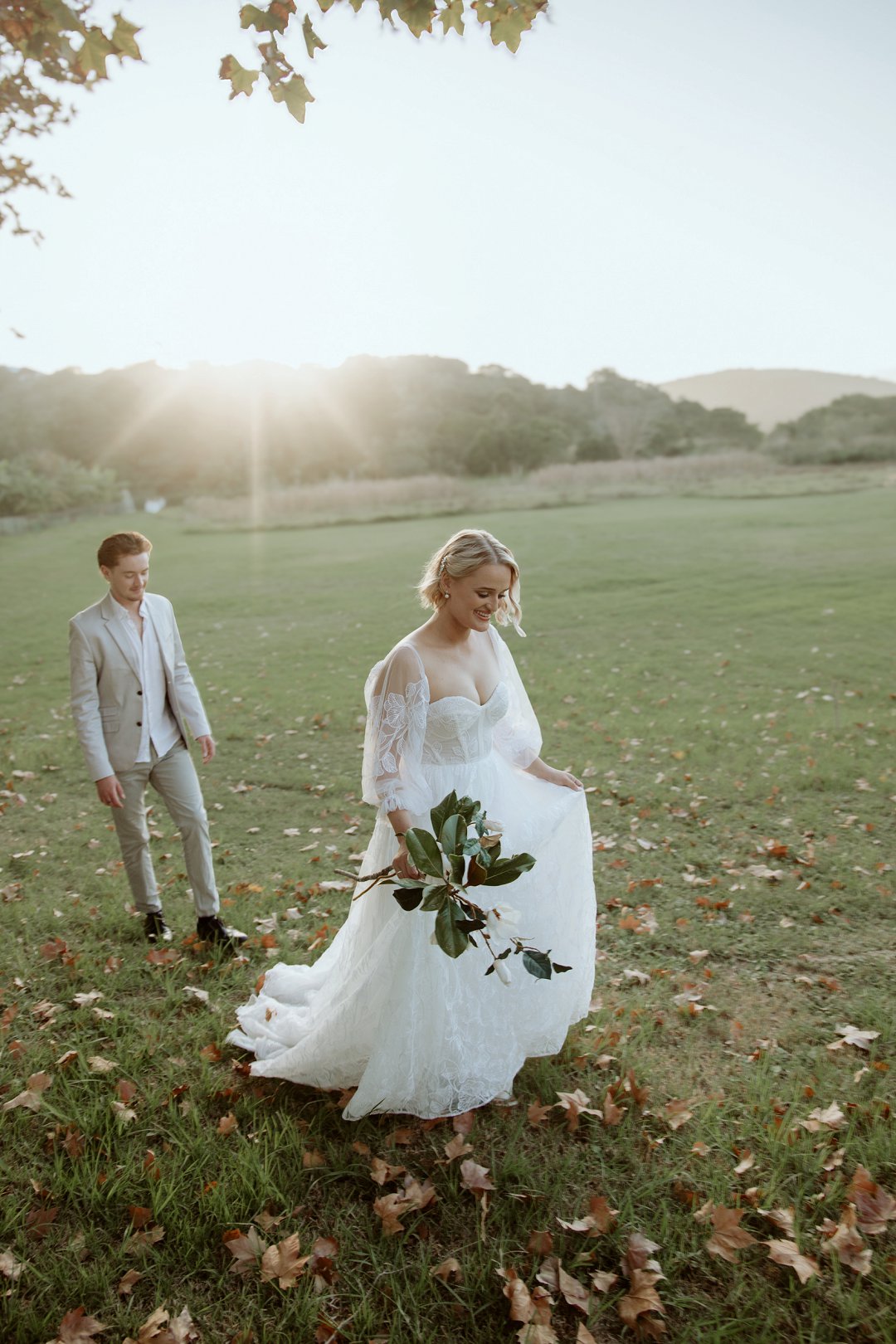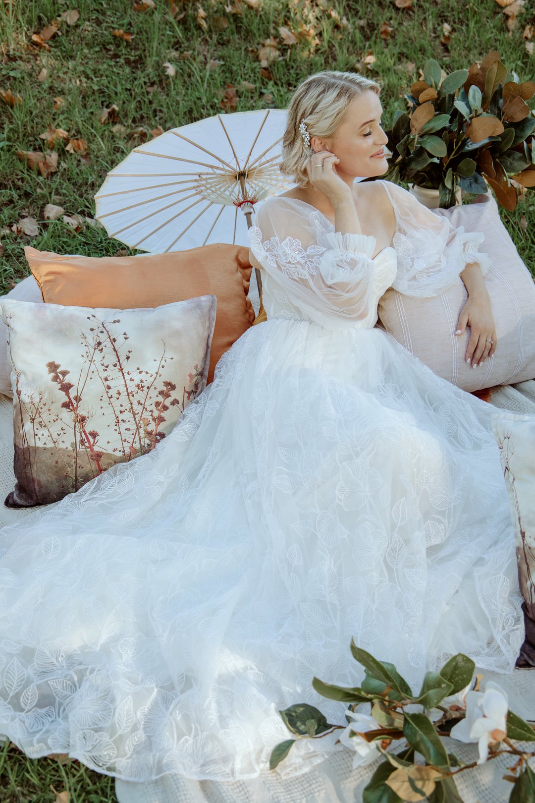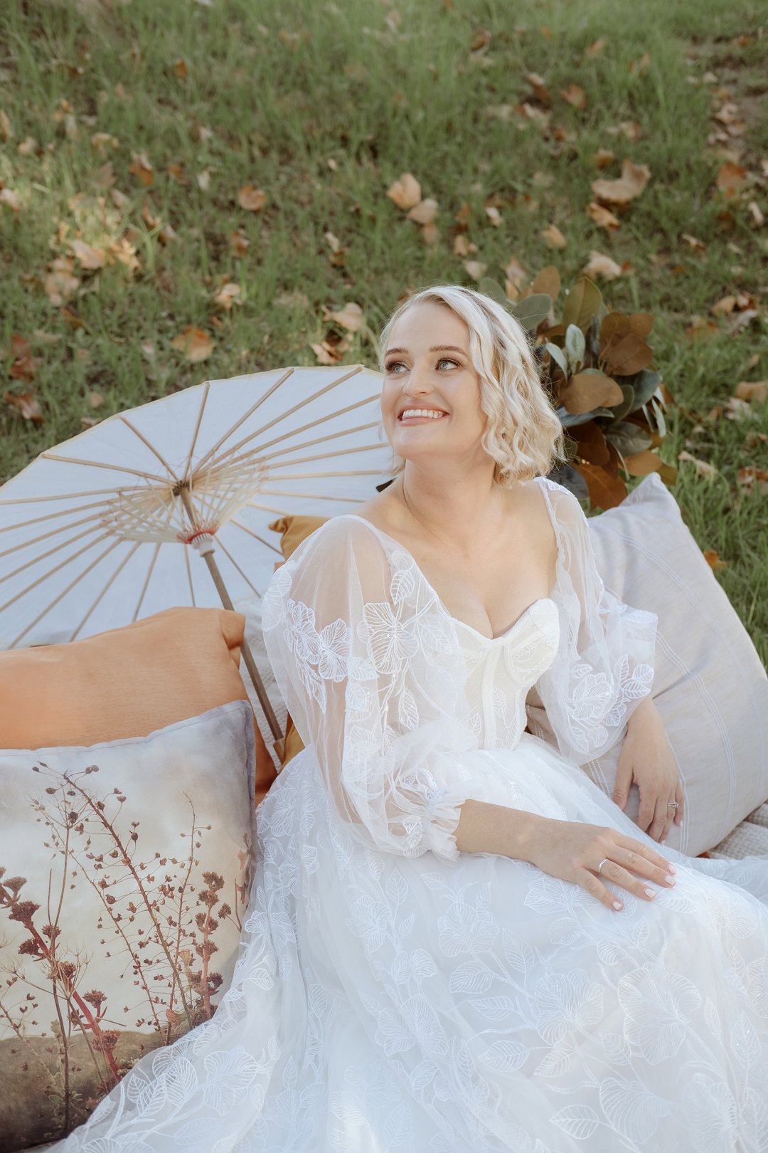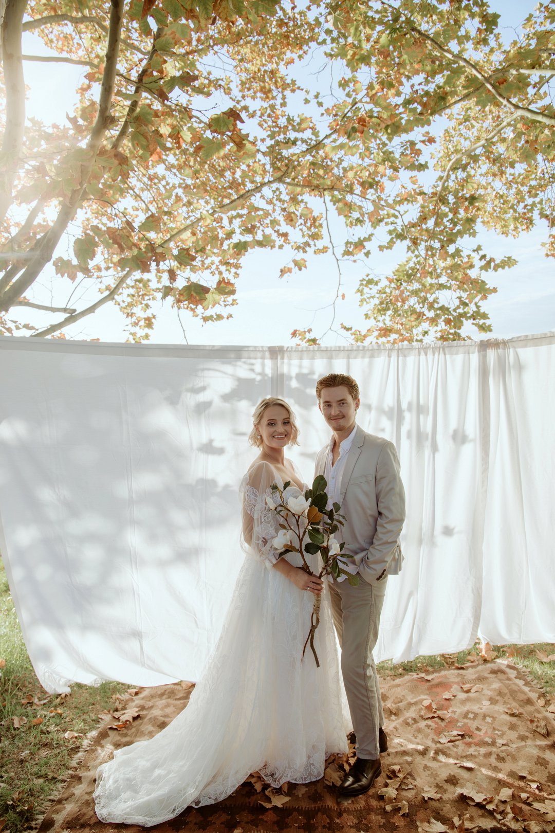 Ons model, Jessica, het haar eie trourok gedra. Dit het perfek by die herfs-tema ingepas. Die ontwerp het haar natuurlik en moeiteloos in die omgewing laat smelt.