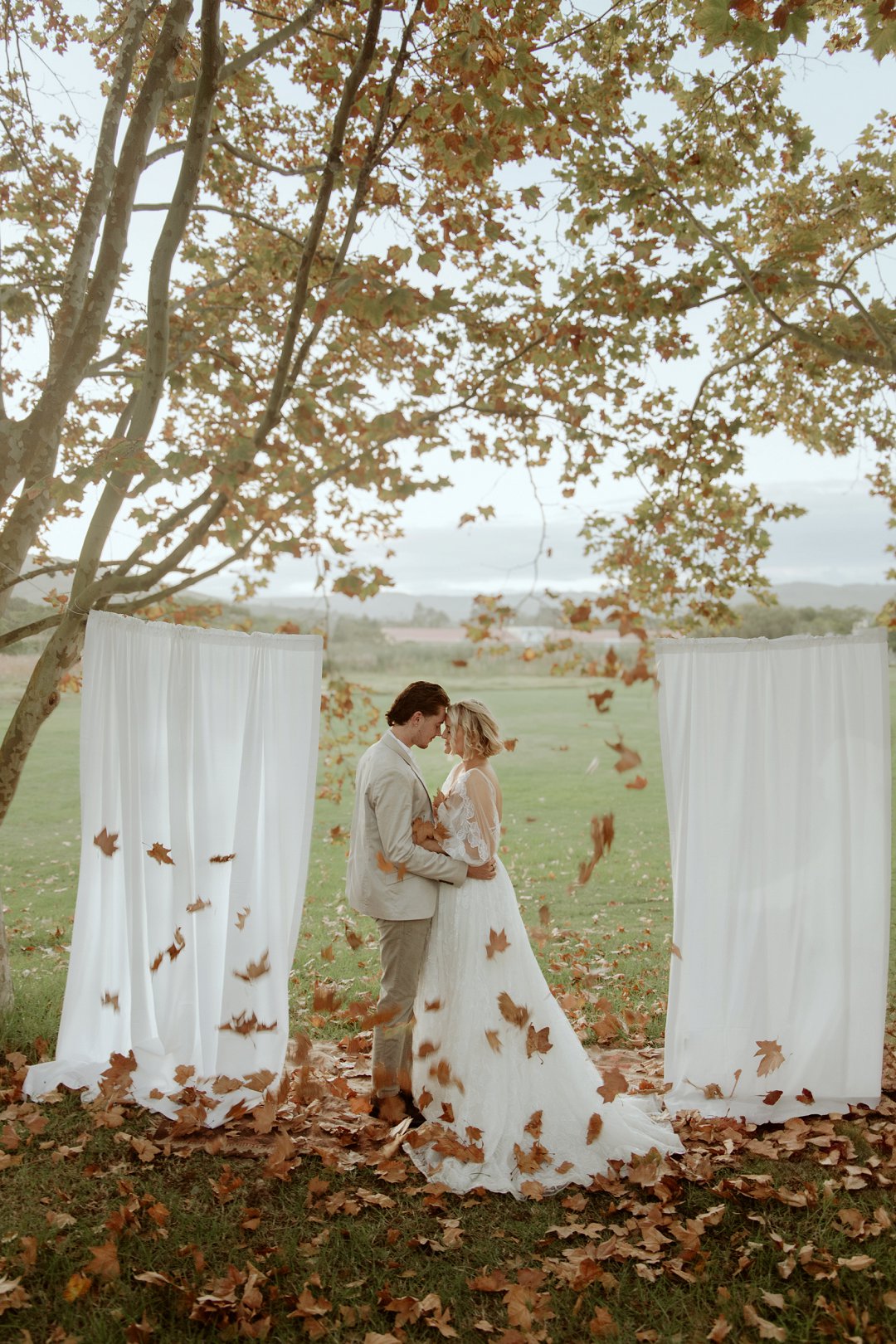 Herfs is een van die mooiste seisoene. Die warm kleure van die natuur vorm ’n romantiese agtergrond vir enige spesiale dag. In Suid-Afrika bly die weer in herfs sag en aangenaam. Dit maak dit ideaal vir ’n buitelug troue tussen die bome en blare.