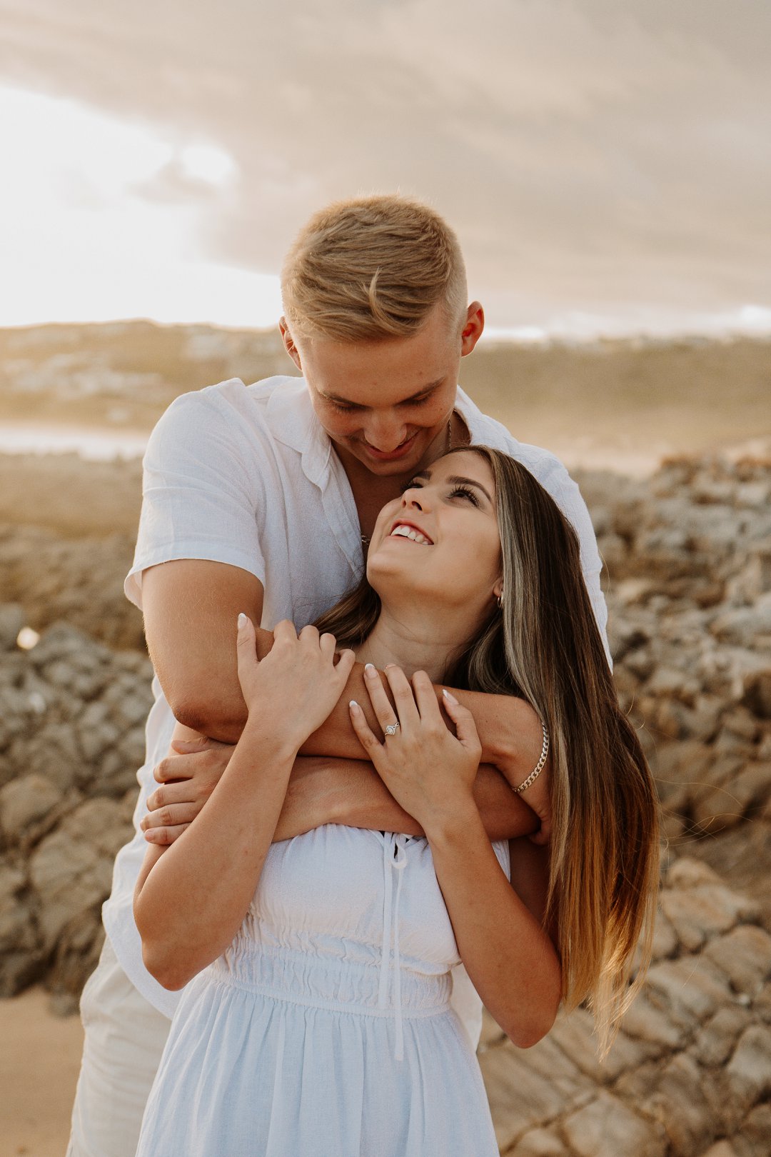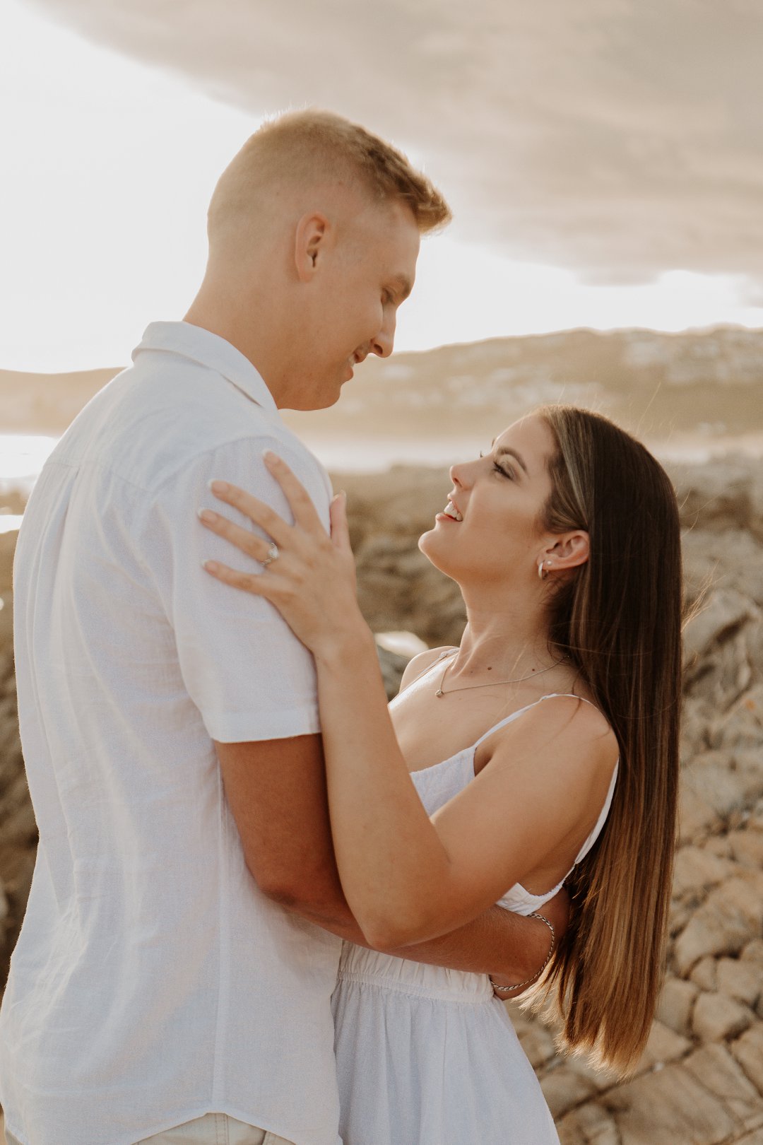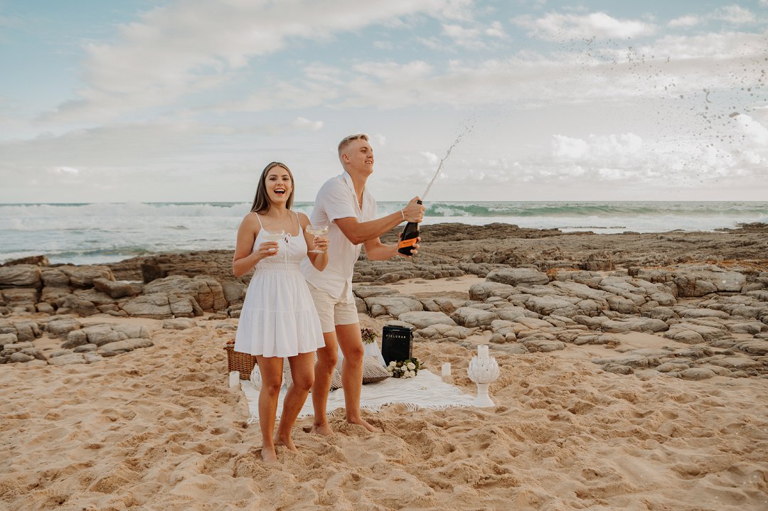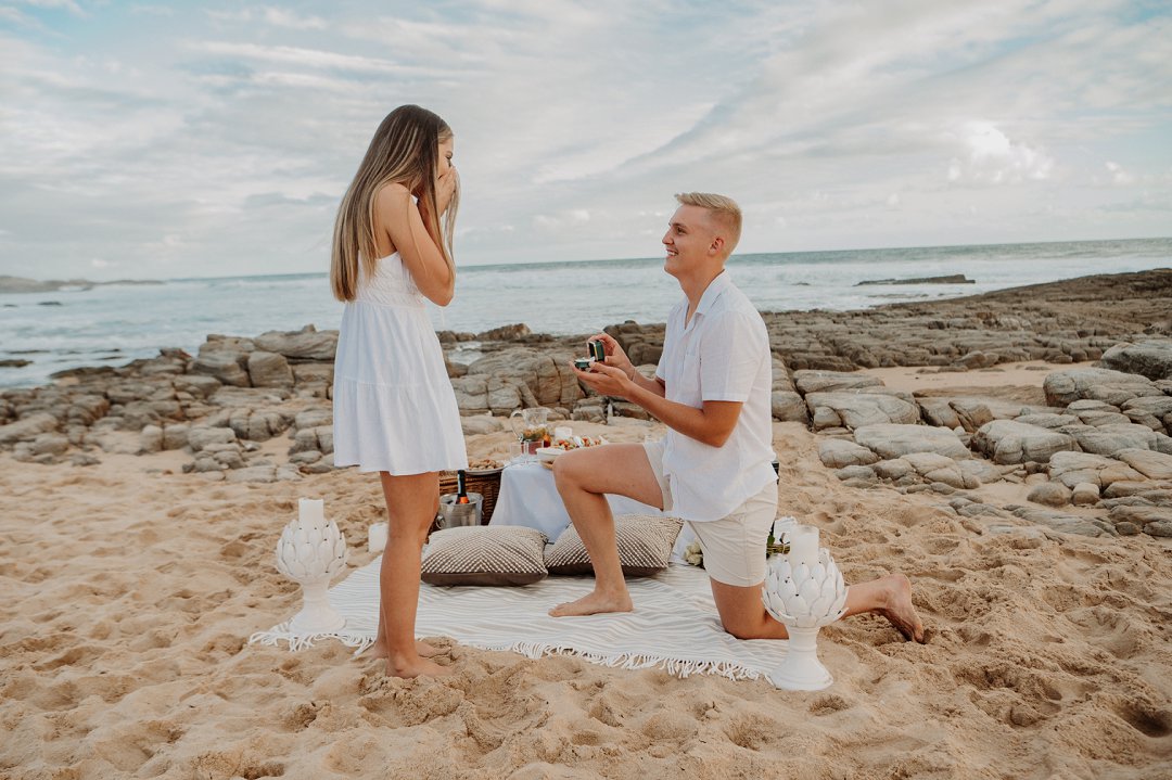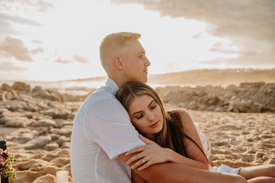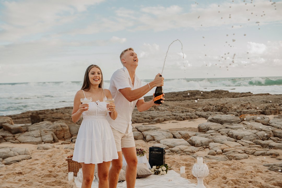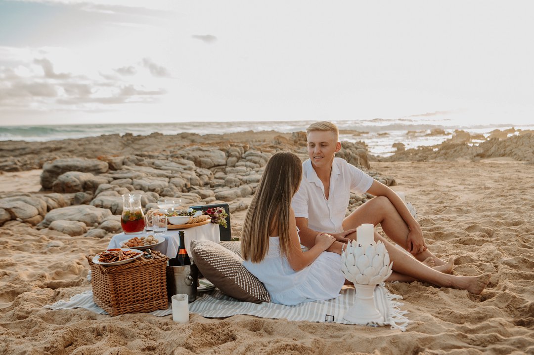 Aanvanklik was dit net bedoel as ān gewone paartjie fotosessie vir ān paar mooi foto’s. Maar toe verander alles ā die sessie het in ān intieme piekniek ontaard wat uiteindelik hul spesiale verlowing geword het. Die verlowing was vir Chazelle ān totale verrassing. Sy het gedink hulle gaan net ān strand piekniek hou, saam met ān fotosessie. Tot Jovan onverwags op een knie sak en haar die groot vraag vra… Wow! Wat ān ongelooflike plek en oomblik vir só ān belangrike geleentheid.