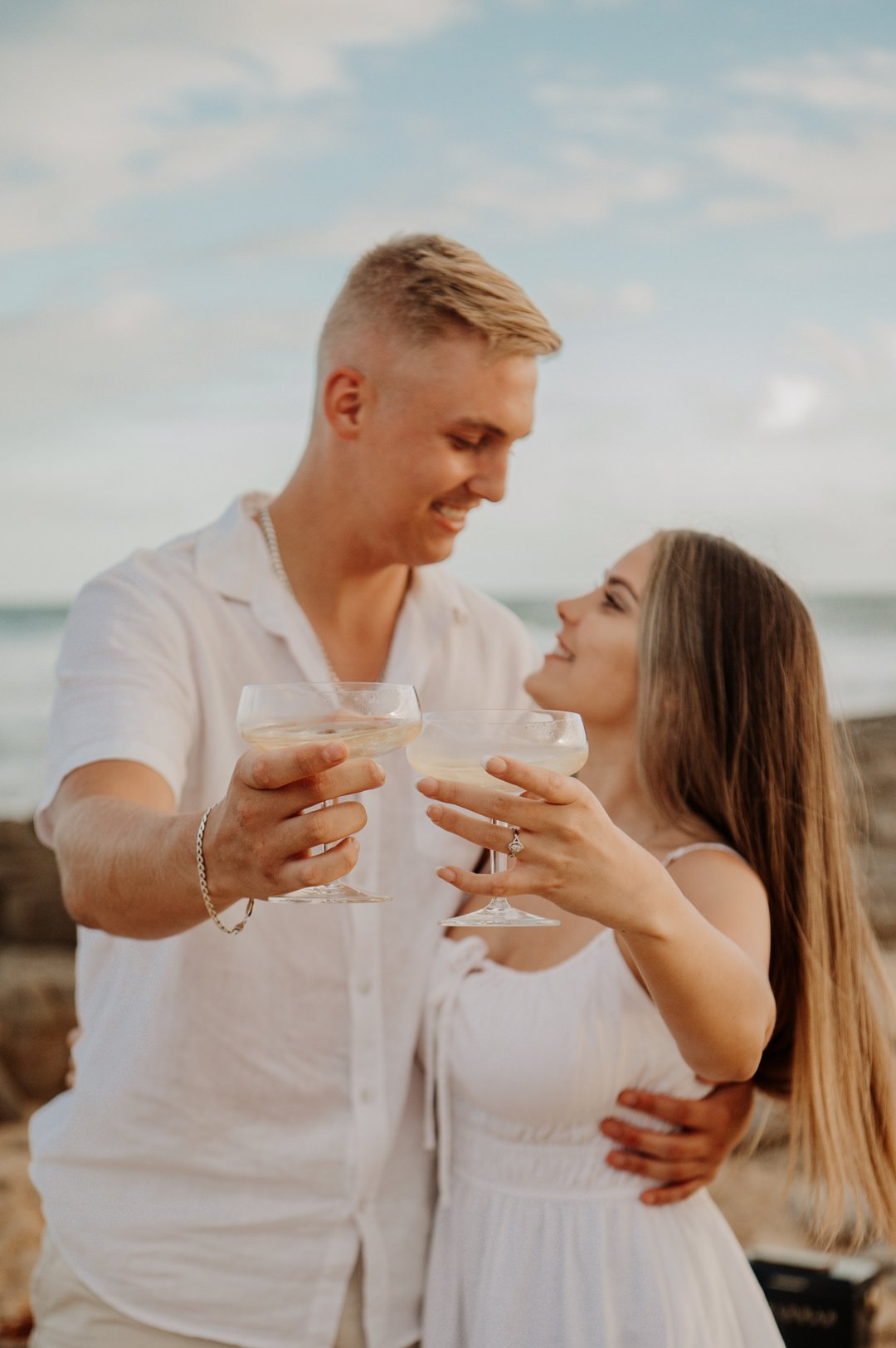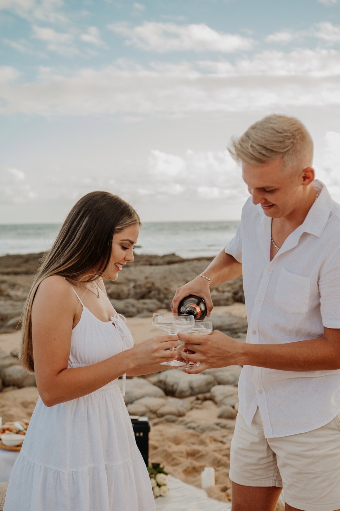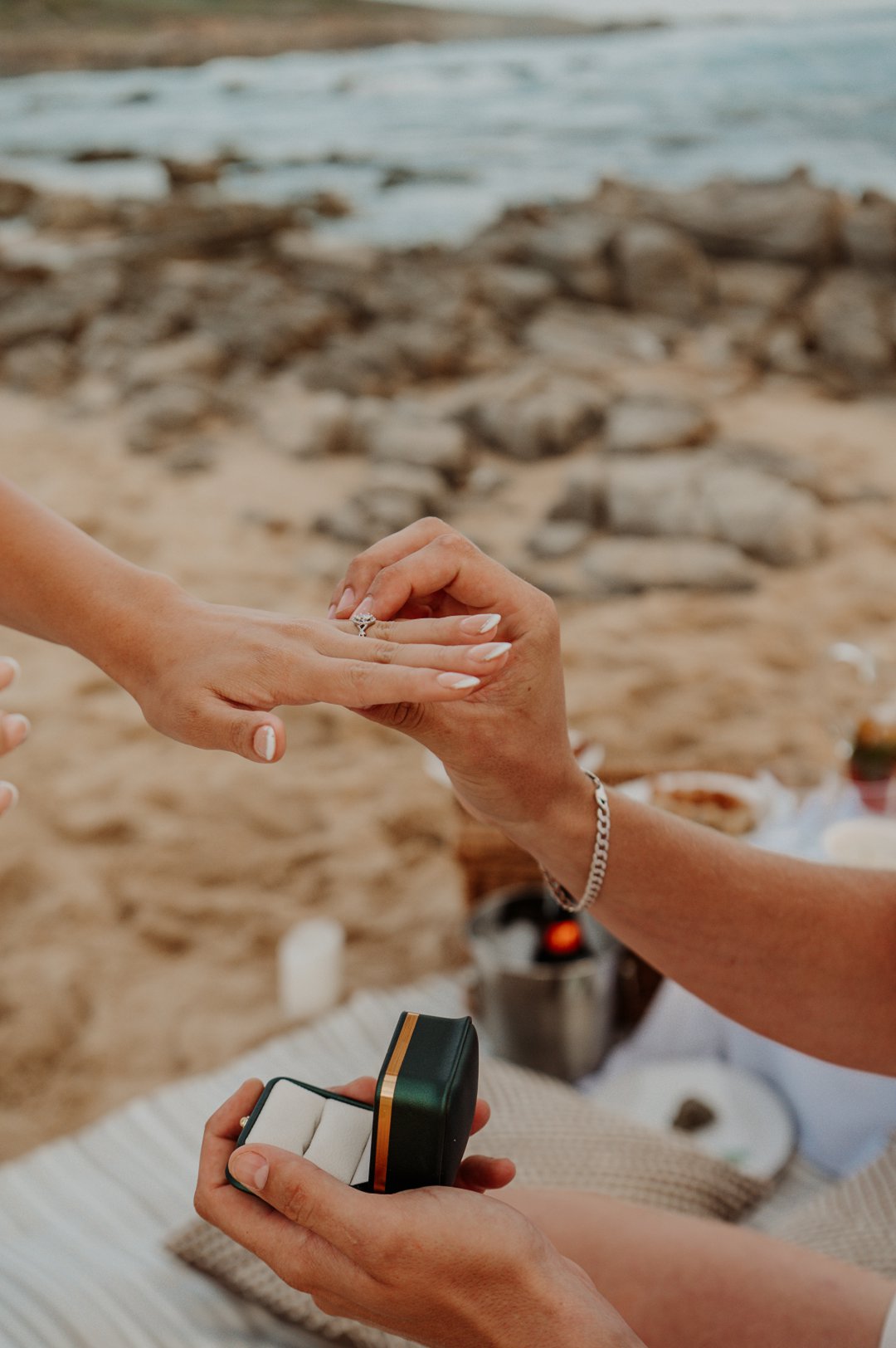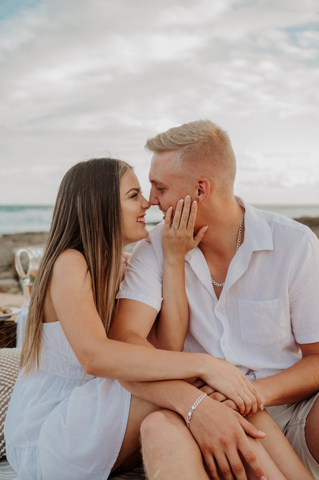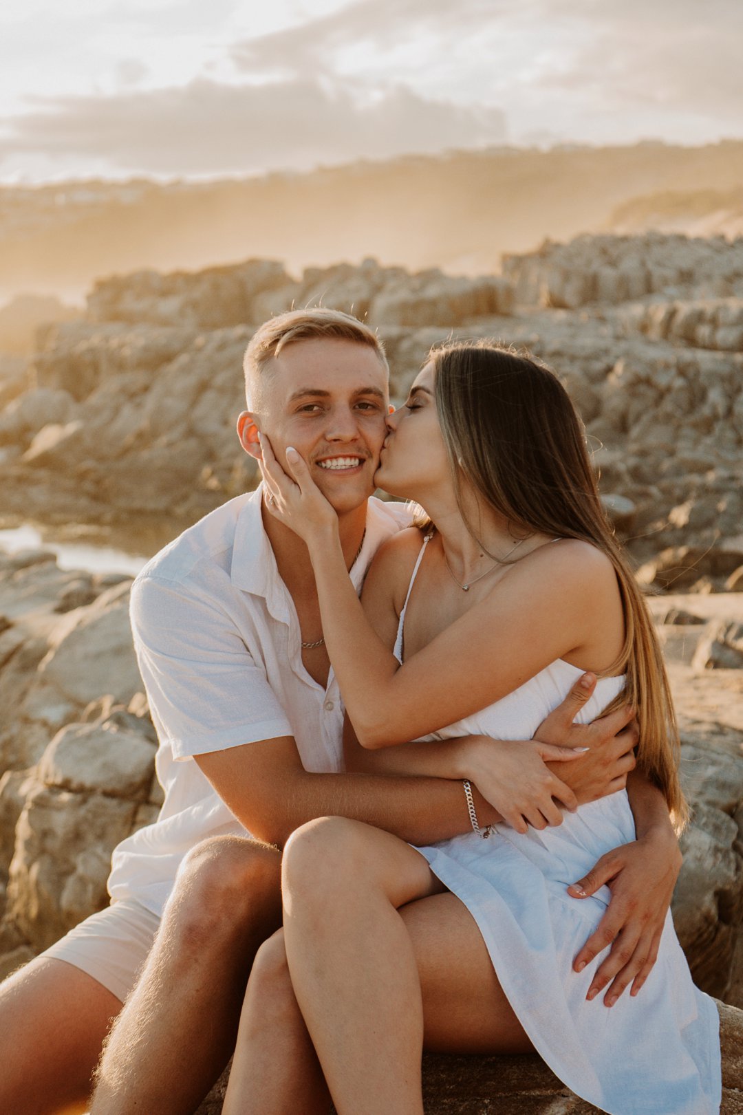 Aanvanklik was dit net bedoel as ān gewone paartjie fotosessie vir ān paar mooi foto’s. Maar toe verander alles ā die sessie het in ān intieme piekniek ontaard wat uiteindelik hul spesiale verlowing geword het. Die verlowing was vir Chazelle ān totale verrassing. Sy het gedink hulle gaan net ān strand piekniek hou, saam met ān fotosessie. Tot Jovan onverwags op een knie sak en haar die groot vraag vra… Wow! Wat ān ongelooflike plek en oomblik vir só ān belangrike geleentheid.