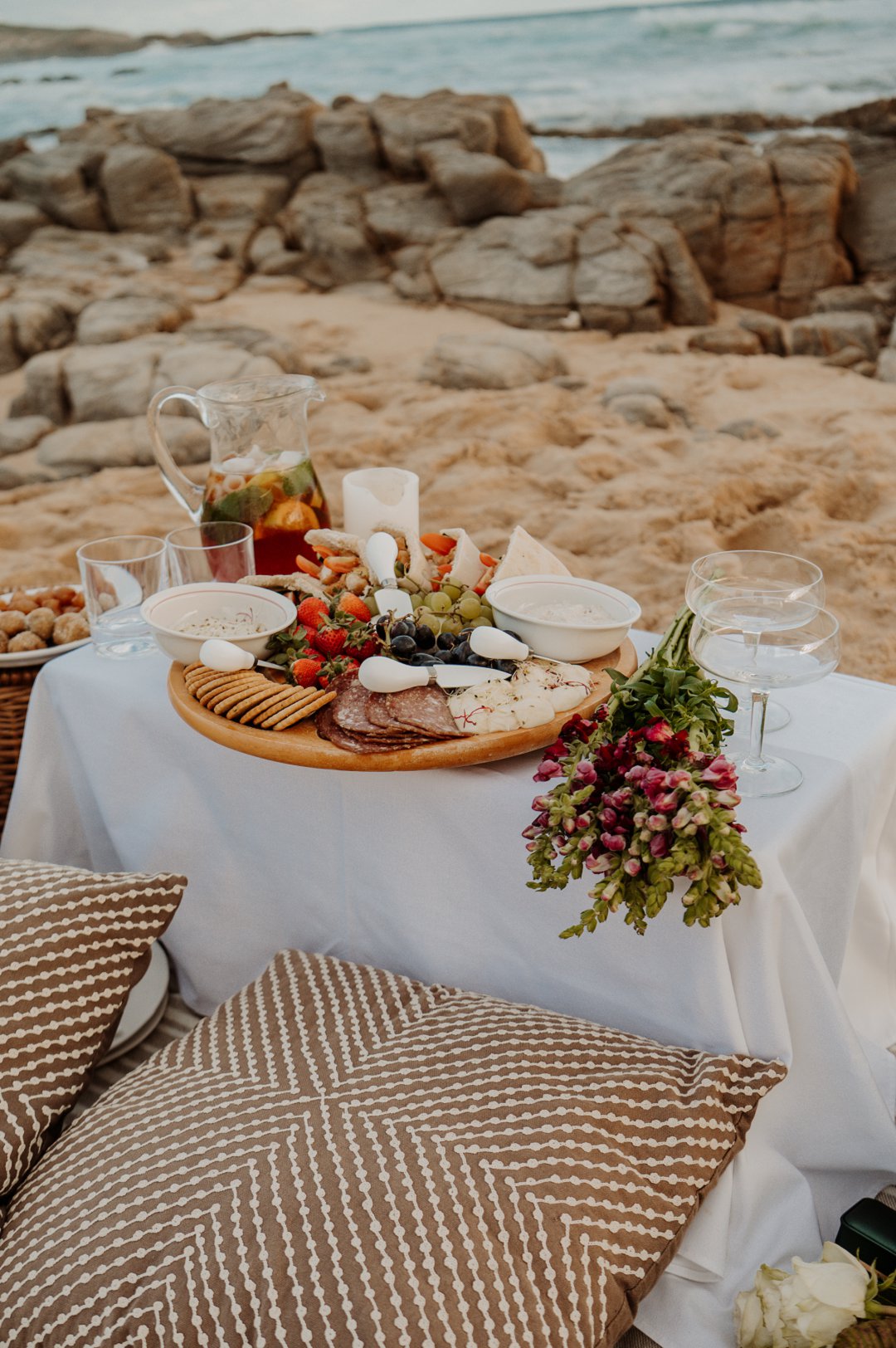 Hulle ligte, neutrale uitrustings het ook ān groot bydrae gelewer tot die sukses van die sessie. Dis altyd belangrik om stylvol aan te trek vir ān fotosessie ā jy weet nooit watter spesiale oomblikke dalk vasgevang gaan word nie! Chazelle se wit rokkie en Jovan se ligte kleredrag het perfek by die strand-tema Ć©n die dekor van die piekniek gepas.