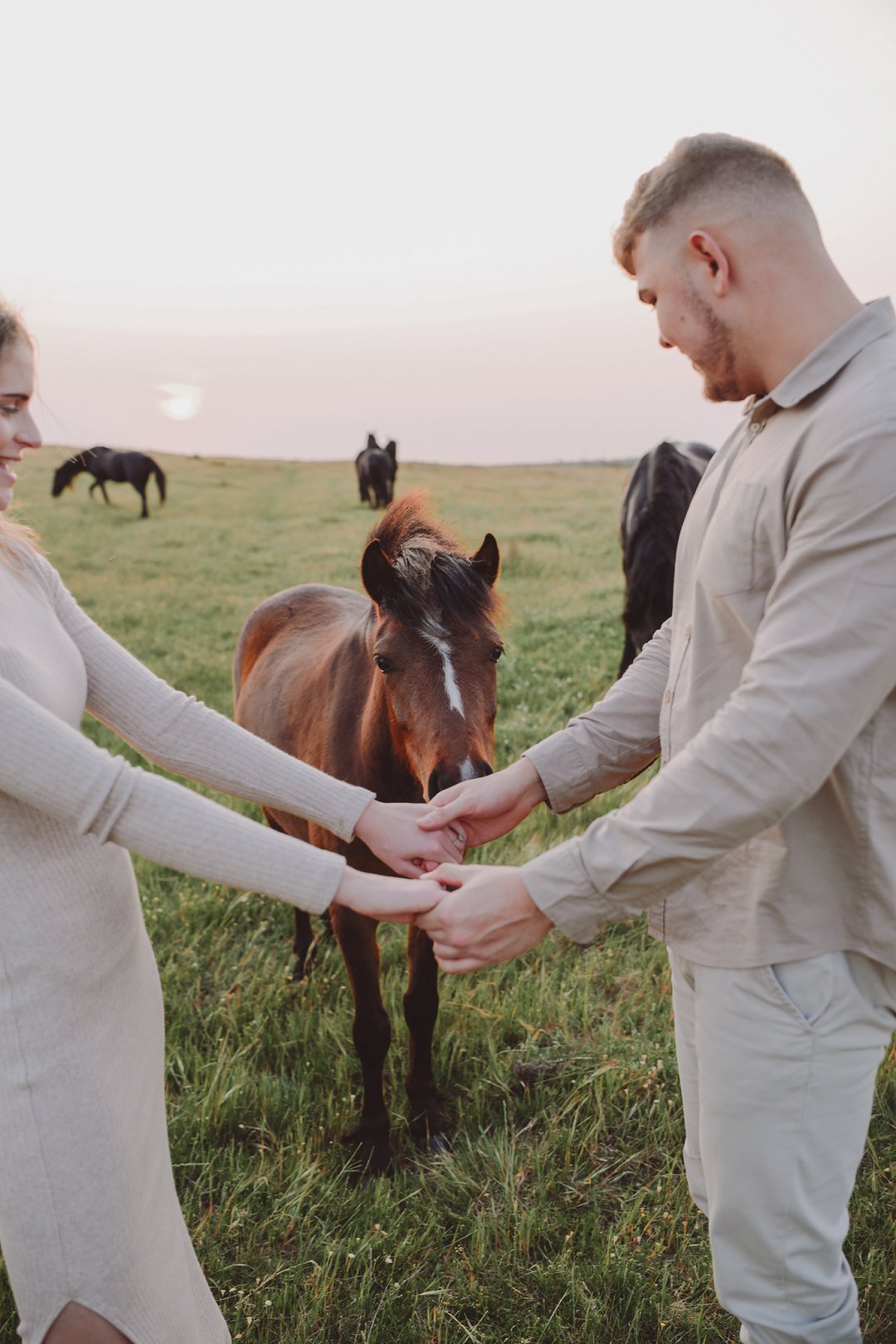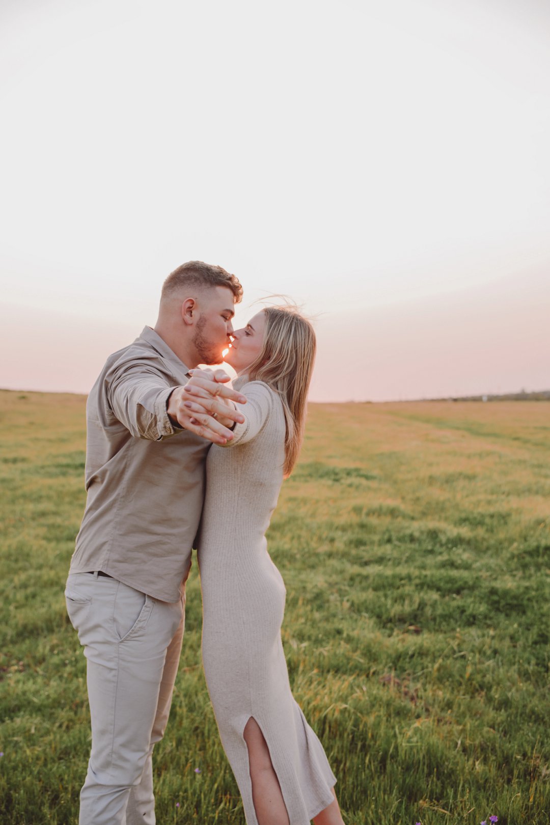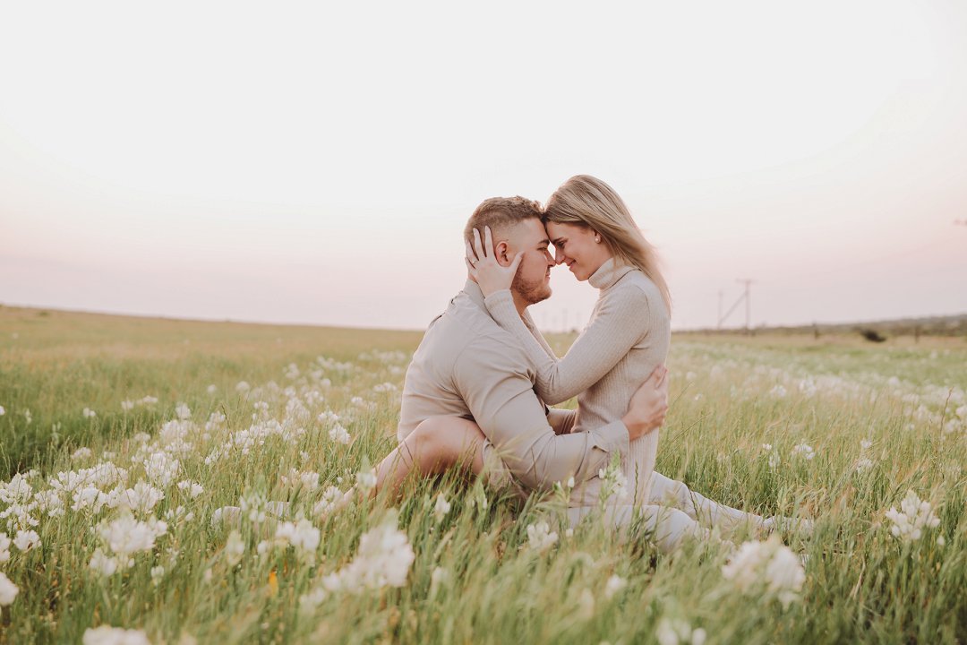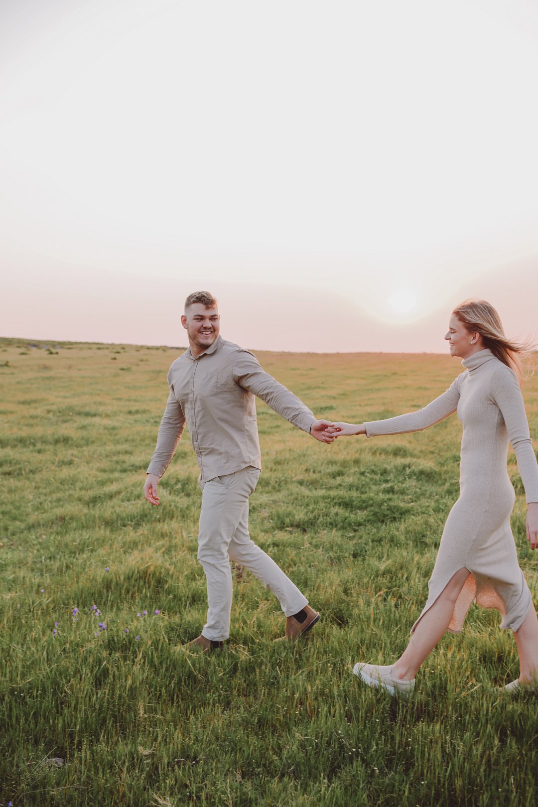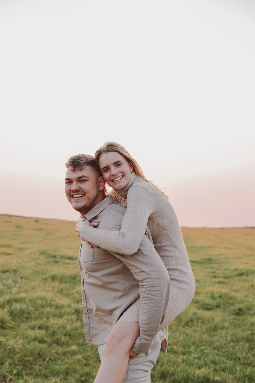Daar is verskeie elemente wat bydra tot die sukses van ’n verlowing fotosessie. Die eerste is beslis die ligging en Gielie en Gabi se keuse van ’n oop veld vol perde was werklik asemrowend. Die tweede is hul kleredrag. Ons is absoluut mal oor hul styl van lig, neutraal en perfek in lyn met die natuurlike agtergrond. Neutrale, aardse kleure werk altyd uitstekend vir foto’s en bring ’n tydlose gevoel na vore.