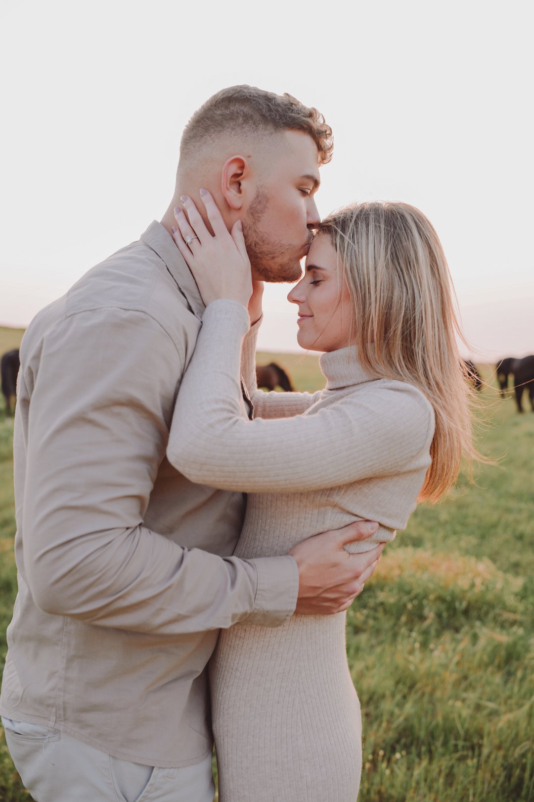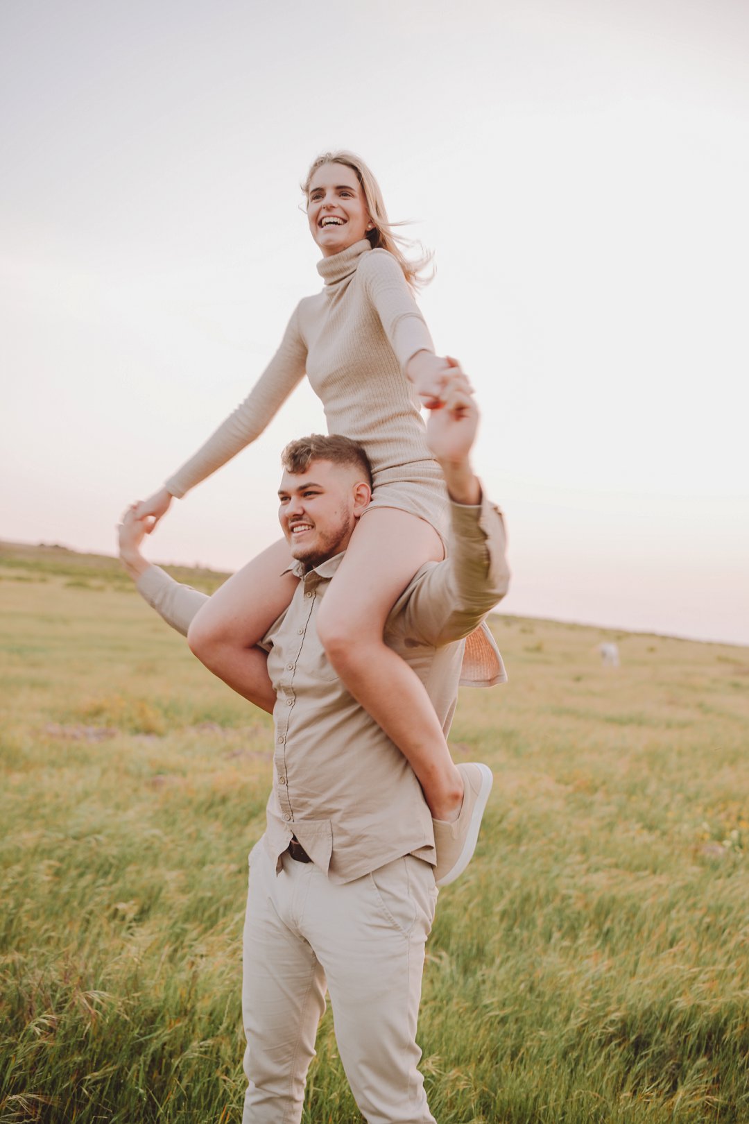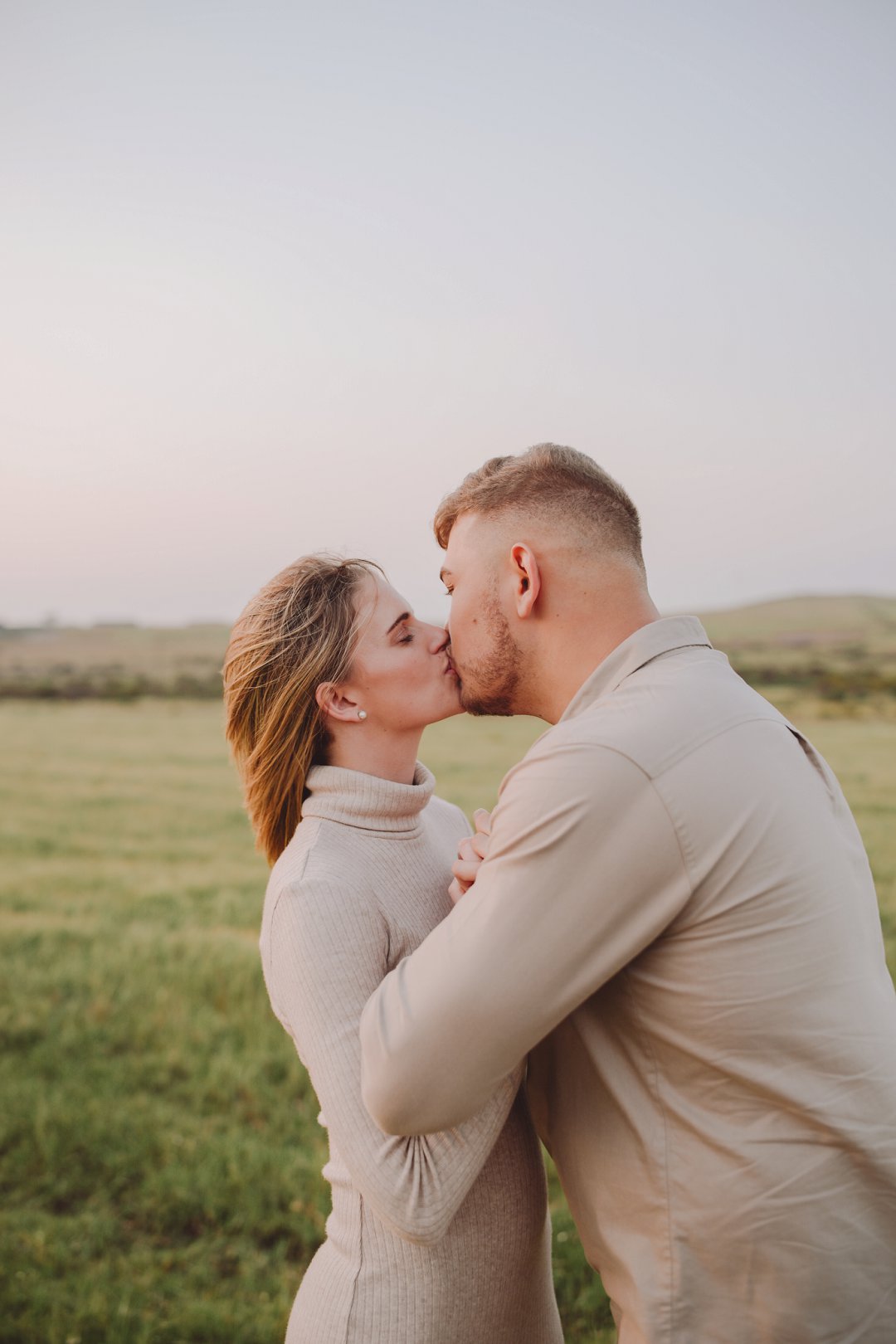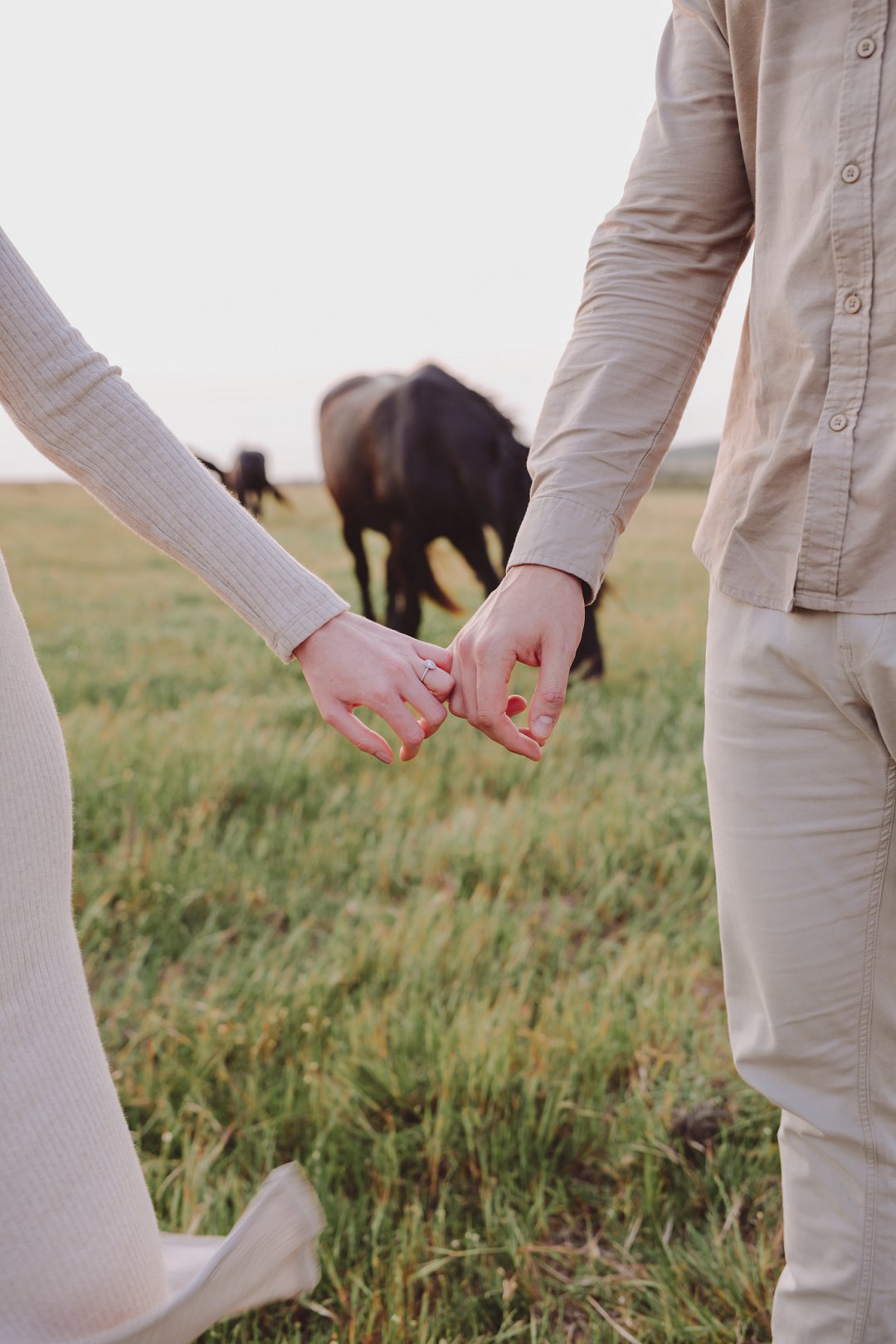 Daar is verskeie elemente wat bydra tot die sukses van ’n verlowing fotosessie. Die eerste is beslis die ligging en Gielie en Gabi se keuse van ’n oop veld vol perde was werklik asemrowend. Die tweede is hul kleredrag. Ons is absoluut mal oor hul styl van lig, neutraal en perfek in lyn met die natuurlike agtergrond. Neutrale, aardse kleure werk altyd uitstekend vir foto’s en bring ’n tydlose gevoel na vore.