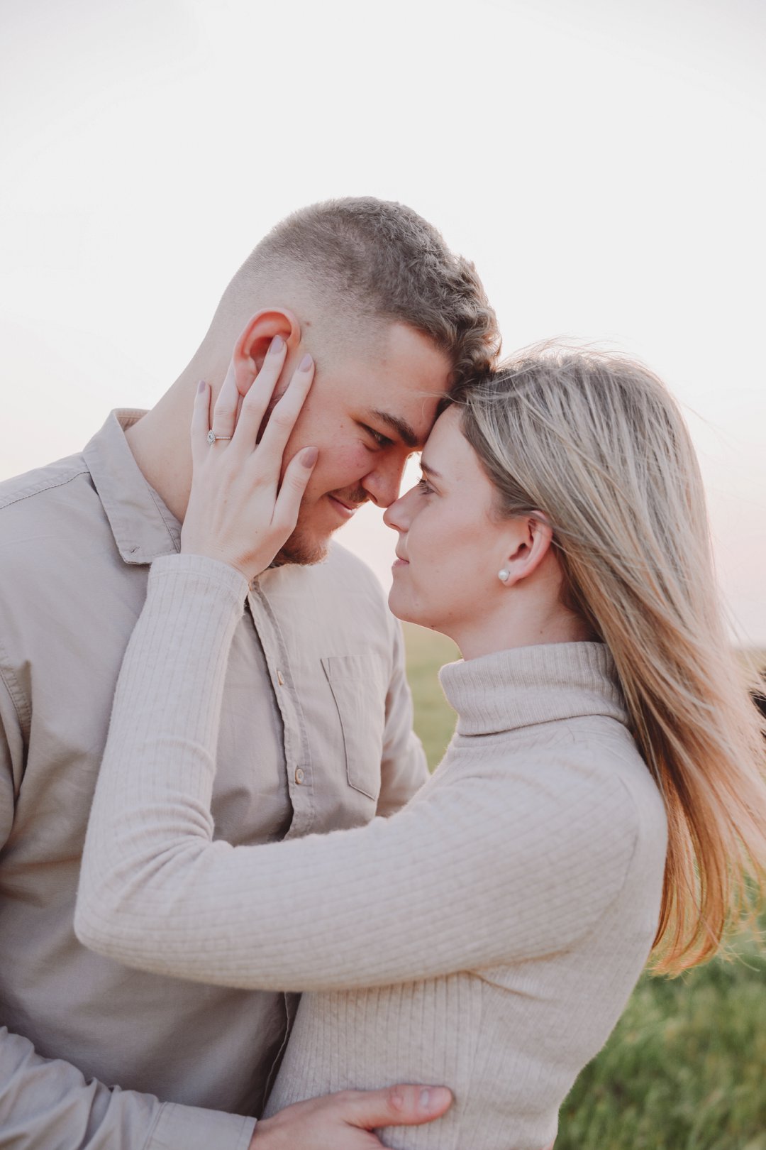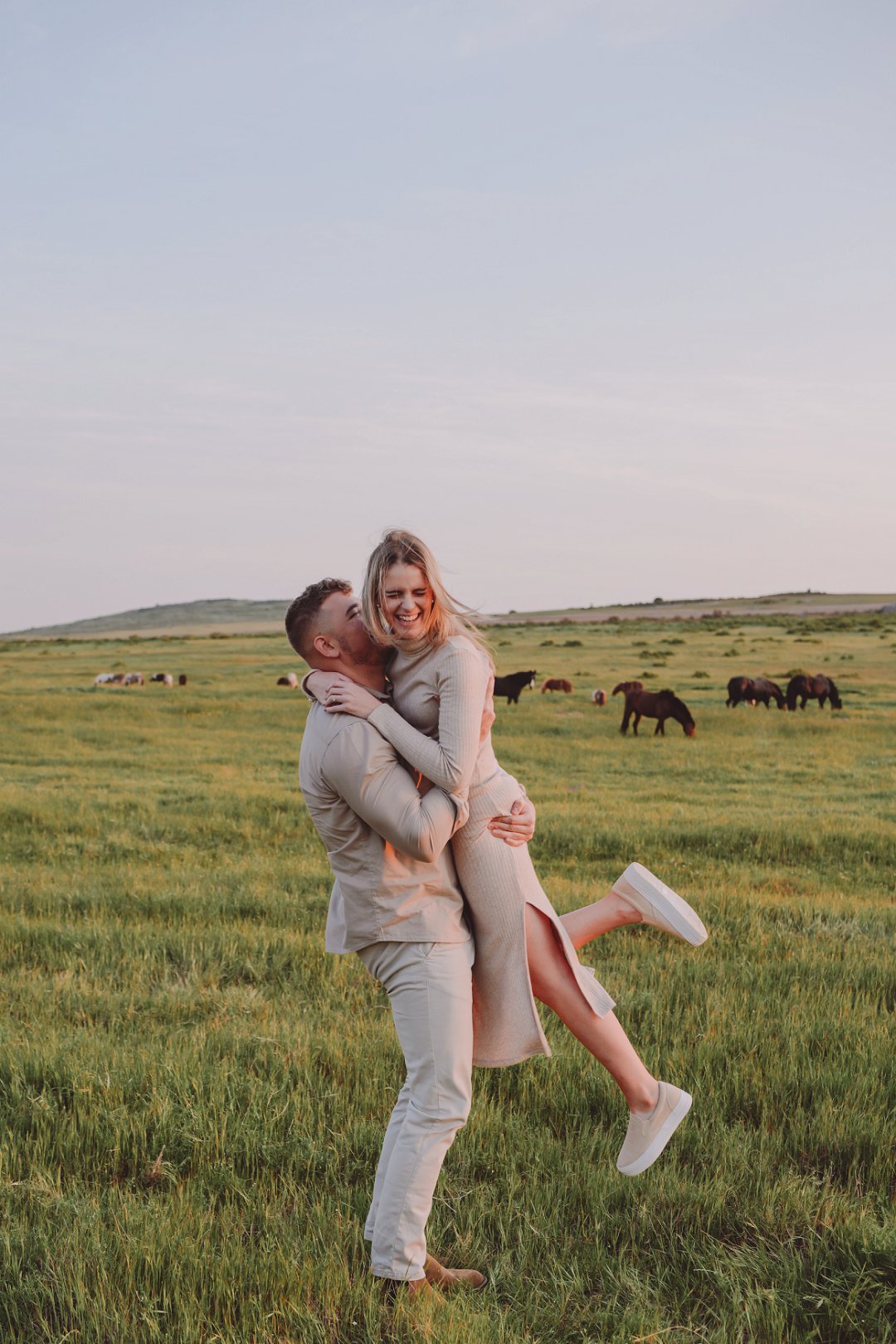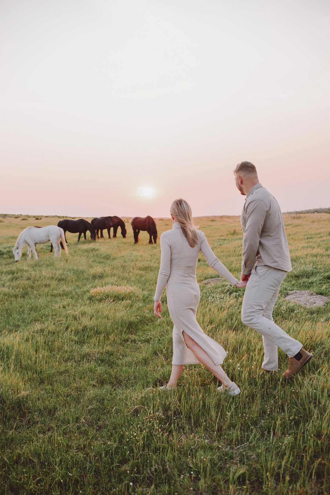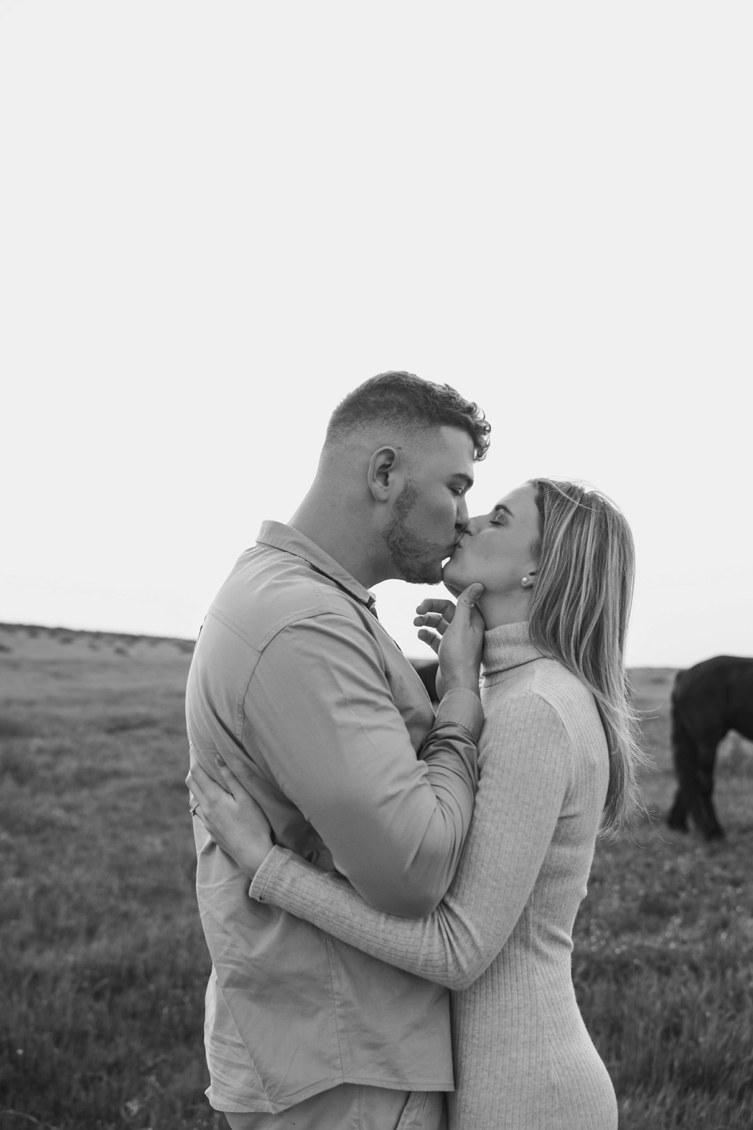 Daar is verskeie elemente wat bydra tot die sukses van ’n verlowing fotosessie. Die eerste is beslis die ligging en Gielie en Gabi se keuse van ’n oop veld vol perde was werklik asemrowend. Die tweede is hul kleredrag. Ons is absoluut mal oor hul styl van lig, neutraal en perfek in lyn met die natuurlike agtergrond. Neutrale, aardse kleure werk altyd uitstekend vir foto’s en bring ’n tydlose gevoel na vore.
